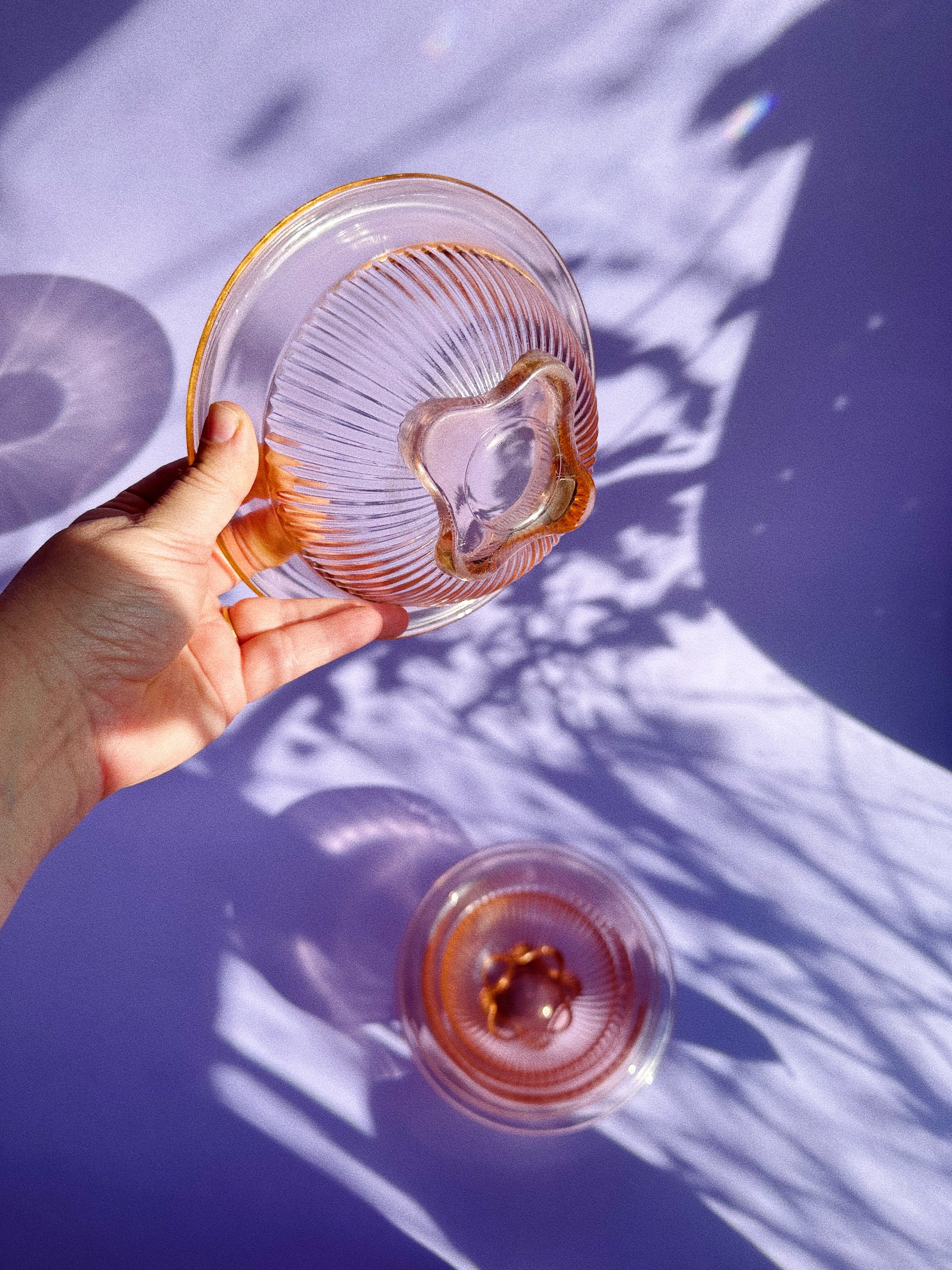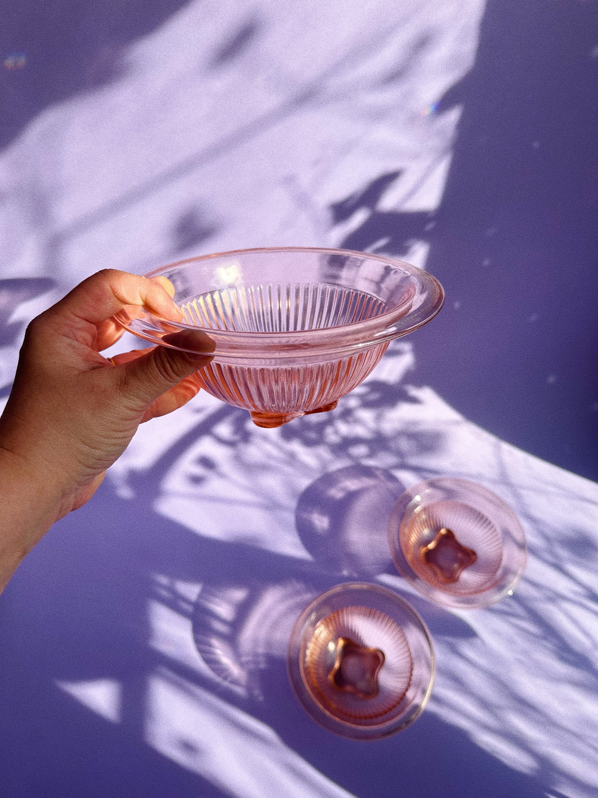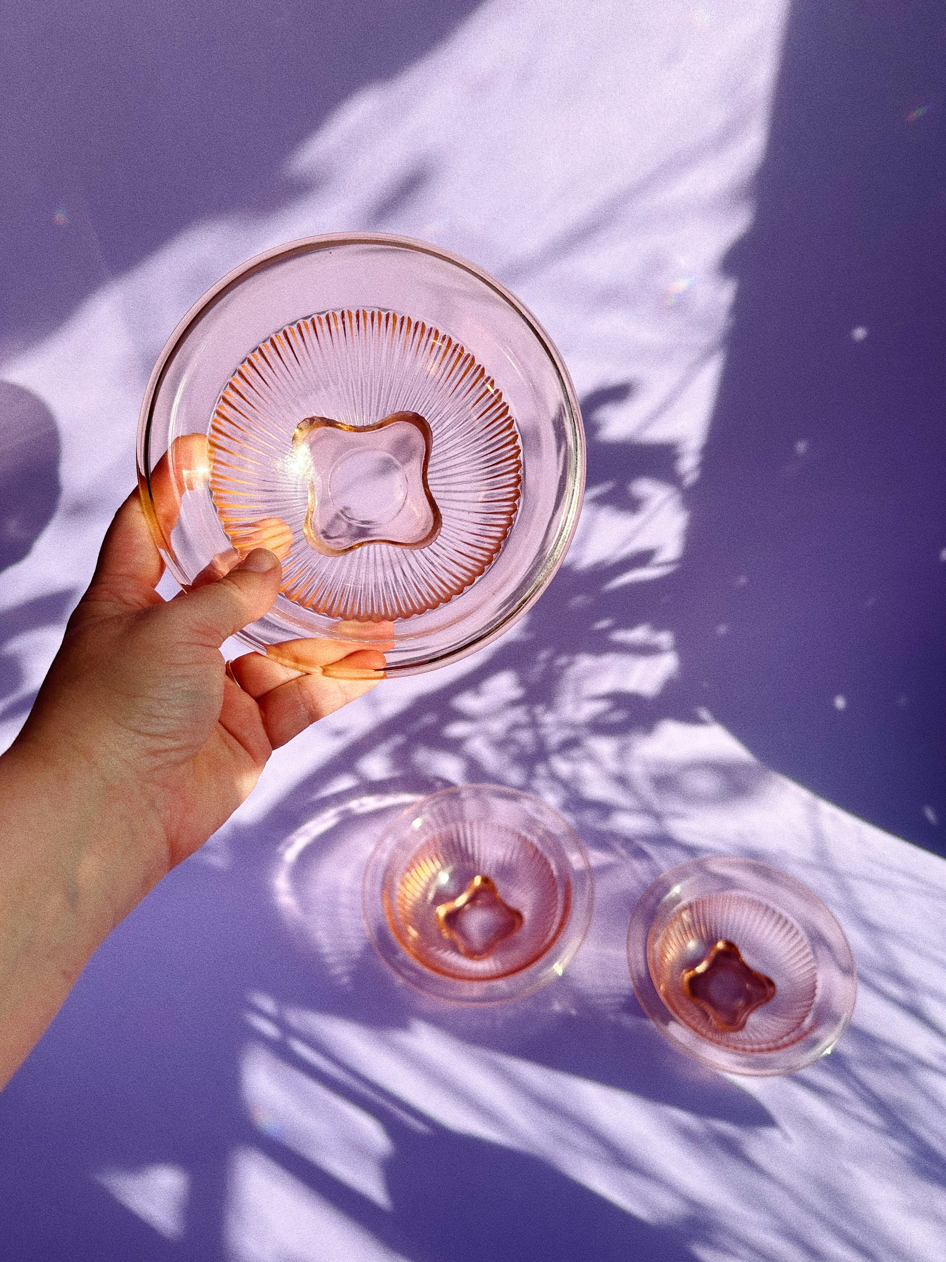 Pink footed depression glass mixing bowl at 7.75”W, 3.25”H - $20