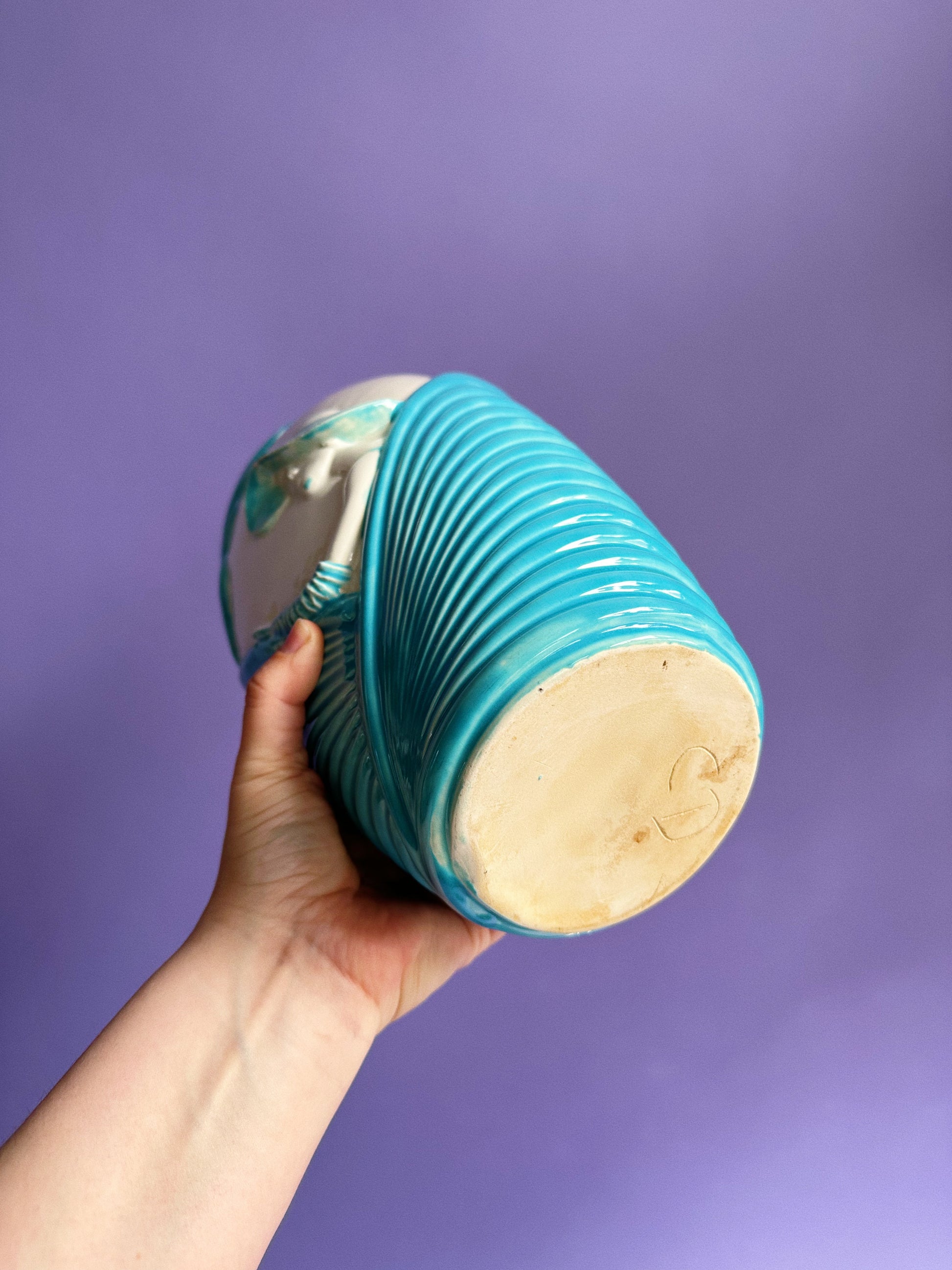 1980s Blue & White Art Deco Revival Ceramic Floral Vase
