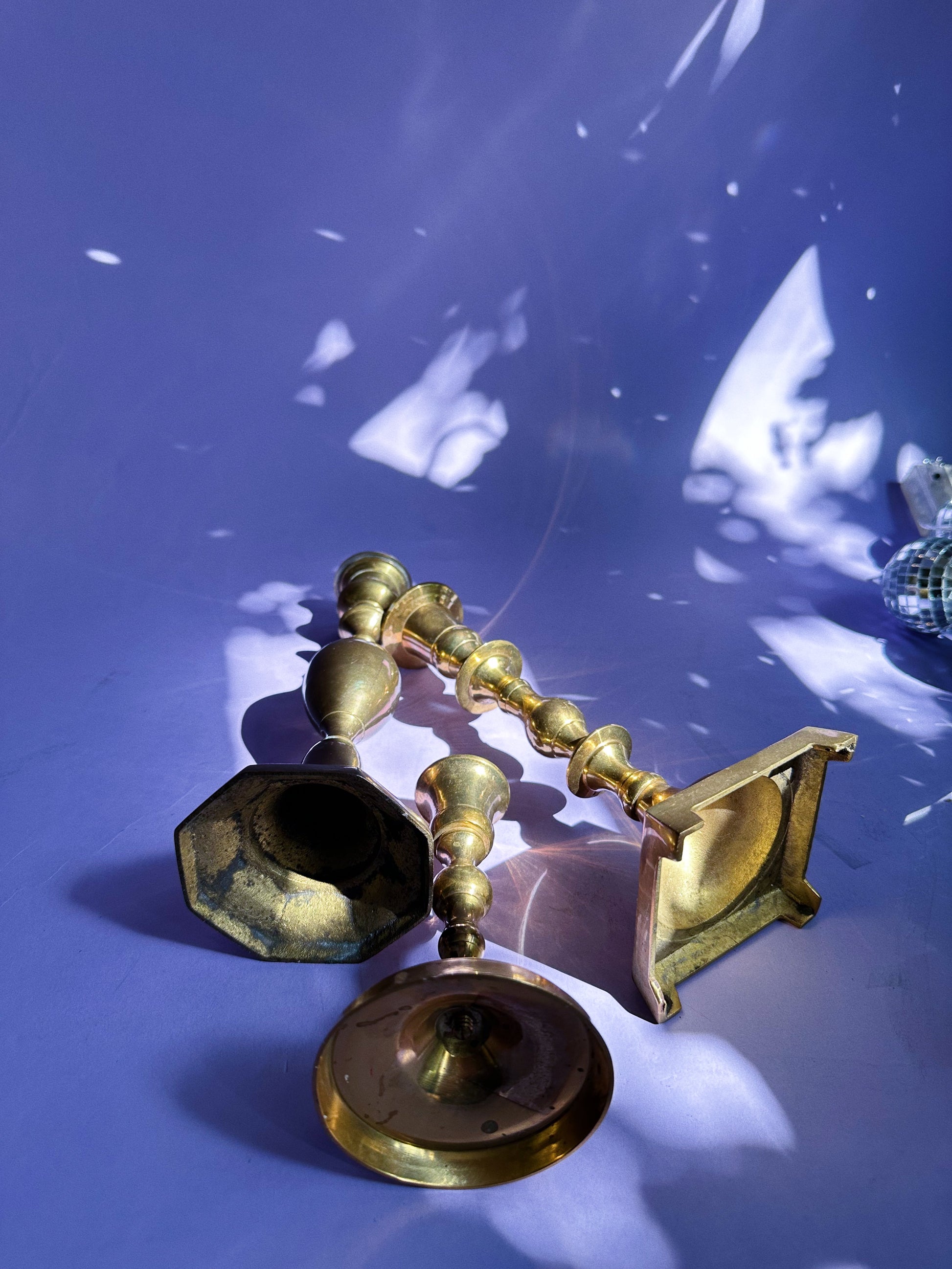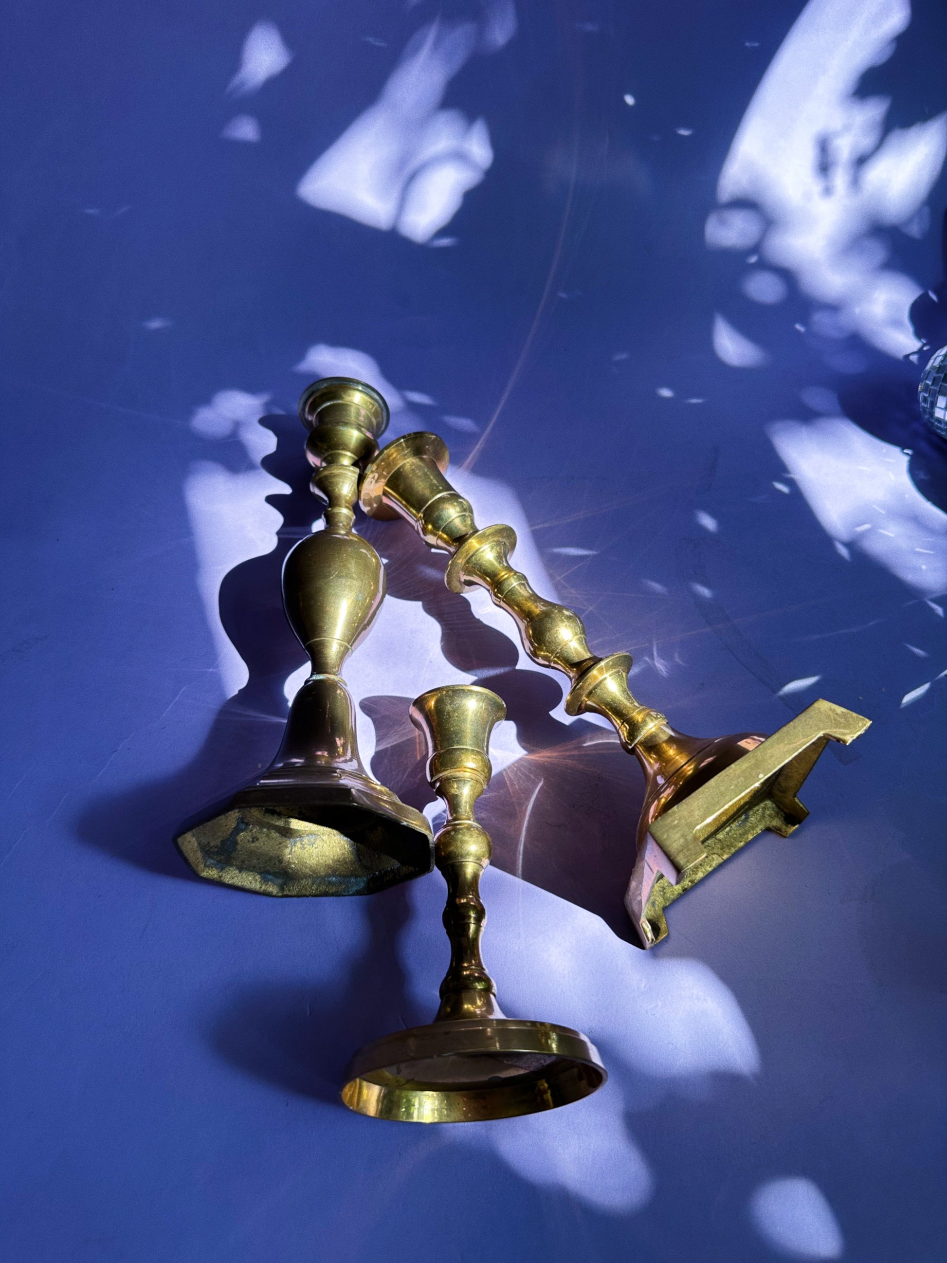 3 Vintage / Antique Mismatched Brass Candlesticks