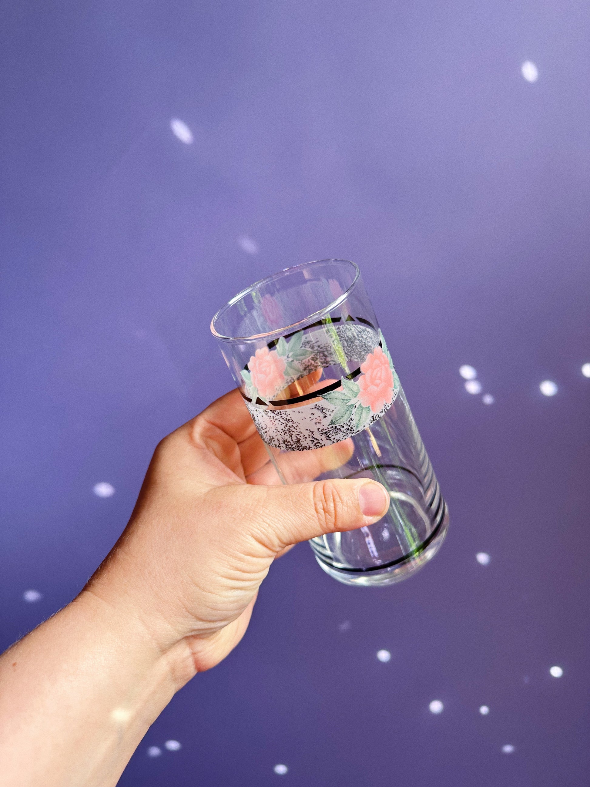 4 Vintage 80s Floral Post Modern Tall Drinking Glasses