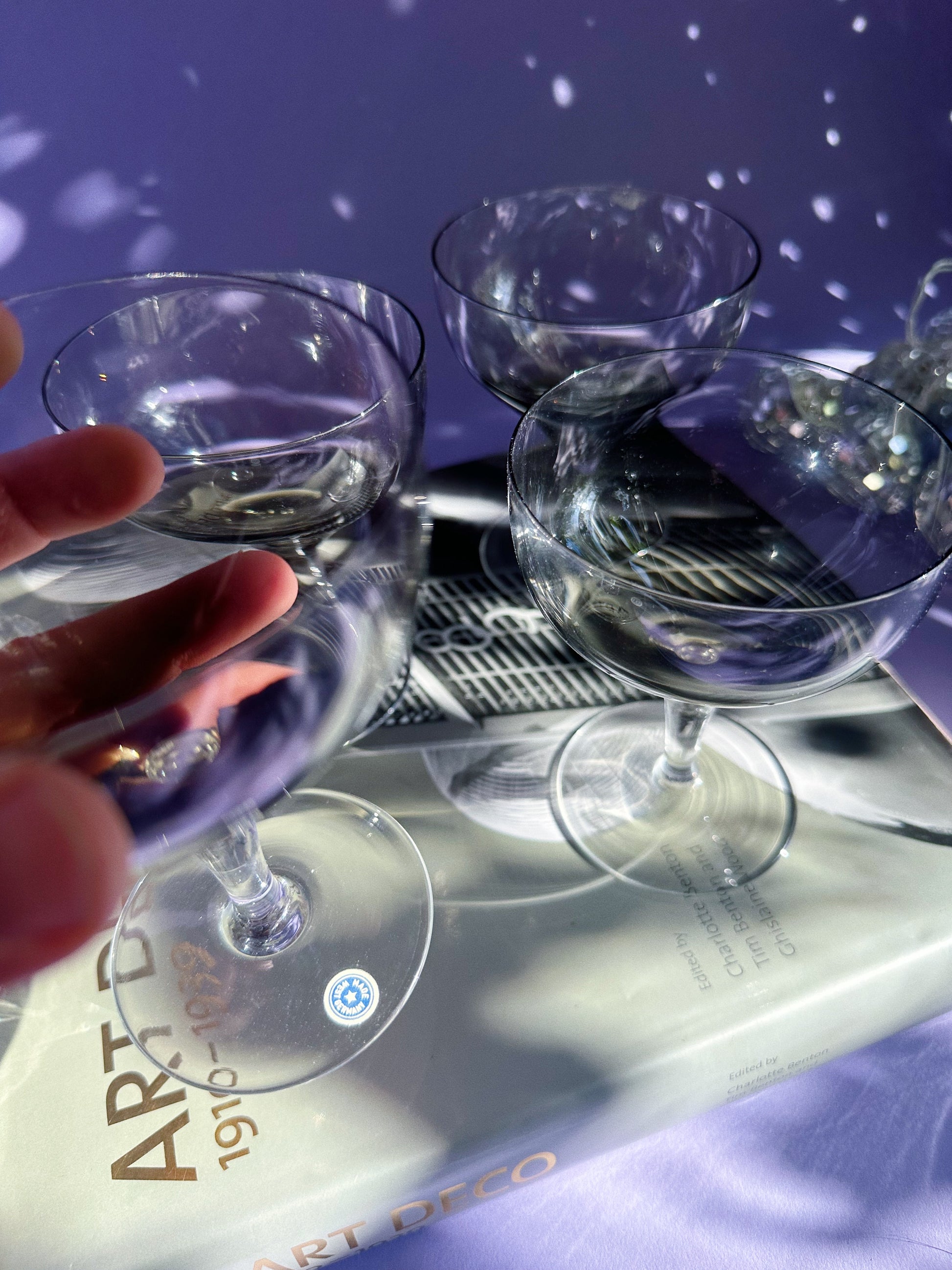 Smoky black / grey champagne coupes.