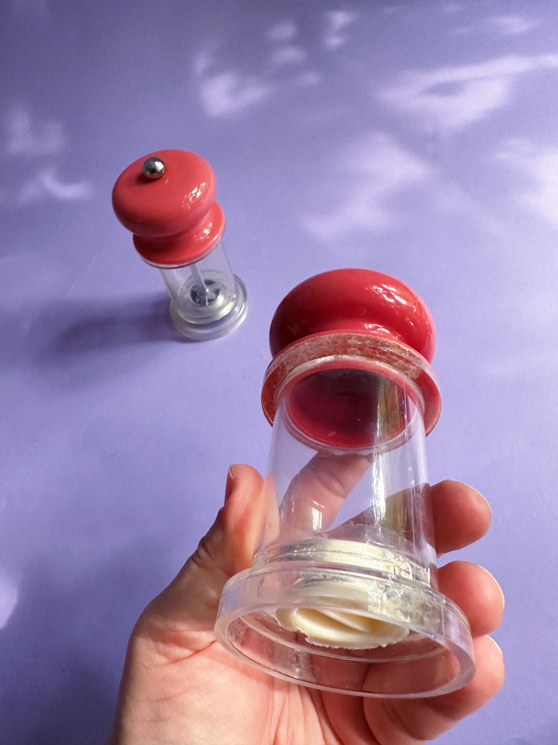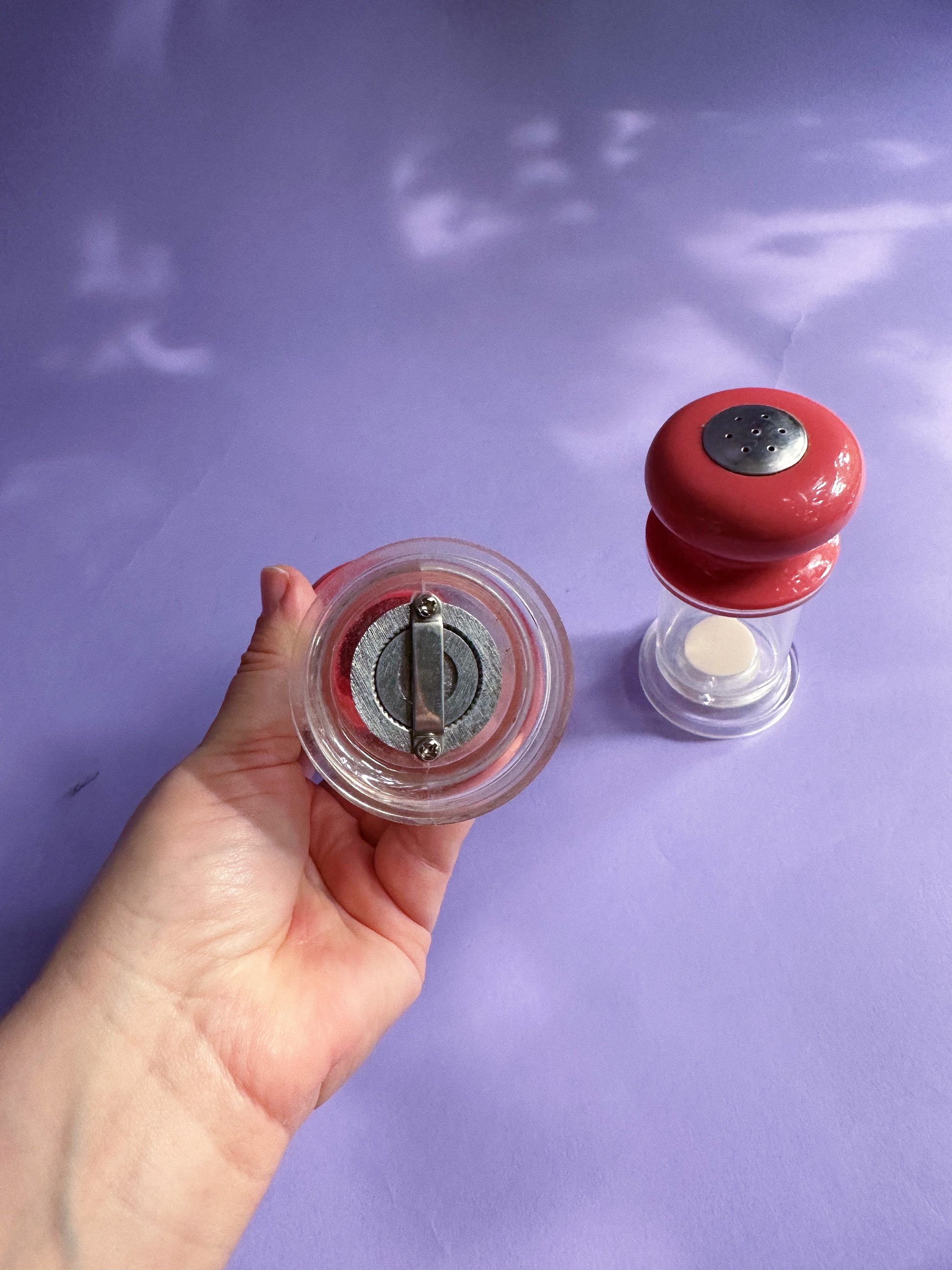 80s Vintage Lucite Dusty Rose Salt Shaker and Pepper Grinder