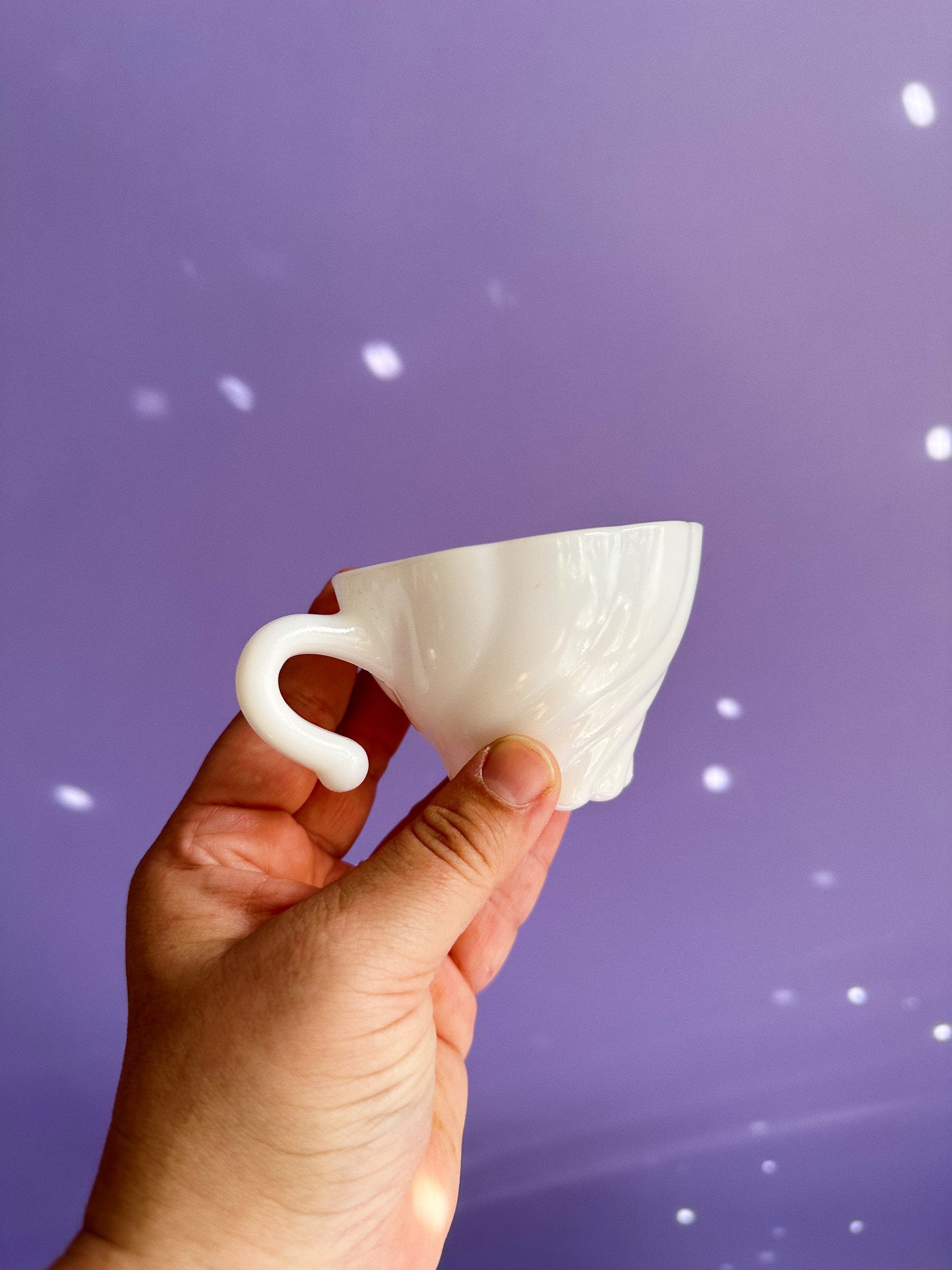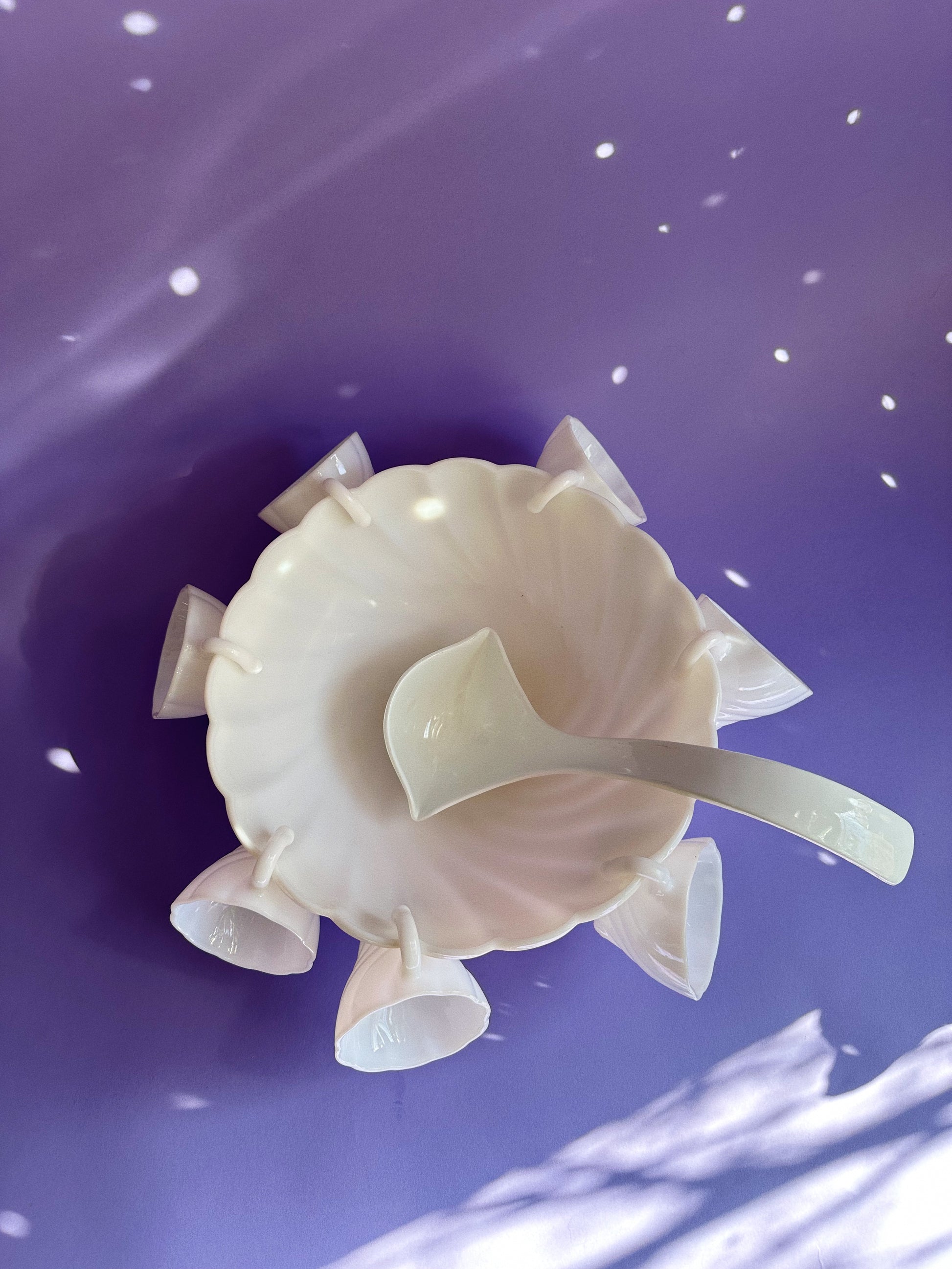 9 pc Vintage Hazel Atlas Milk Glass Alpine White Swirl Punch Bowl Set