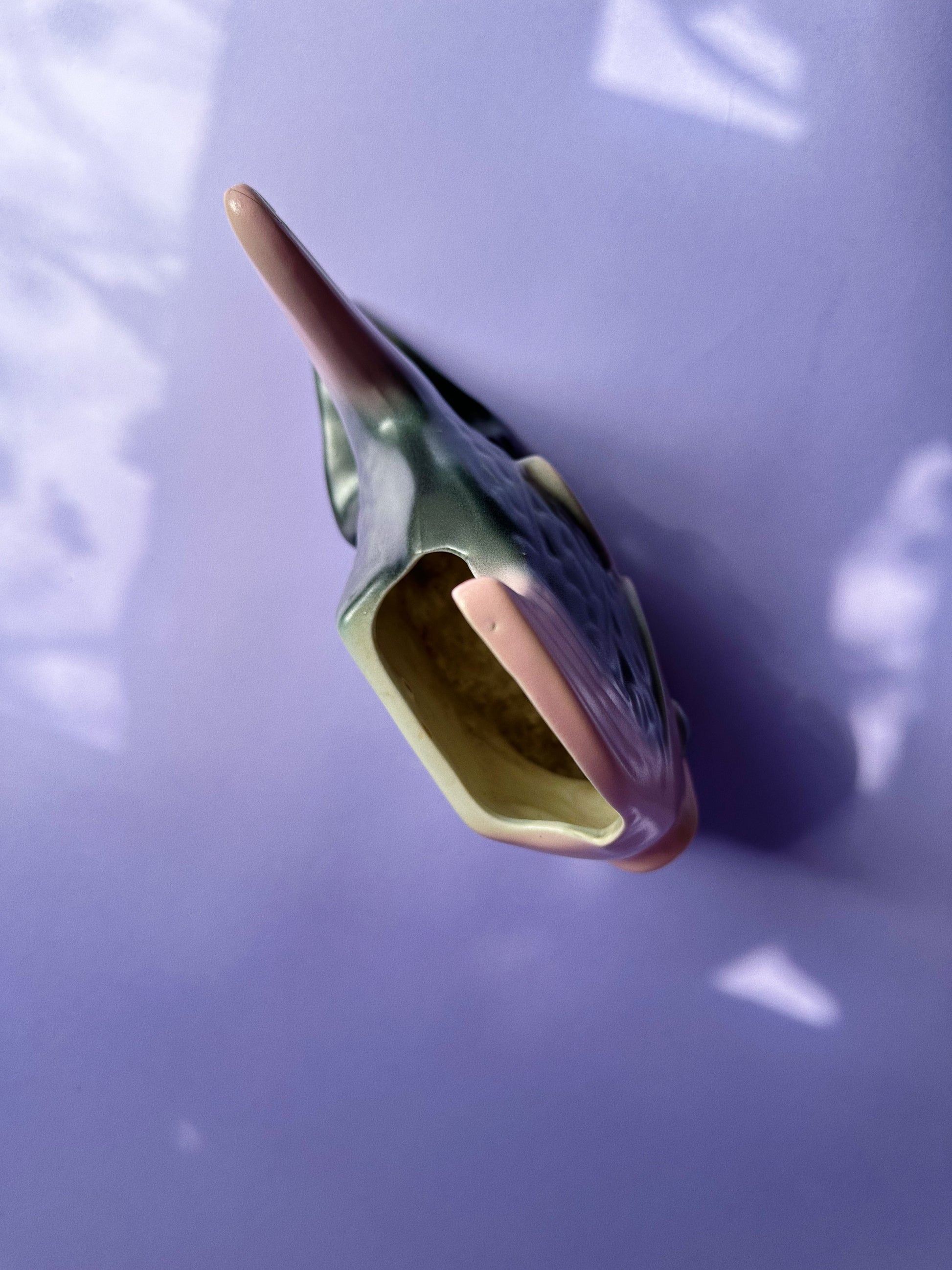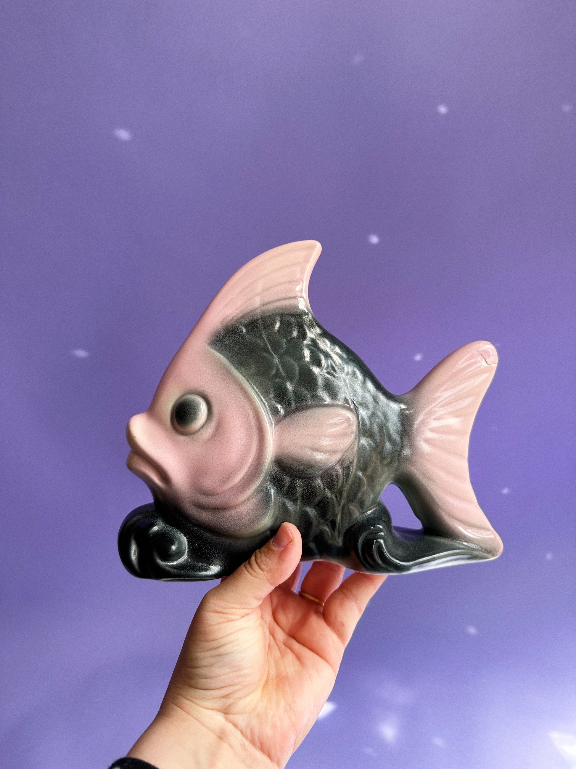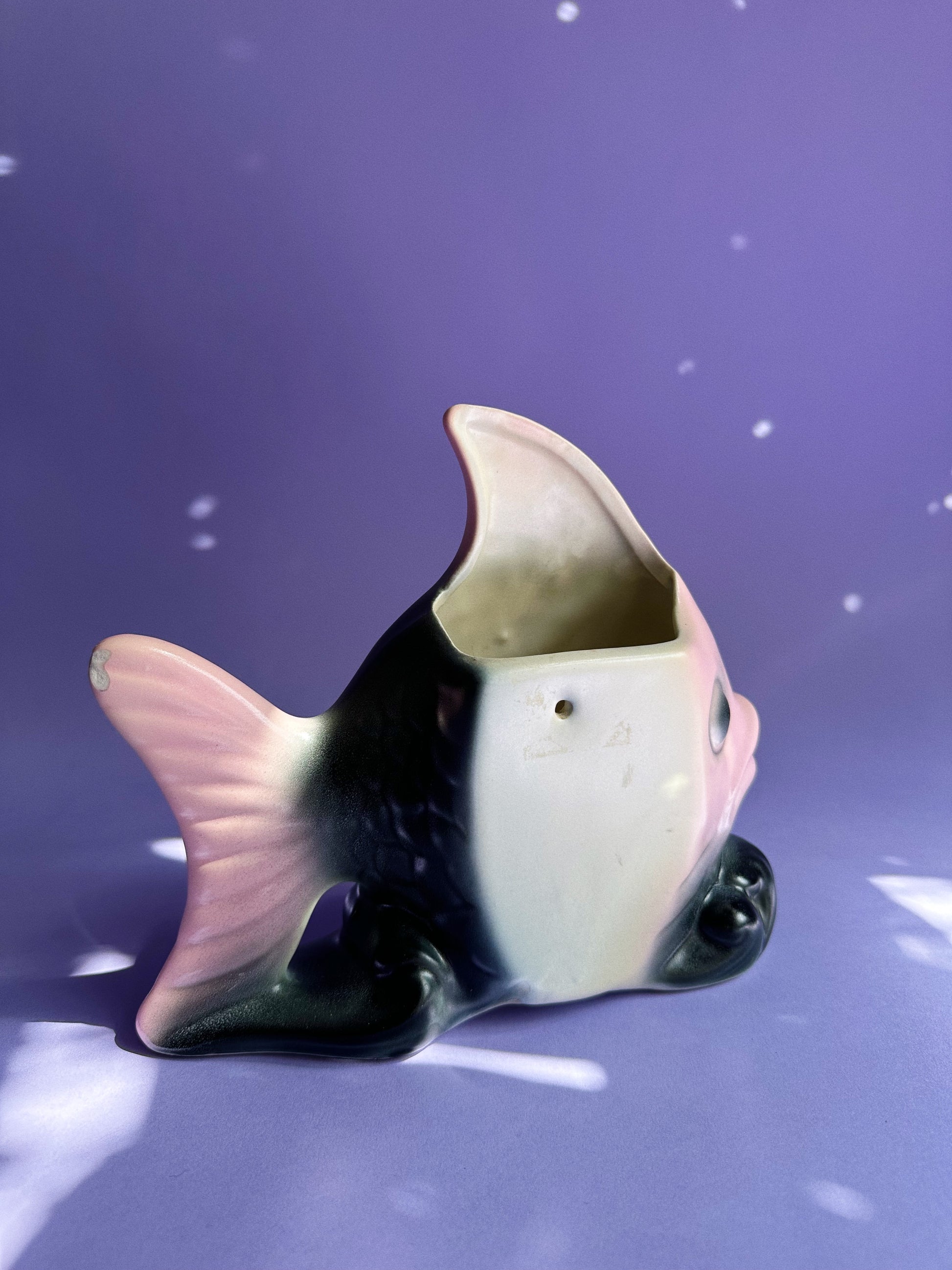Angel Fish Wall Pocket Planter Black & Pink Vintage MCM Ceramic Pottery