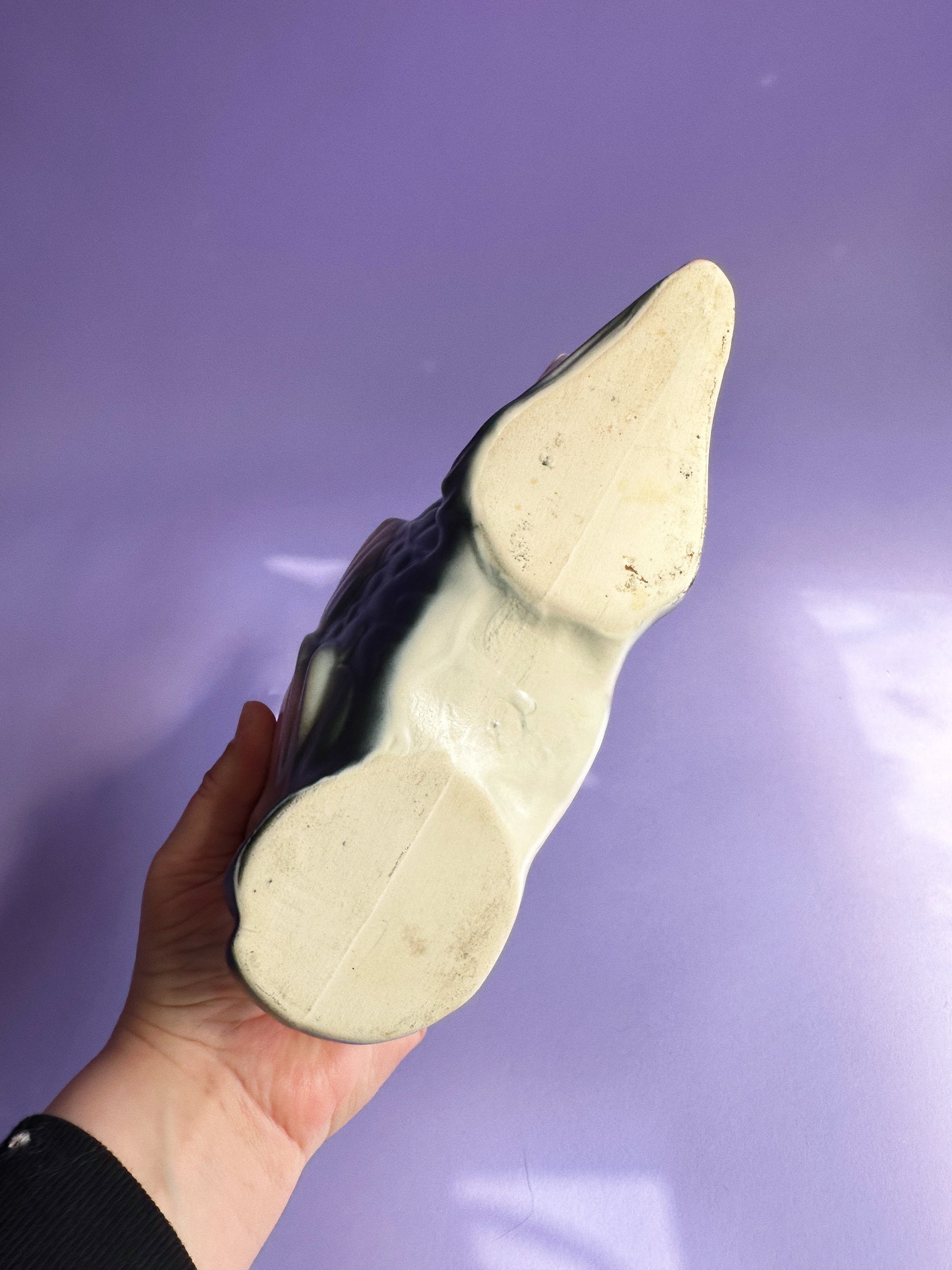 has a chip at the edge of the tail that’s been glued back, and also a little chip behind the other chip, as seen in photos.