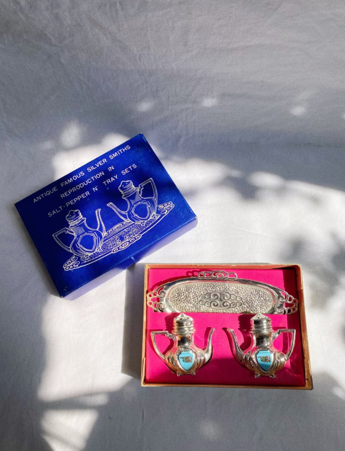 Antique Famous Silver Smiths Salt-Pepper Tray Set - 3 Piece Set