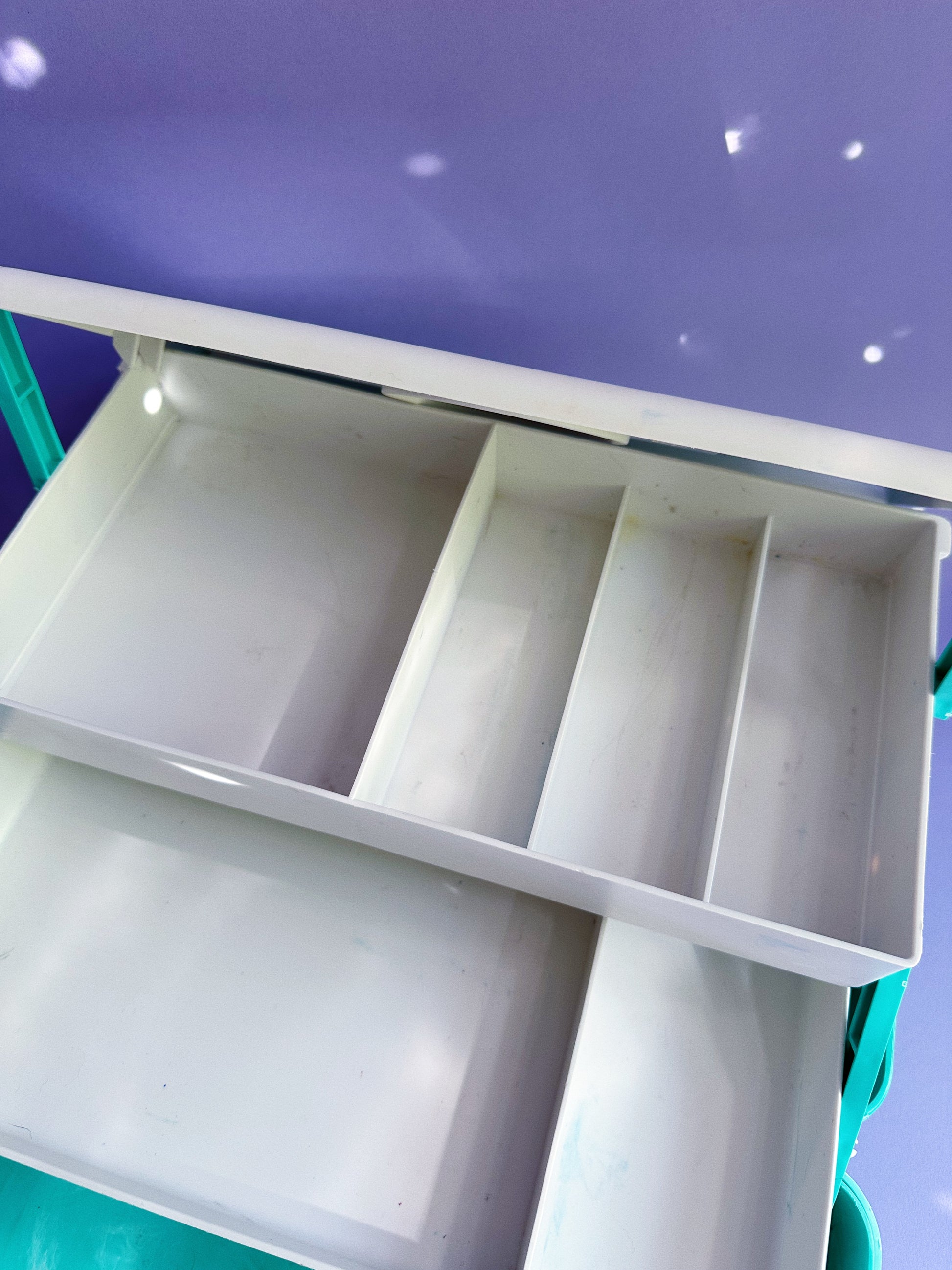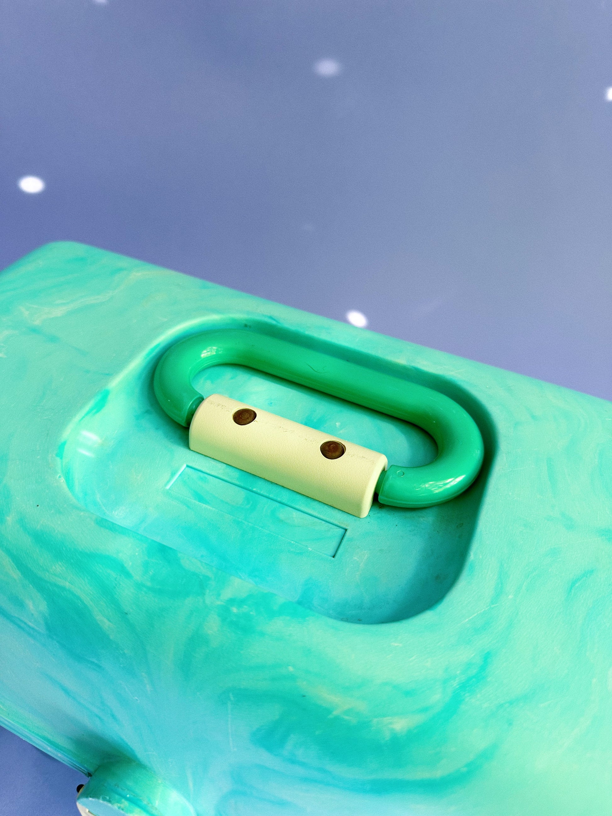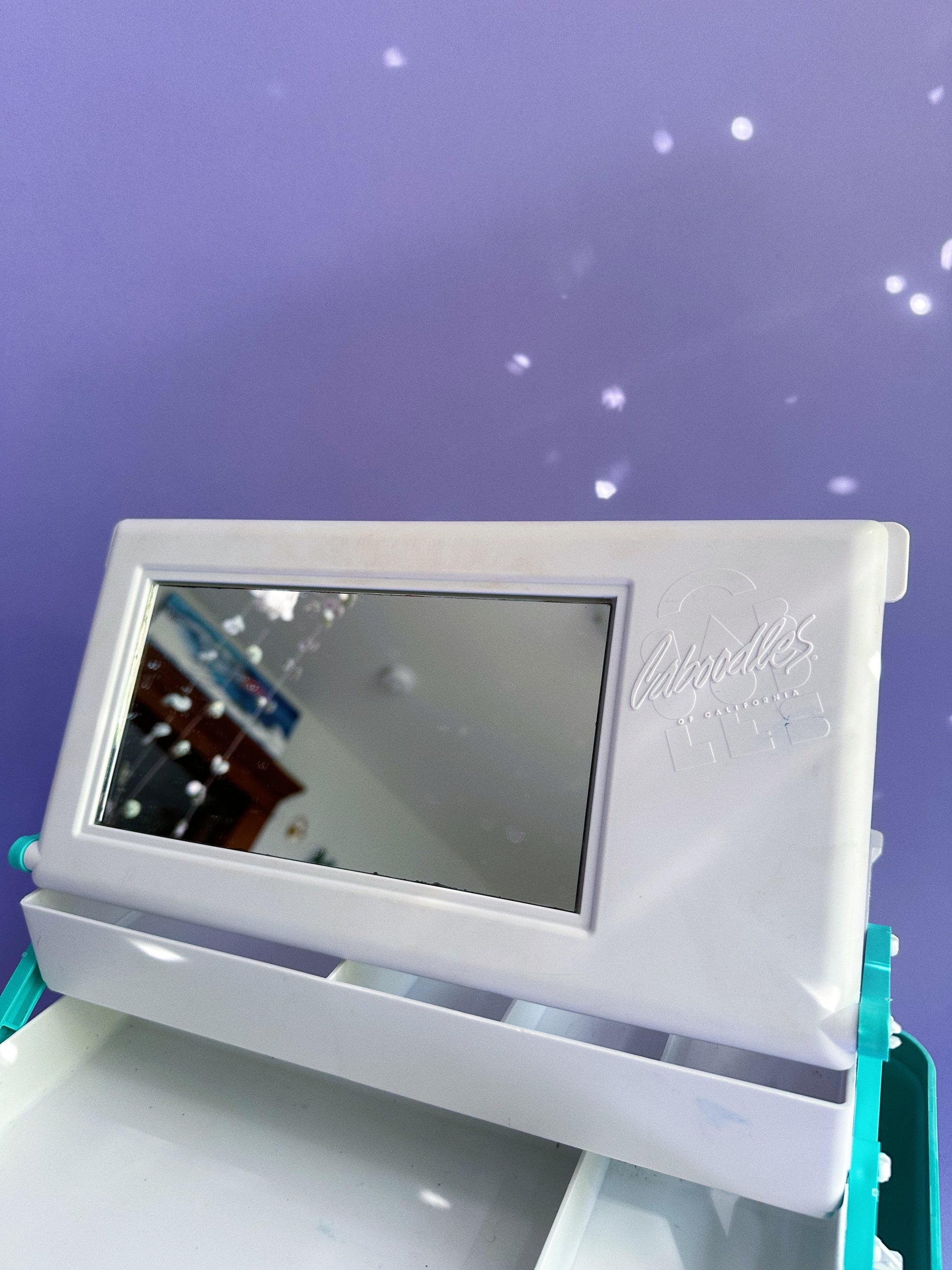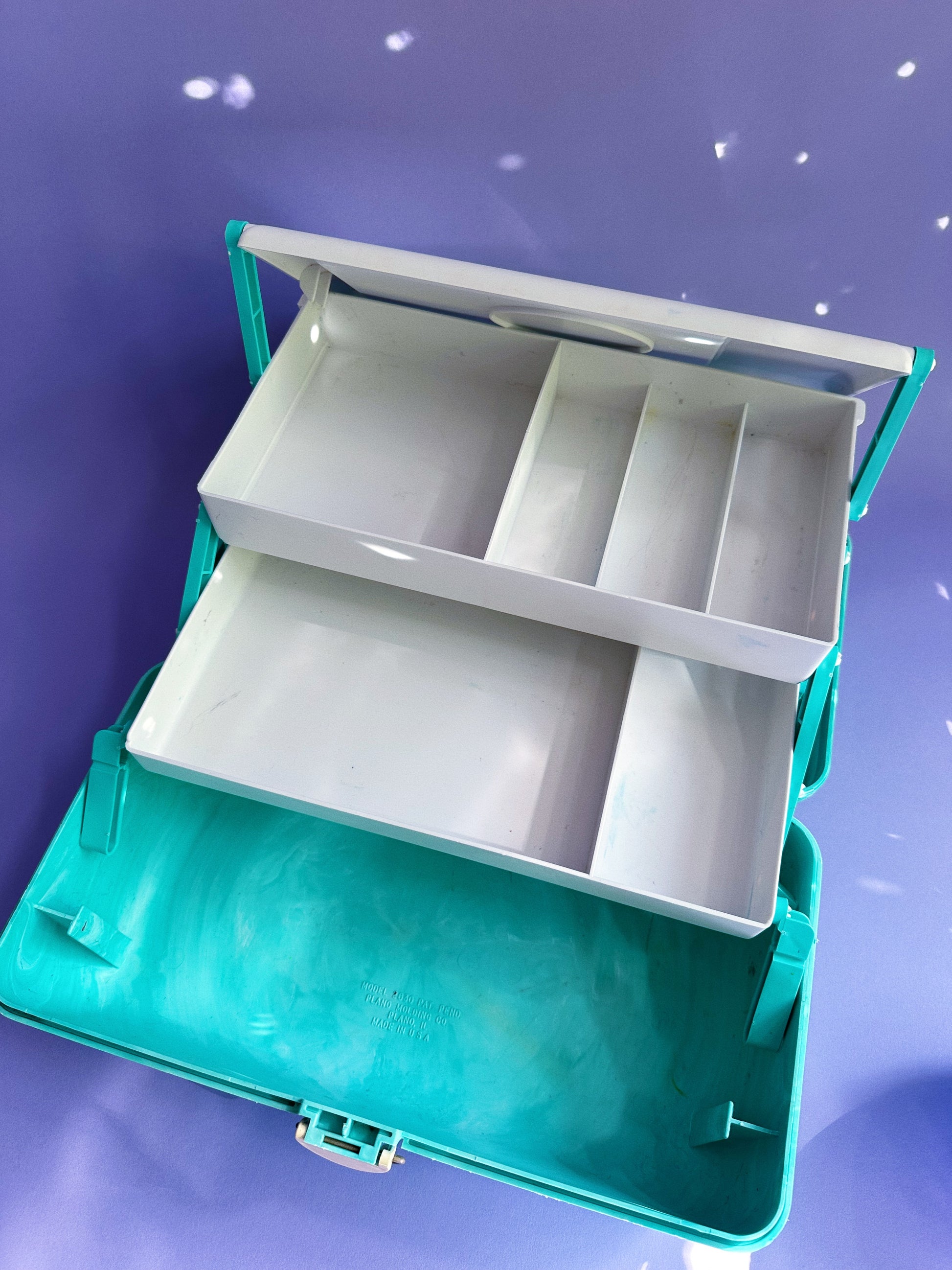 Caboodles of California Vintage 80s Teal Swirl Marble Large 15" 3 Tier Makeup Case with mirror.