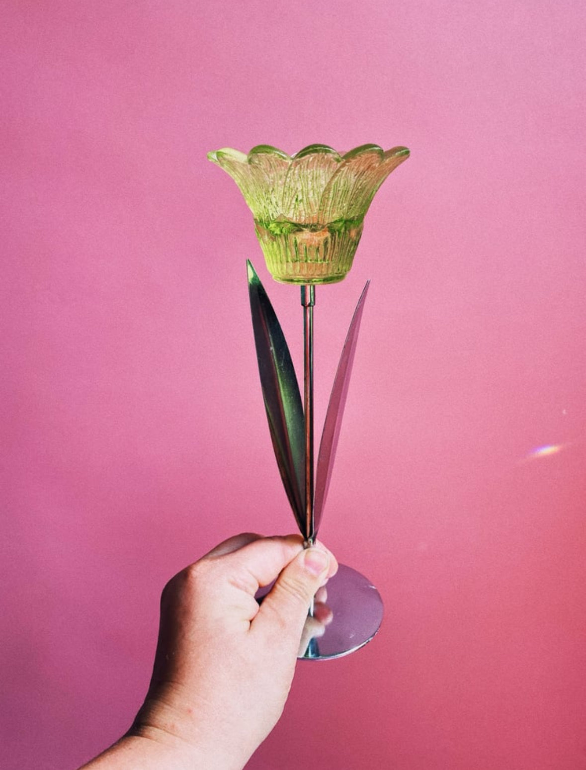 Fun Tulip Blue & Green Glass & Chrome Taper Candle Holders
