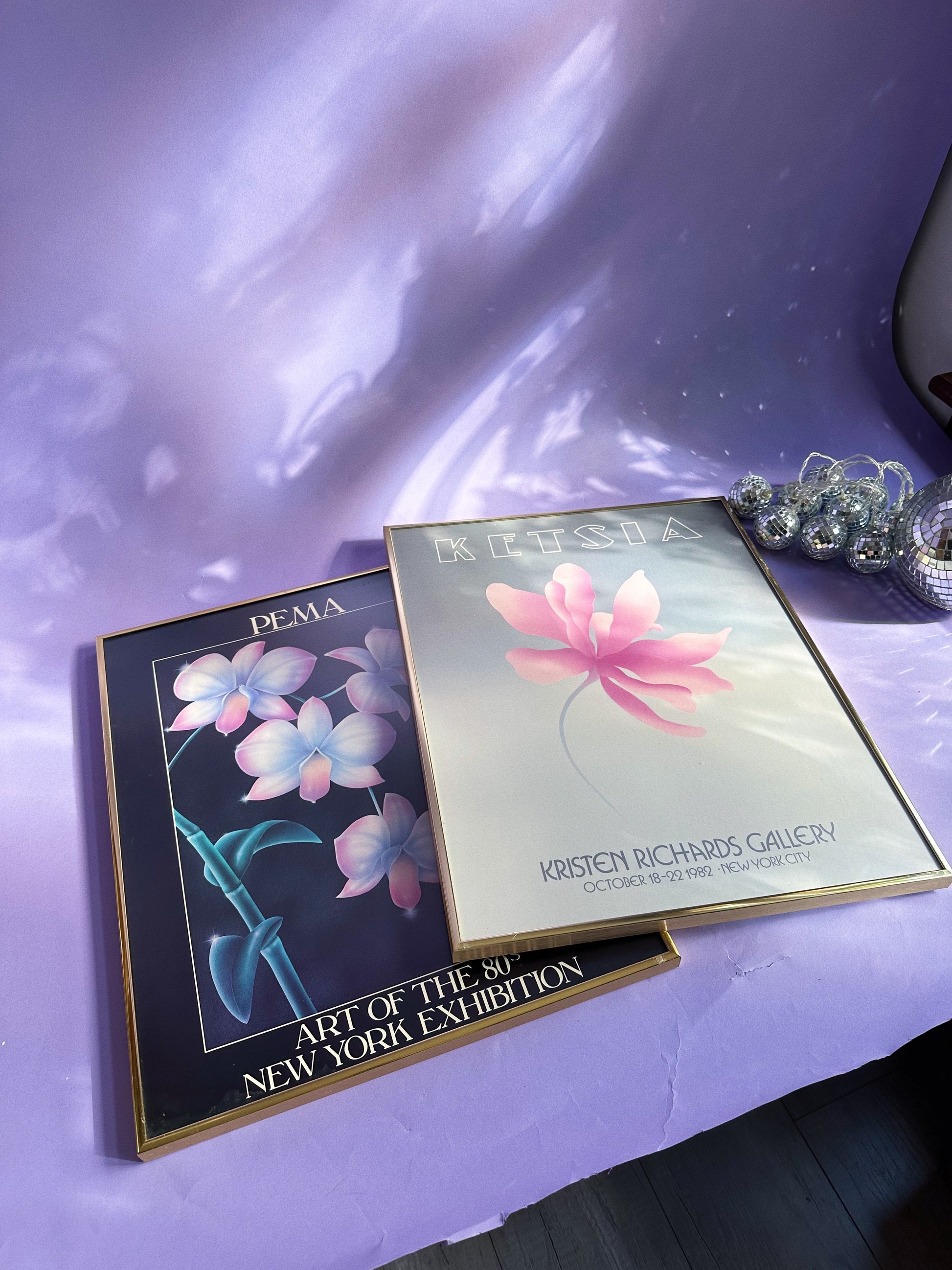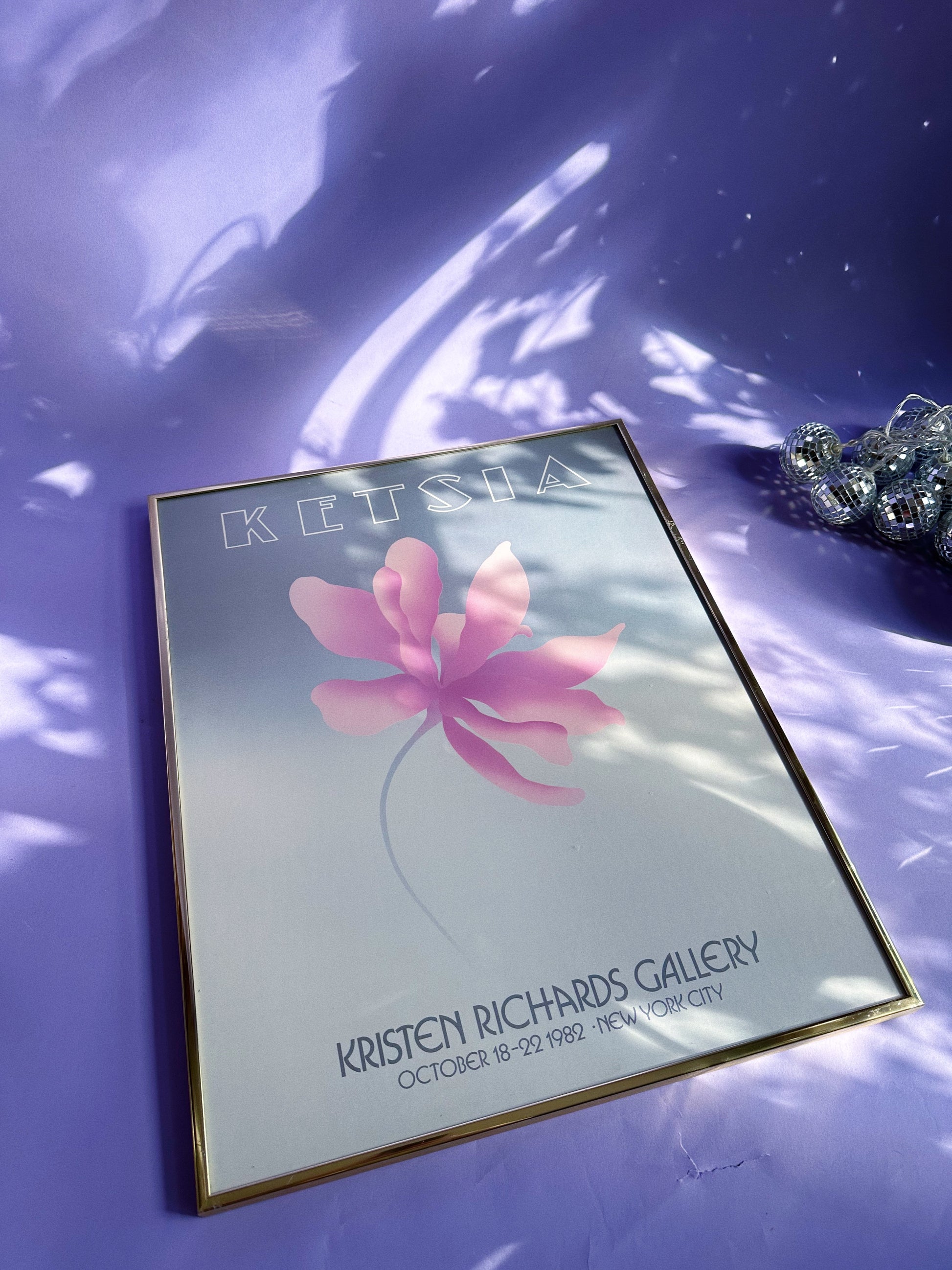 Gorgeous Vintage Brass Framed 80s Flower Print Ketsia