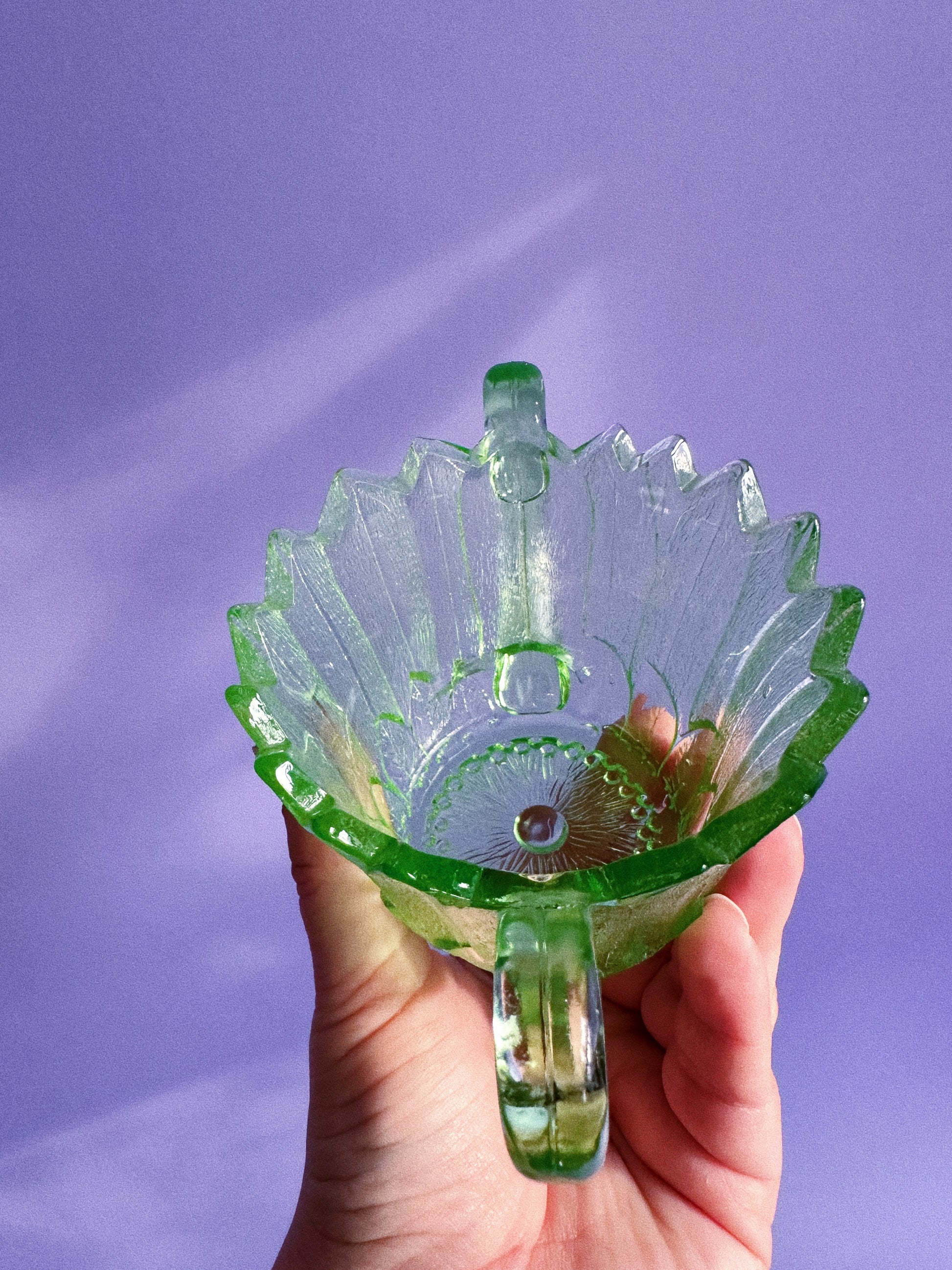 Indiana Glass Lily Pons Open Sugar Light Green Depression Uranium Glass