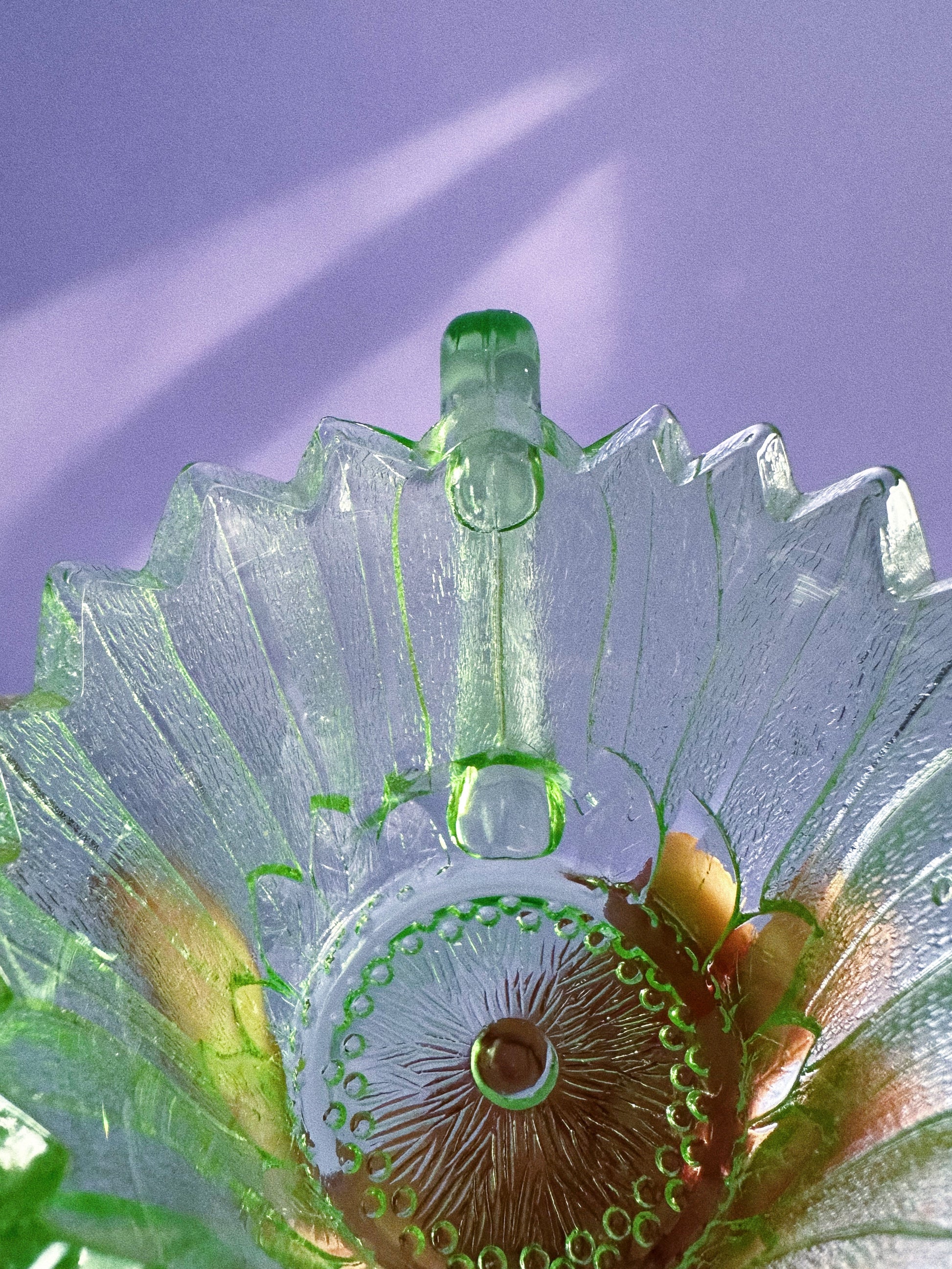 It is uranium glass and glows under a black light.