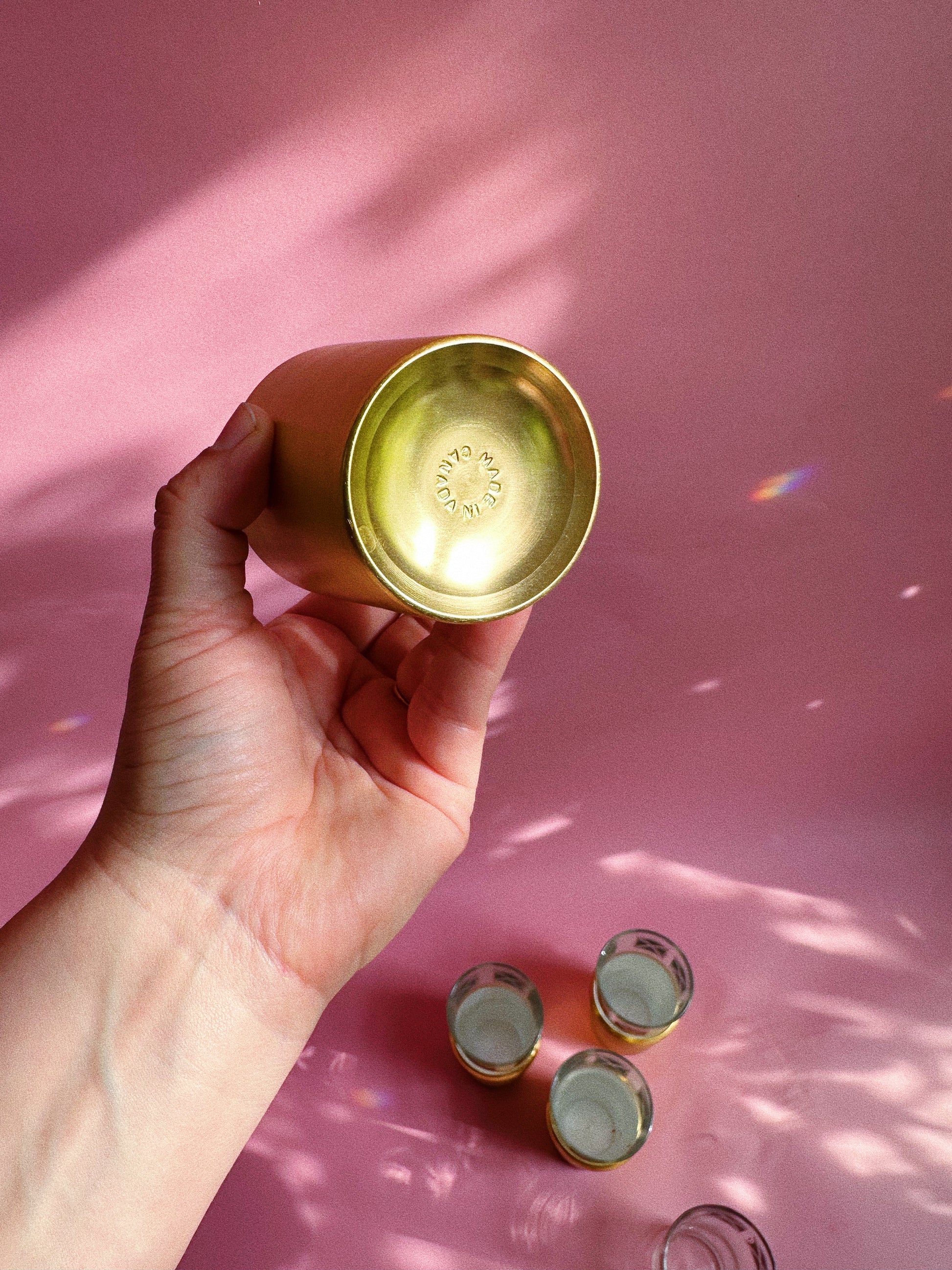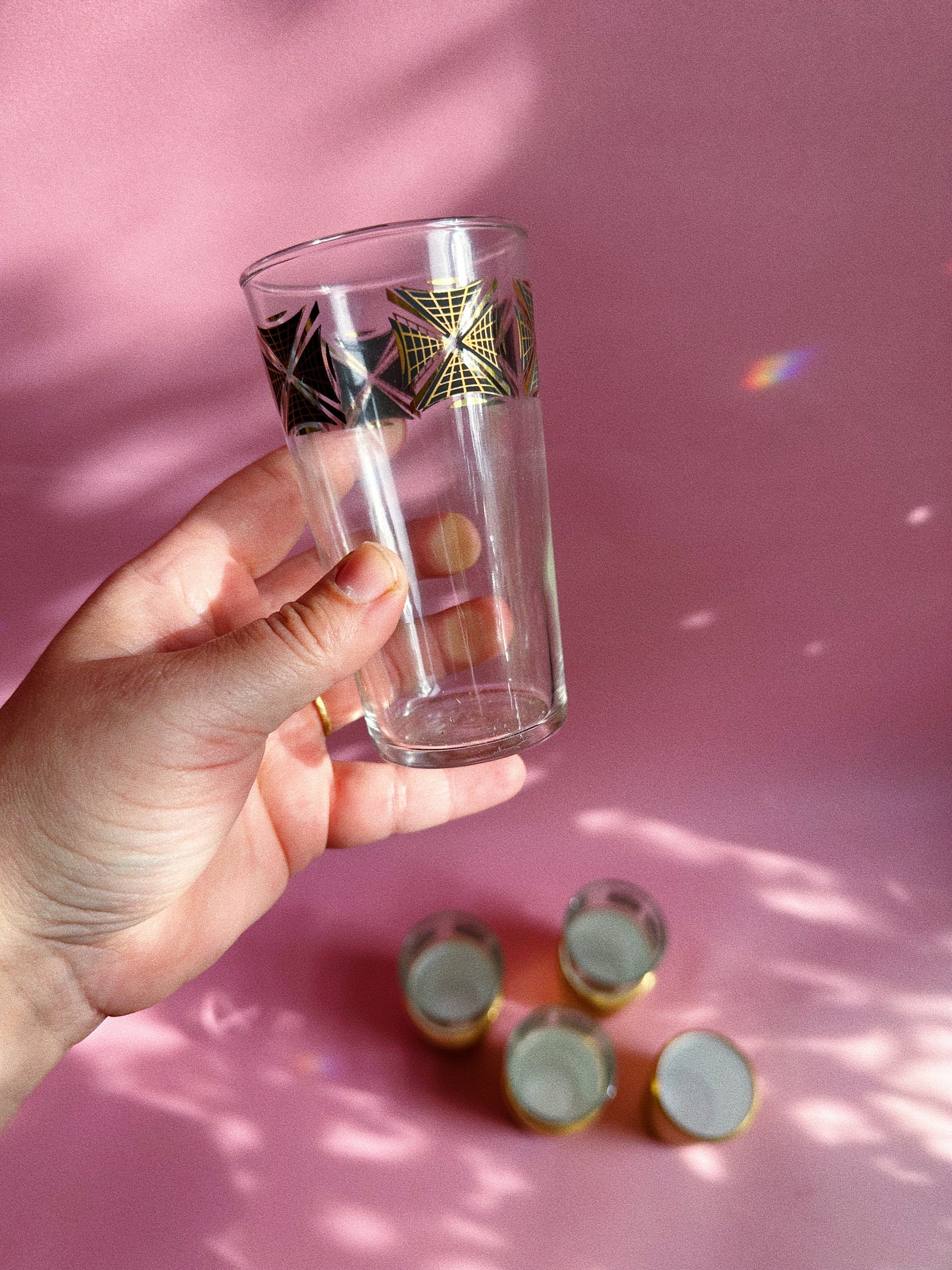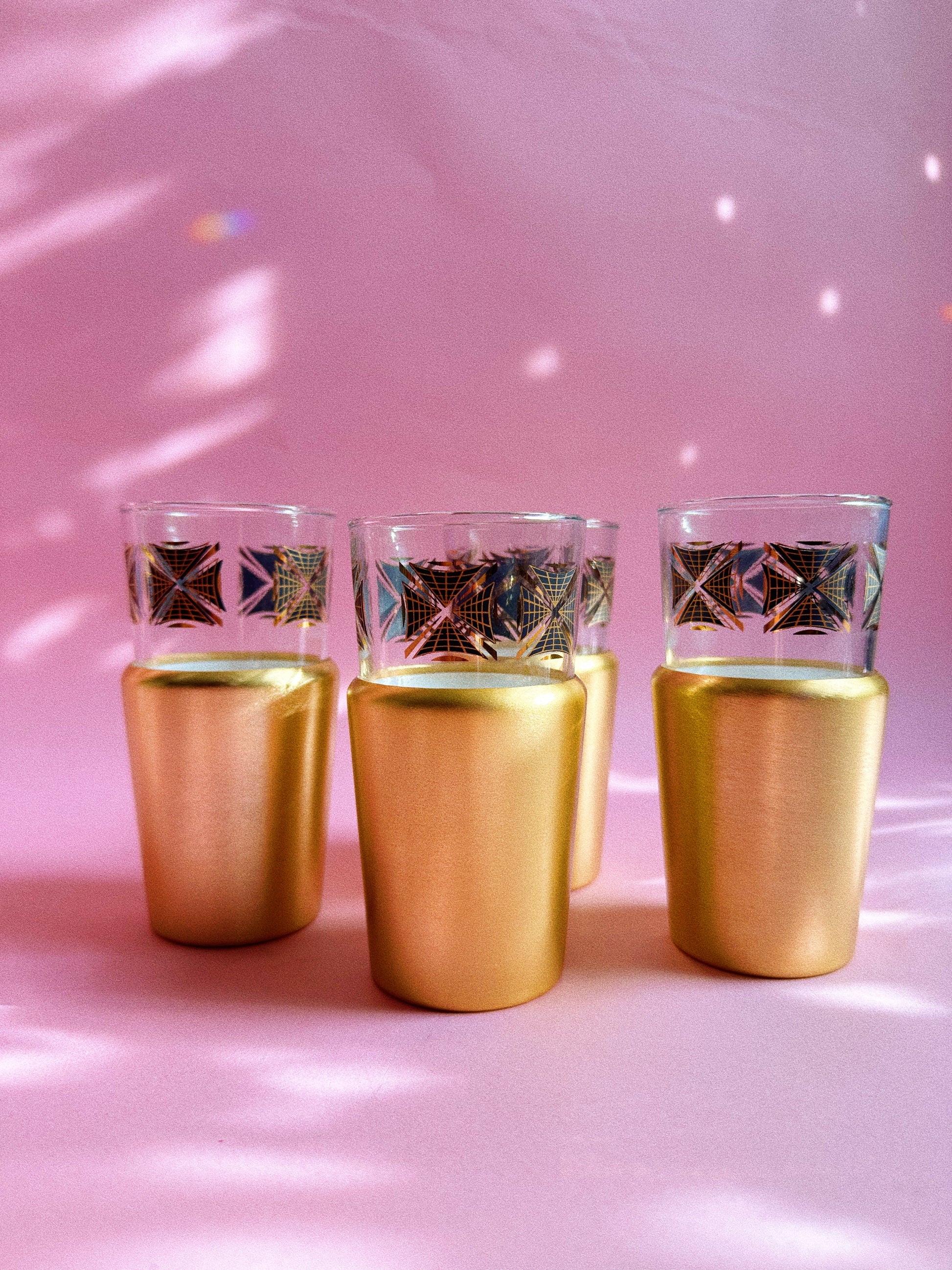 MCM Set of 4 Gold Detailed Dominion Glassware, Drinking Glasses w/ Insulators