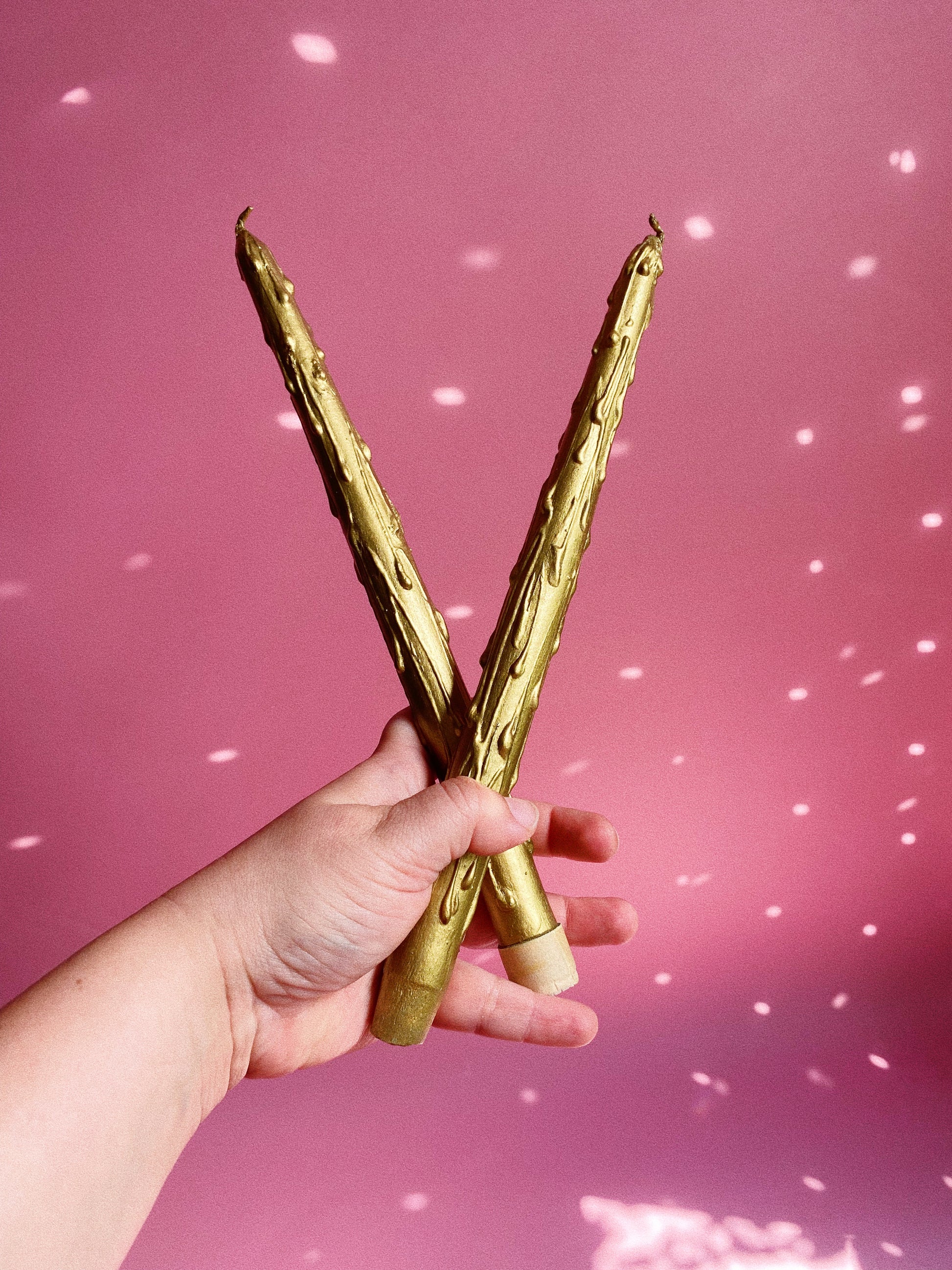 MCM Vintage Wooden Golden Drippy Taper Candles