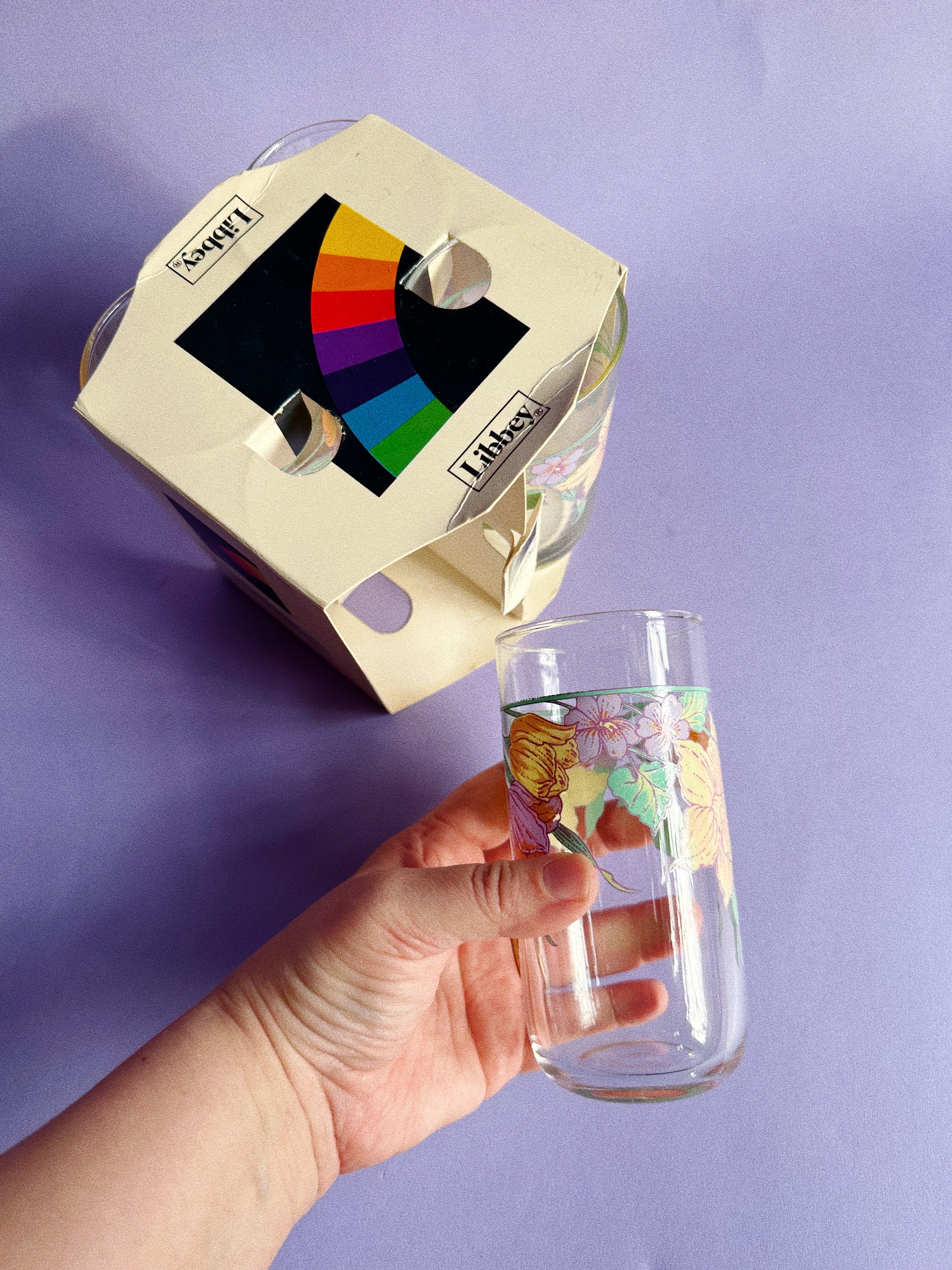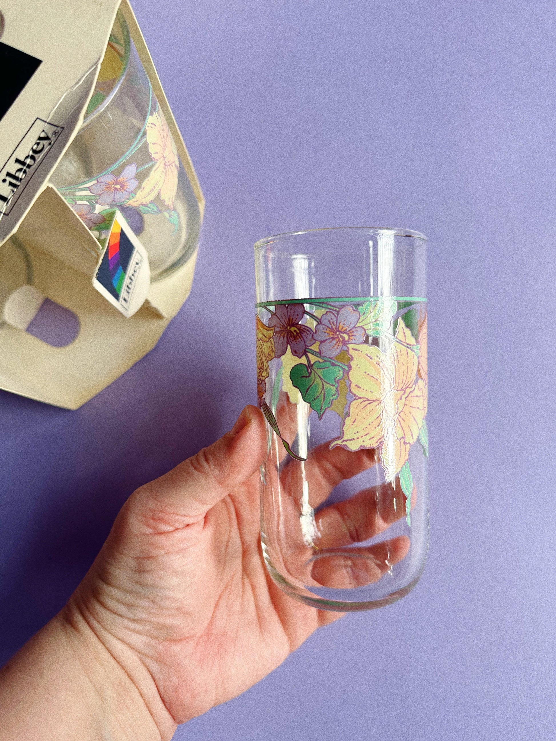 NIB Vintage Libbey Glass Floral Glasses 13 OZ Set of 4 Made In USA