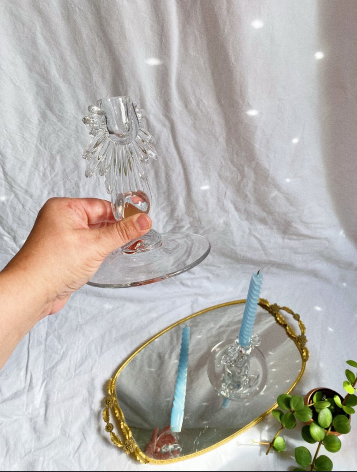 Rare vintage early - mid 20th century, art deco style manganese glass starburst candlesticks.