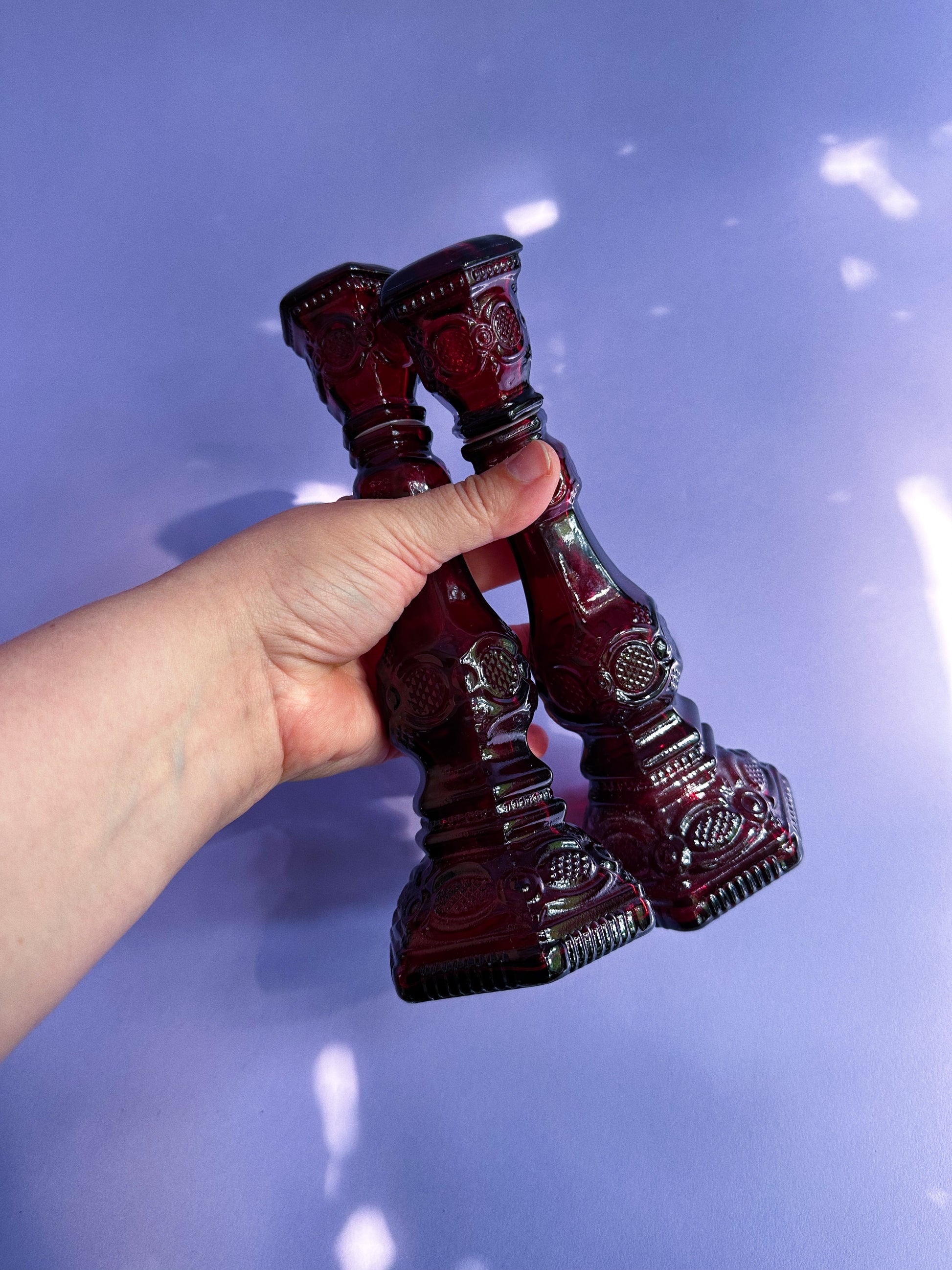 Beautiful ruby red Avon taper candle holders.