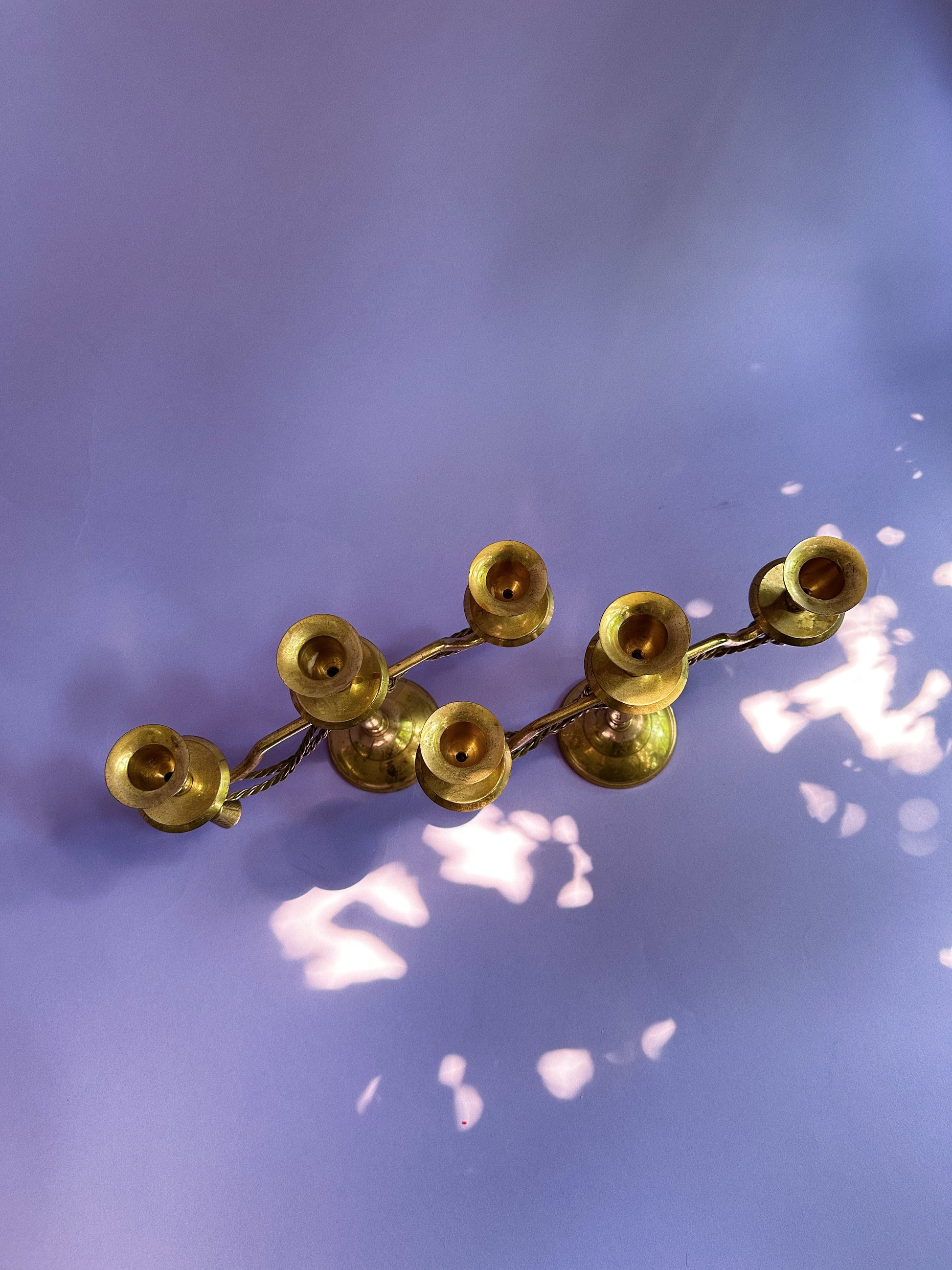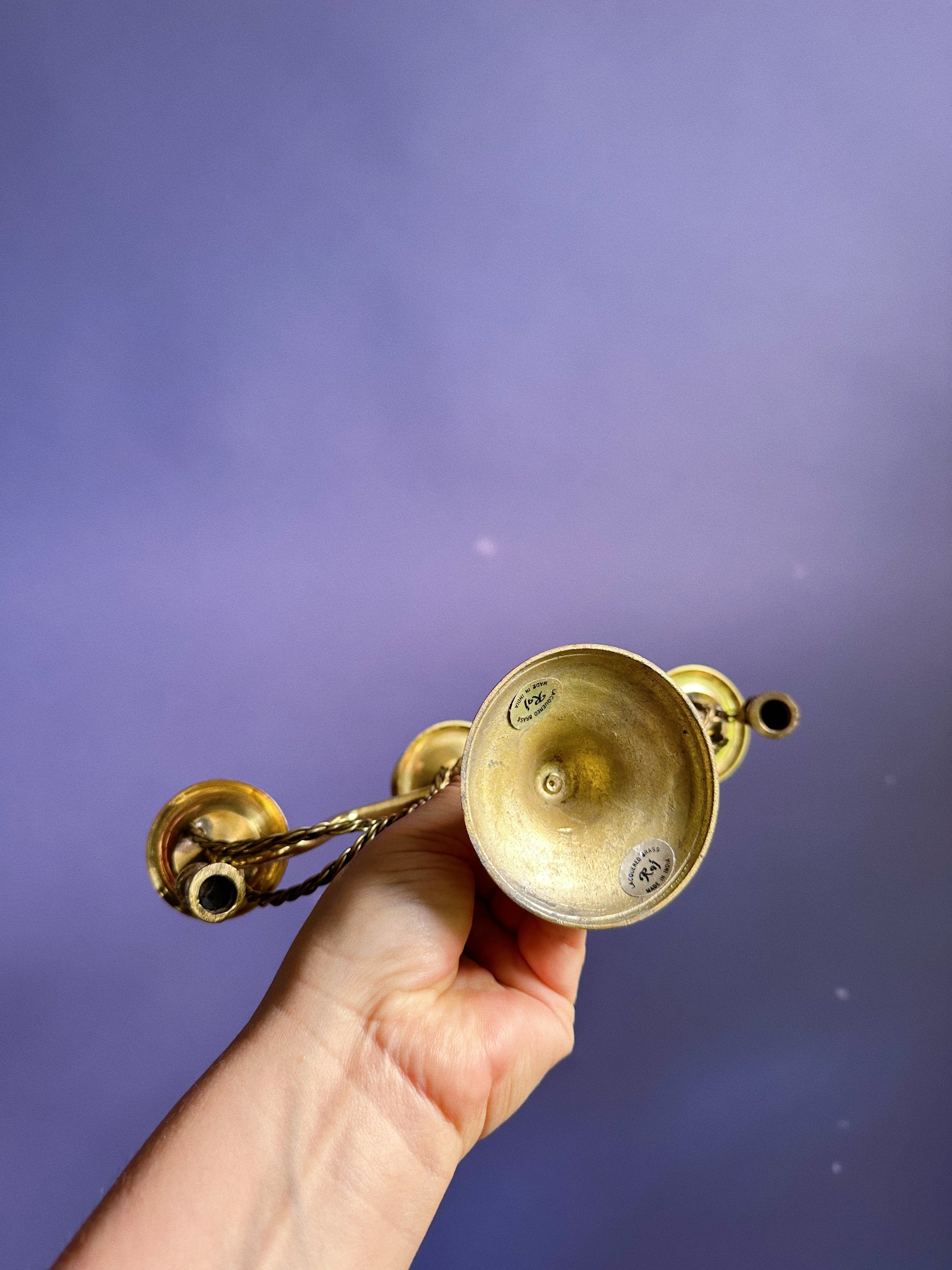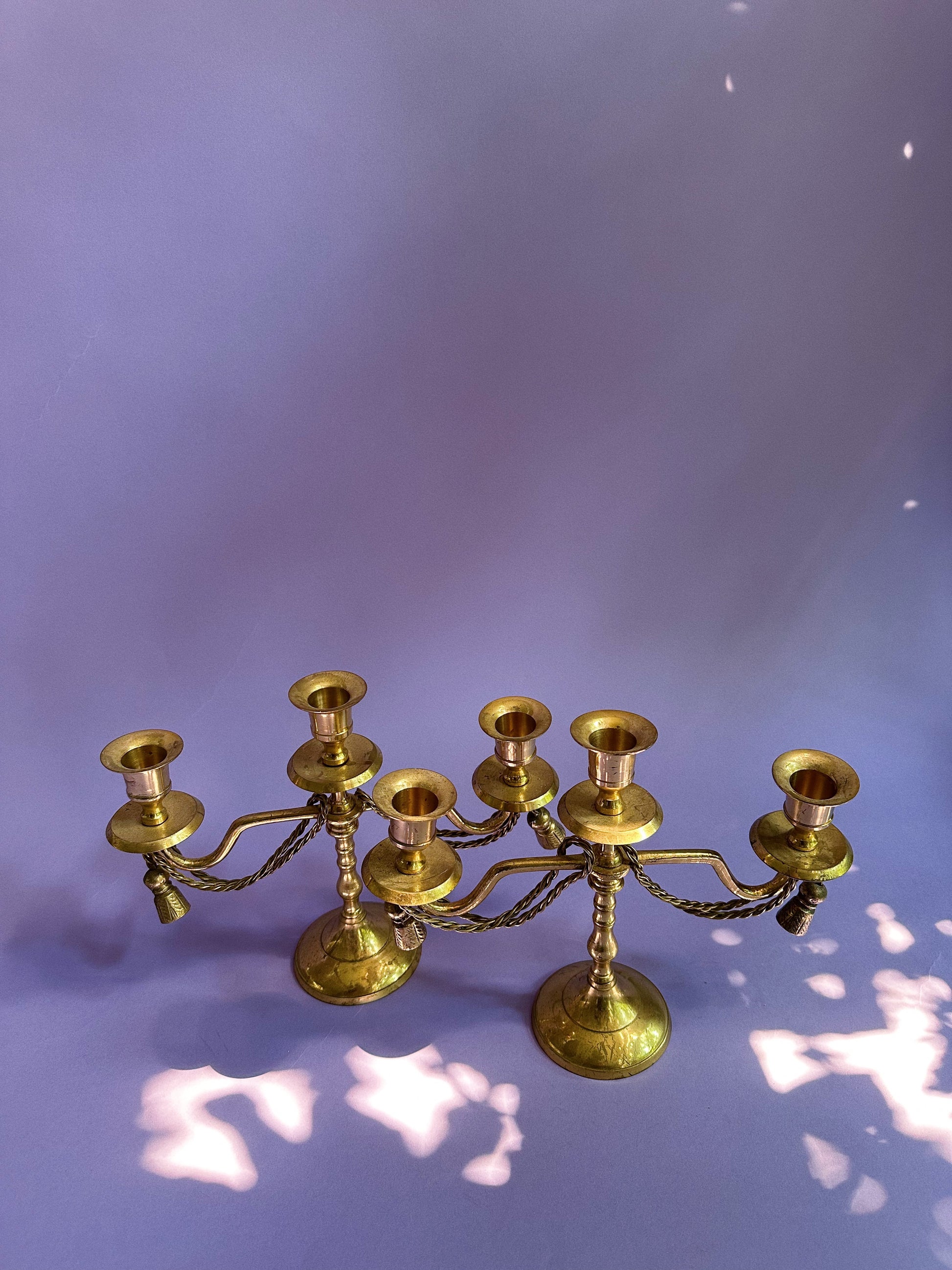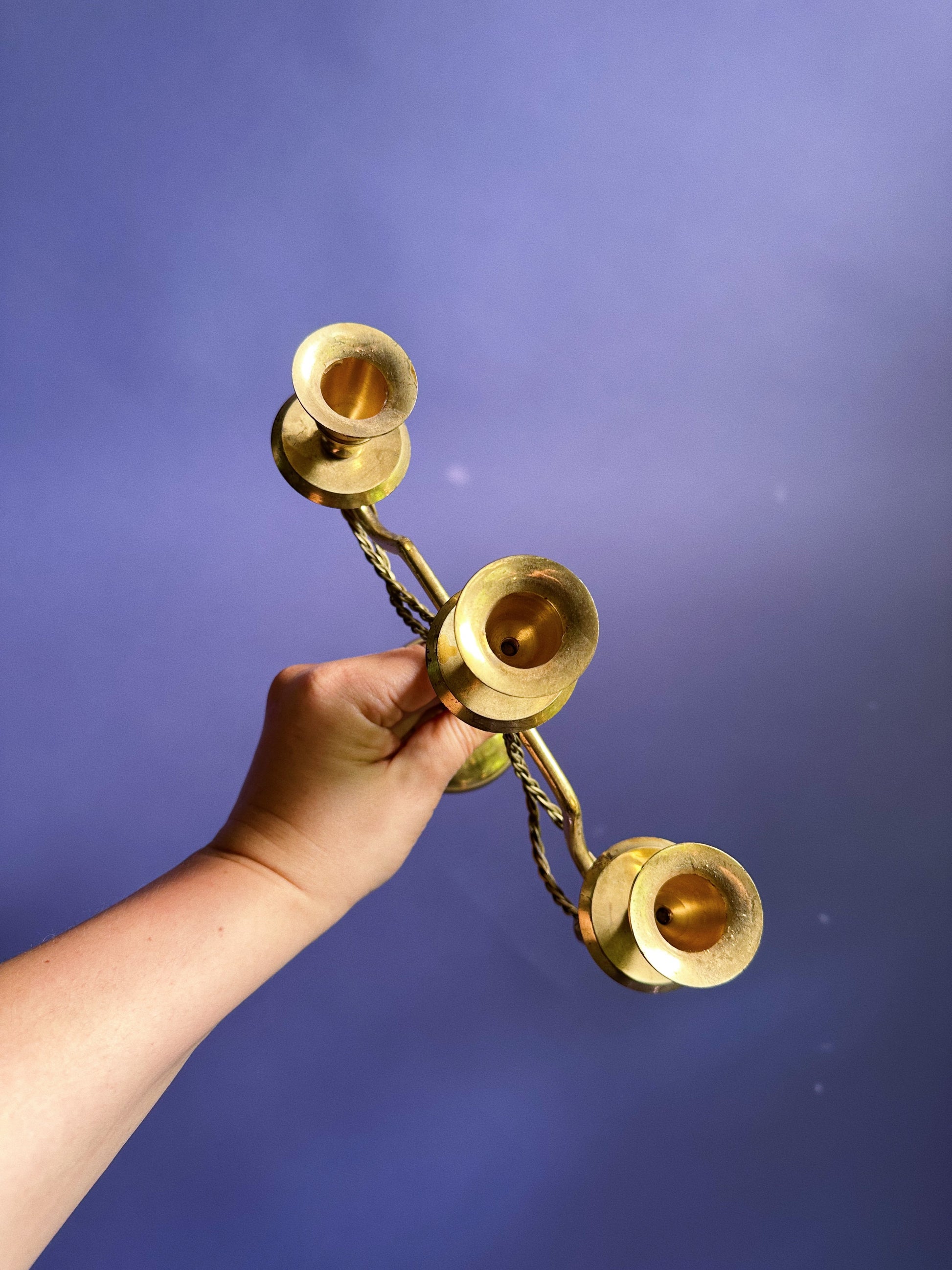Pair Of Vintage Brass 3 Arm Candelabra Candles Braided Rope Goth Victorian