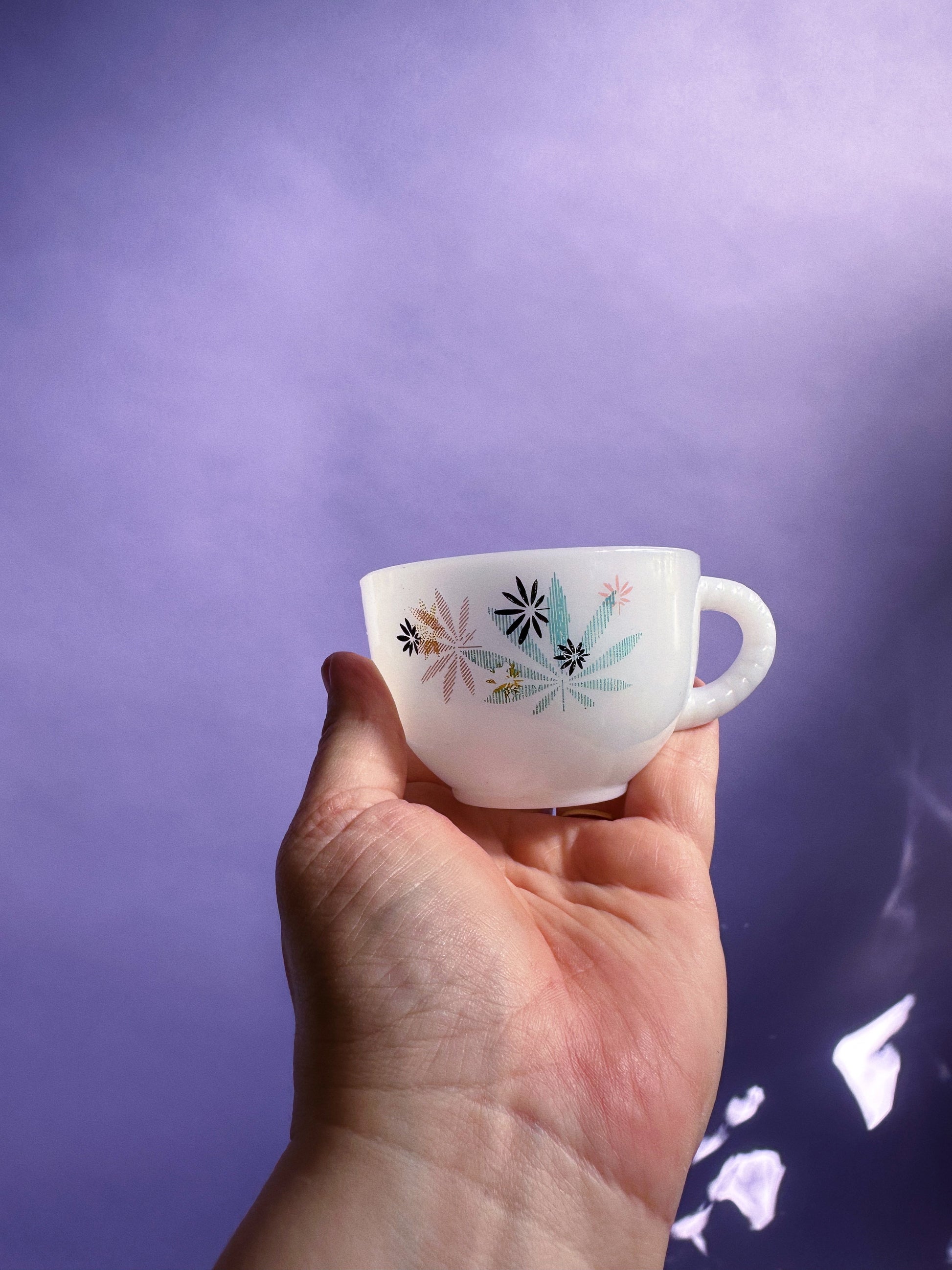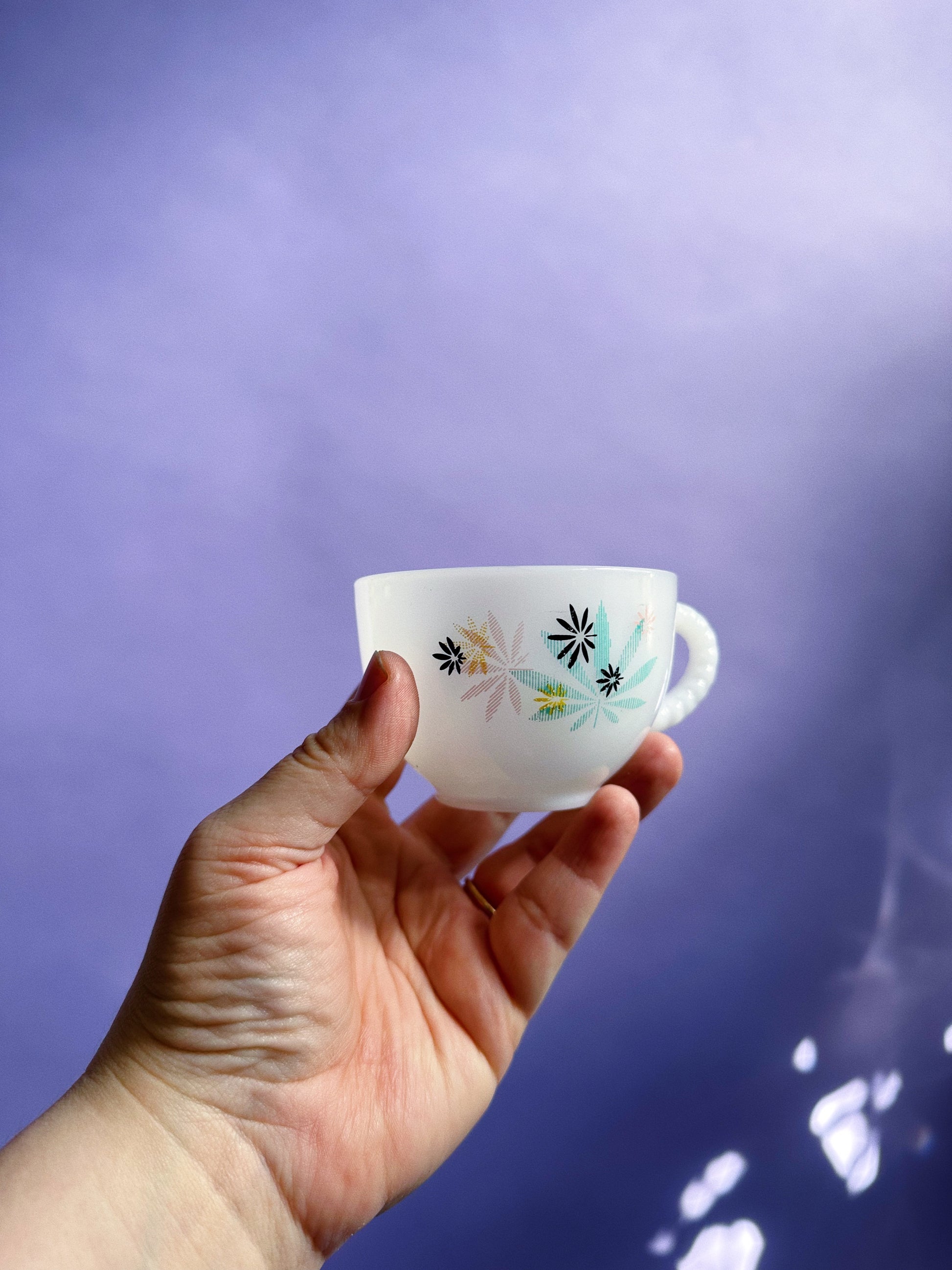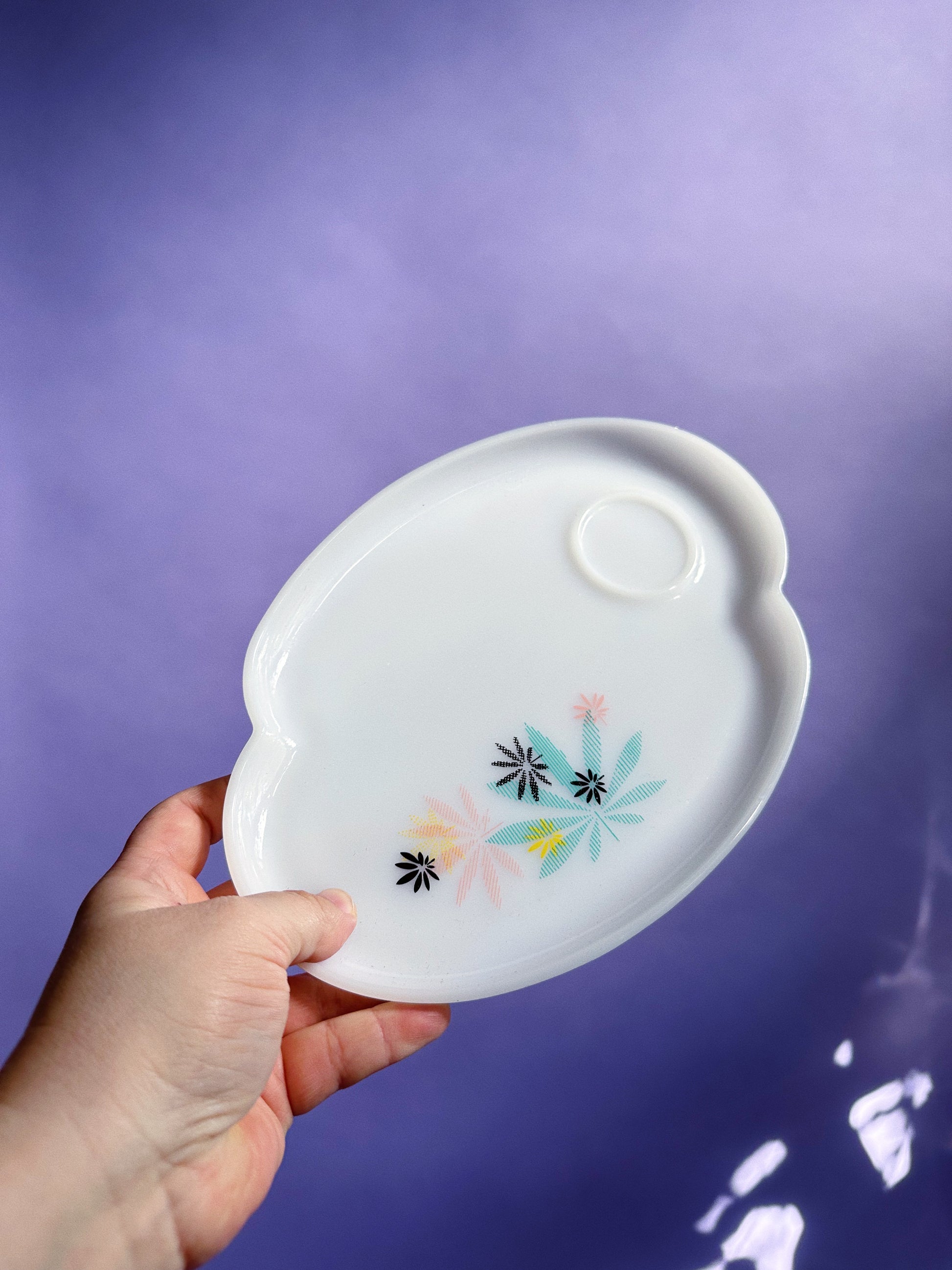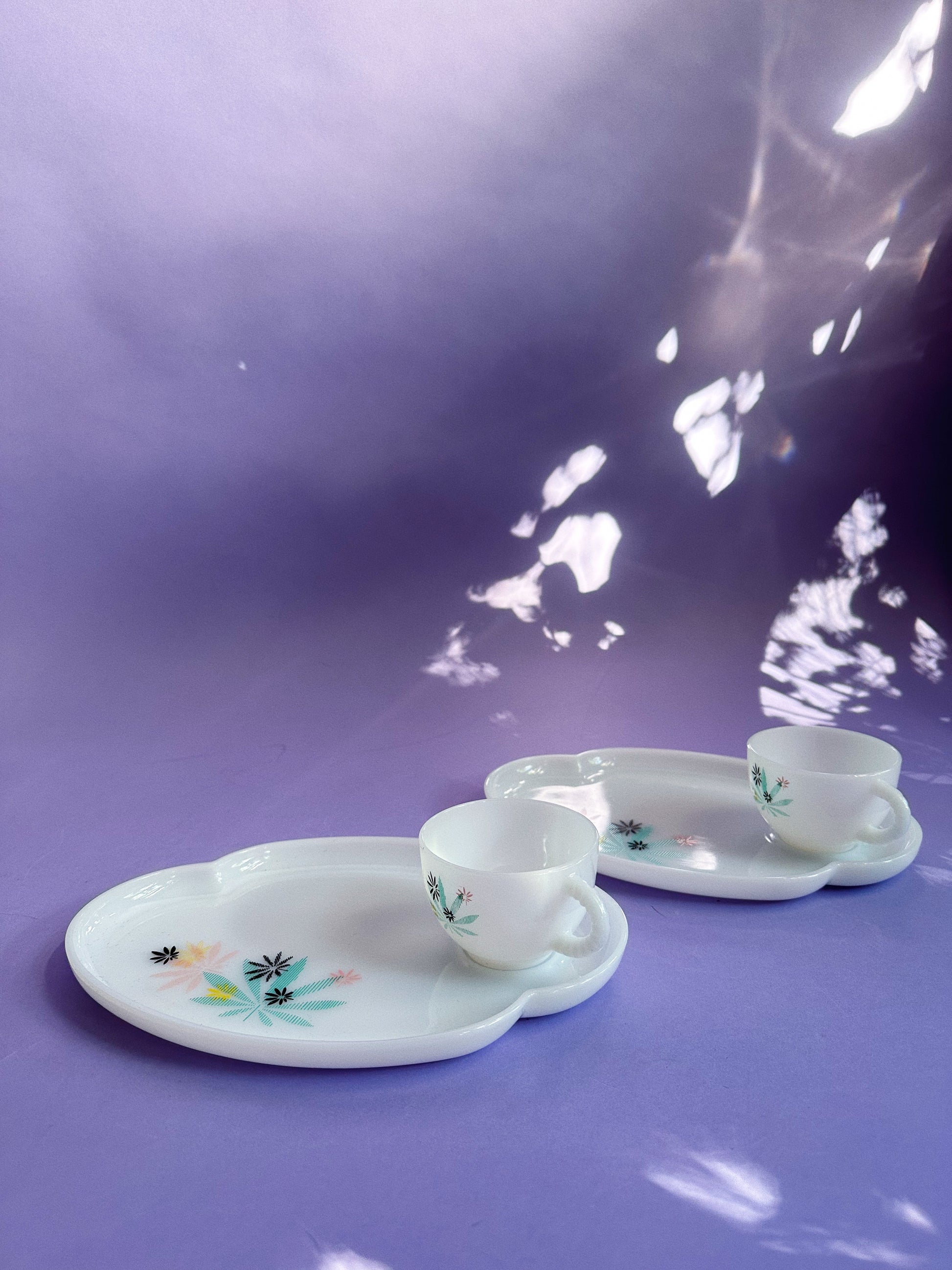 Rare Federal Atomic Flower Milk Glass Patio Snack Set Vintage Mid-Century Modern