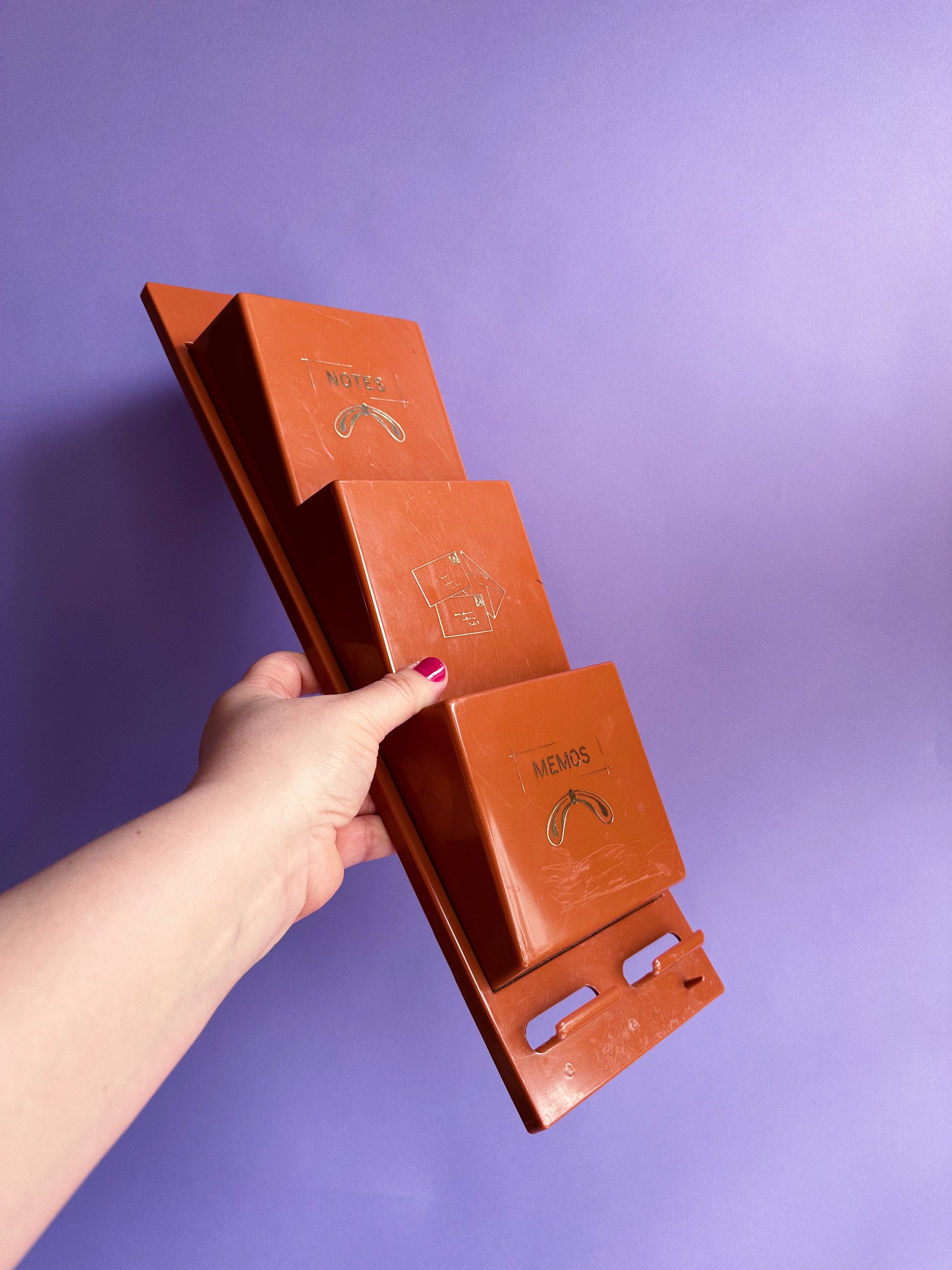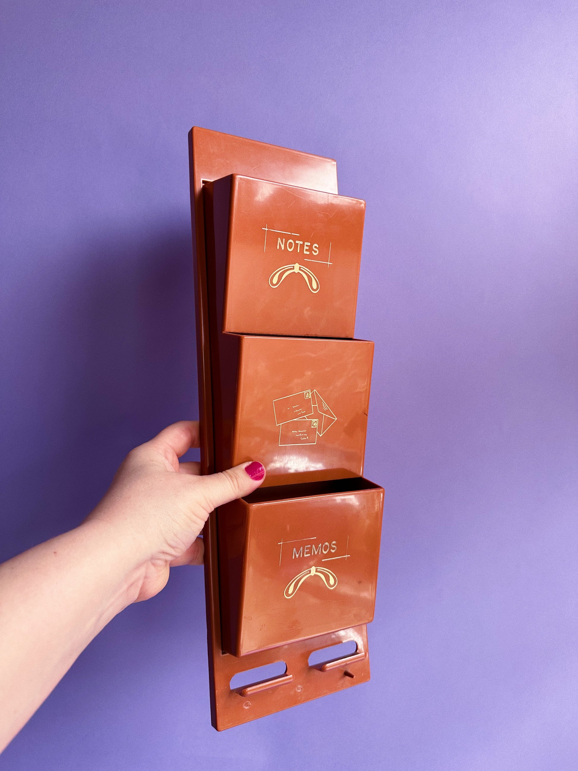 Red Brown Letter Bills Mail Organizer MCM Vintage Mid Century Plastic