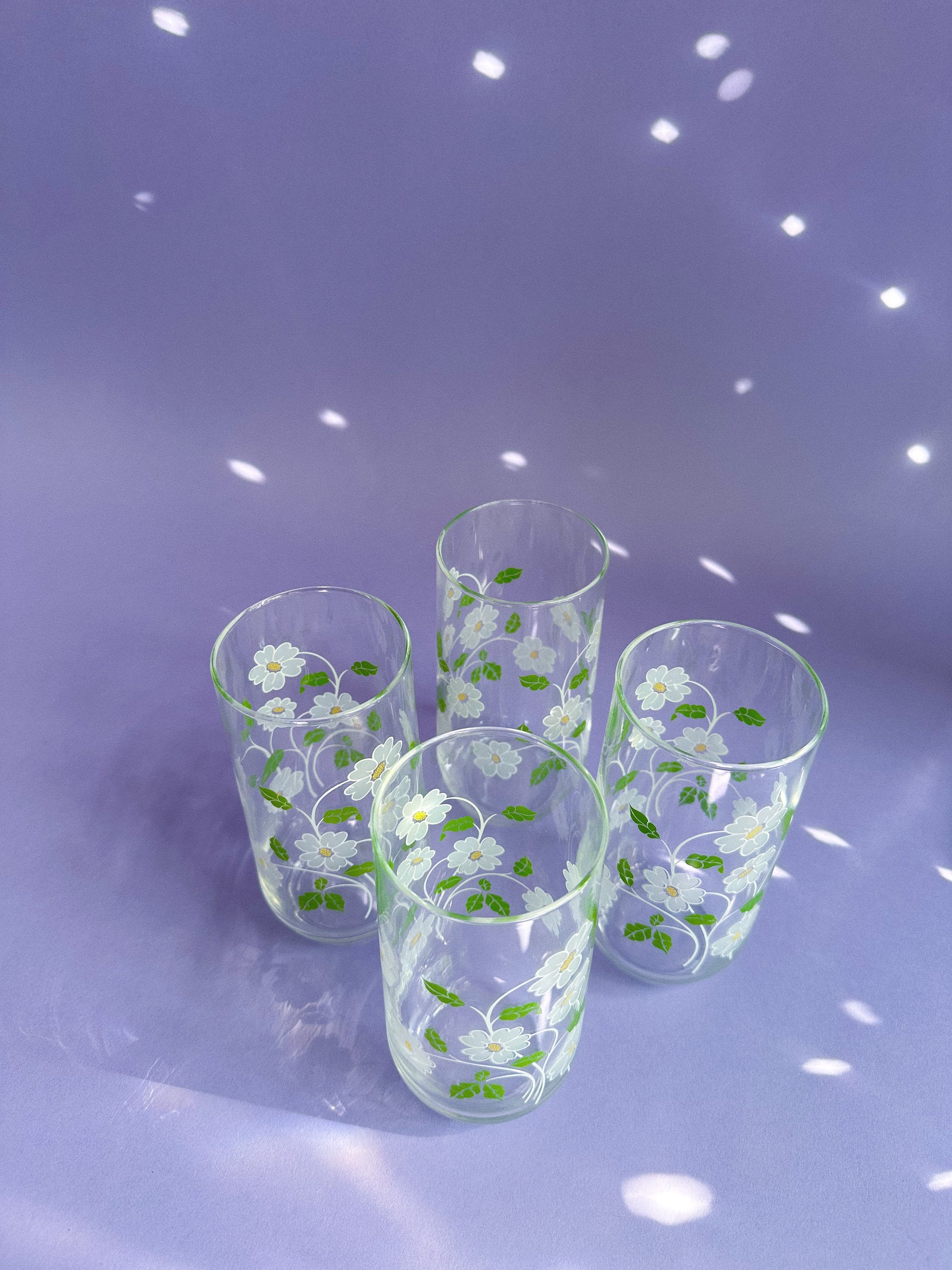 Set of 4 Vintage Daisy Print Glass Tumblers