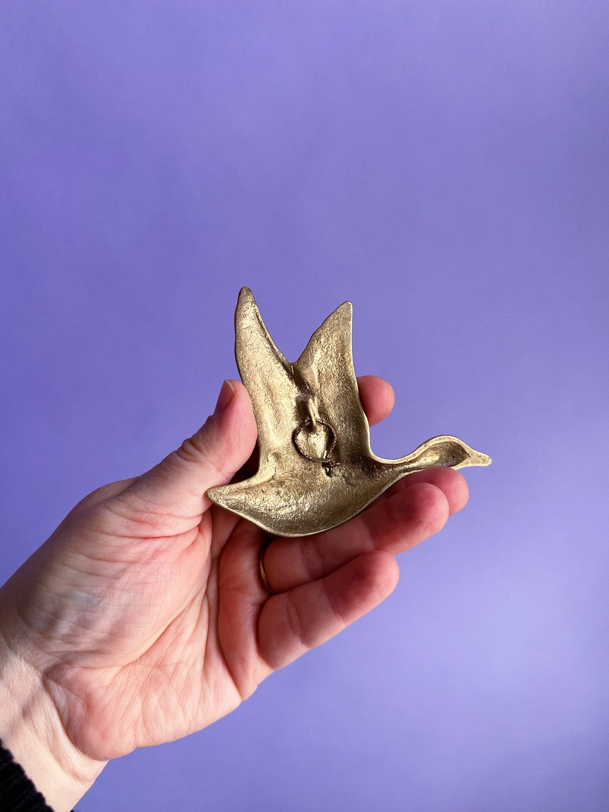 Sweet Little Vintage Flying Brass Bird Wall Hanging