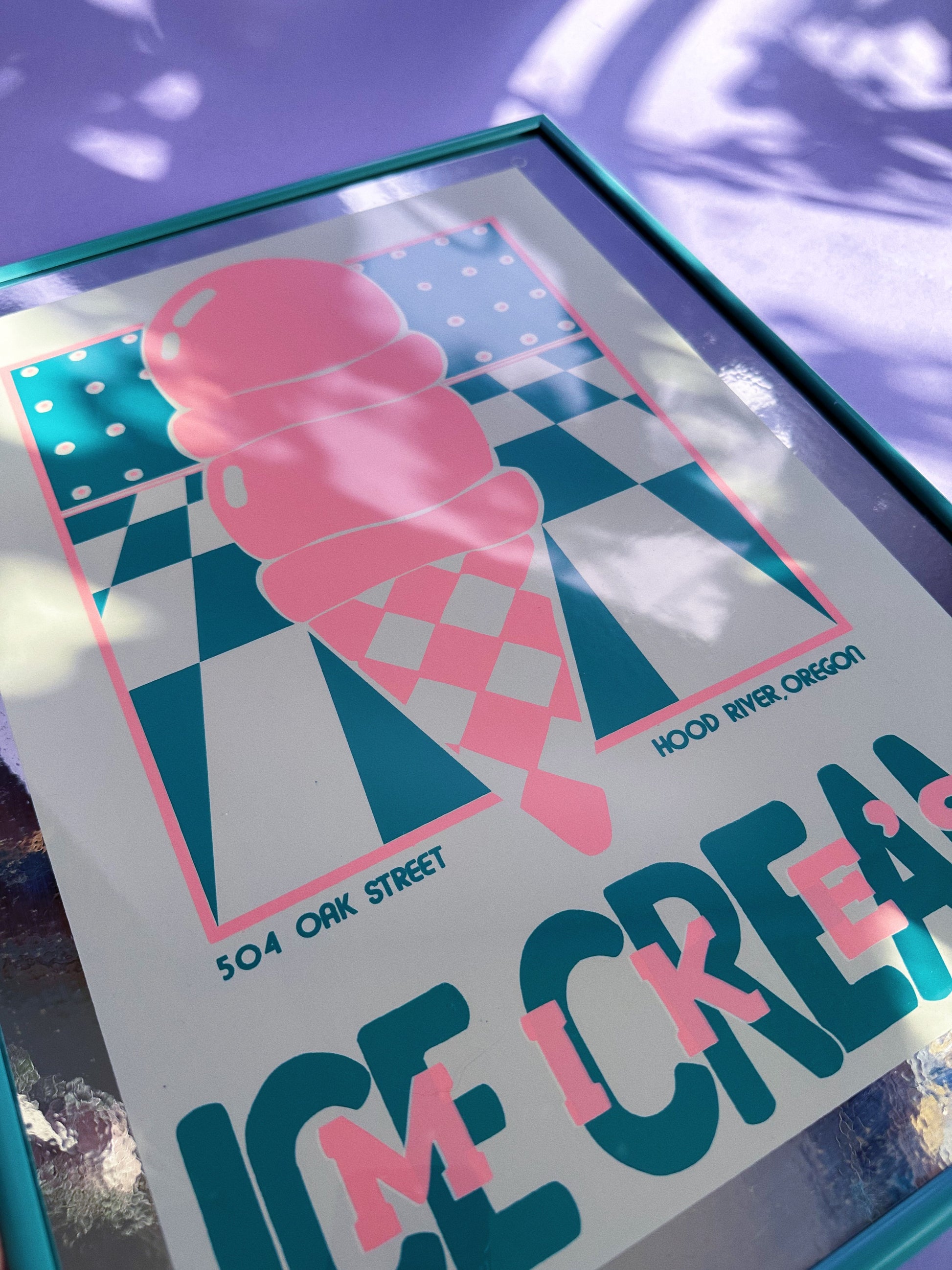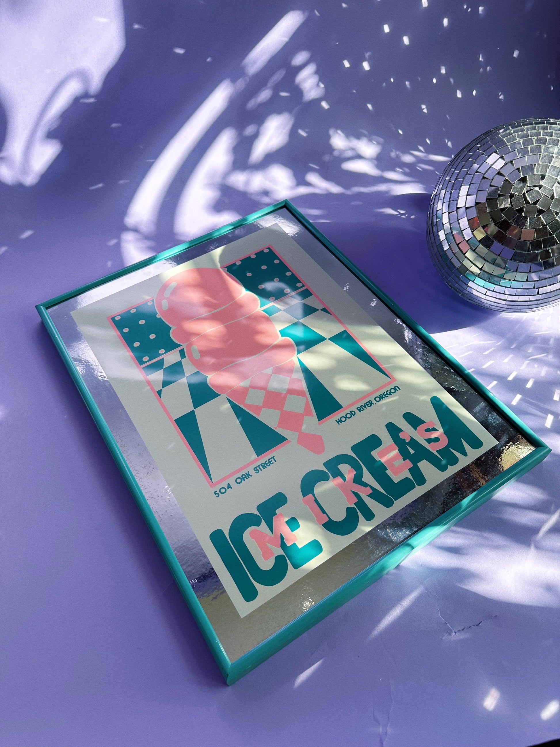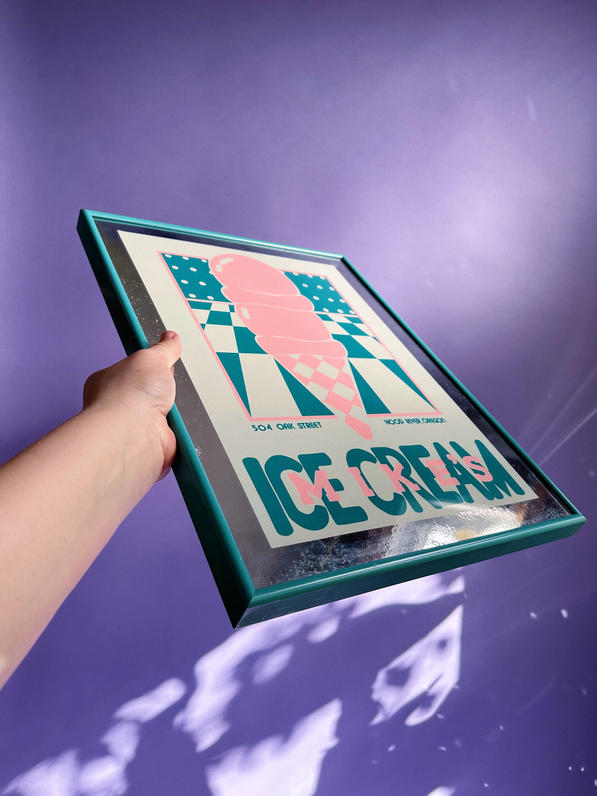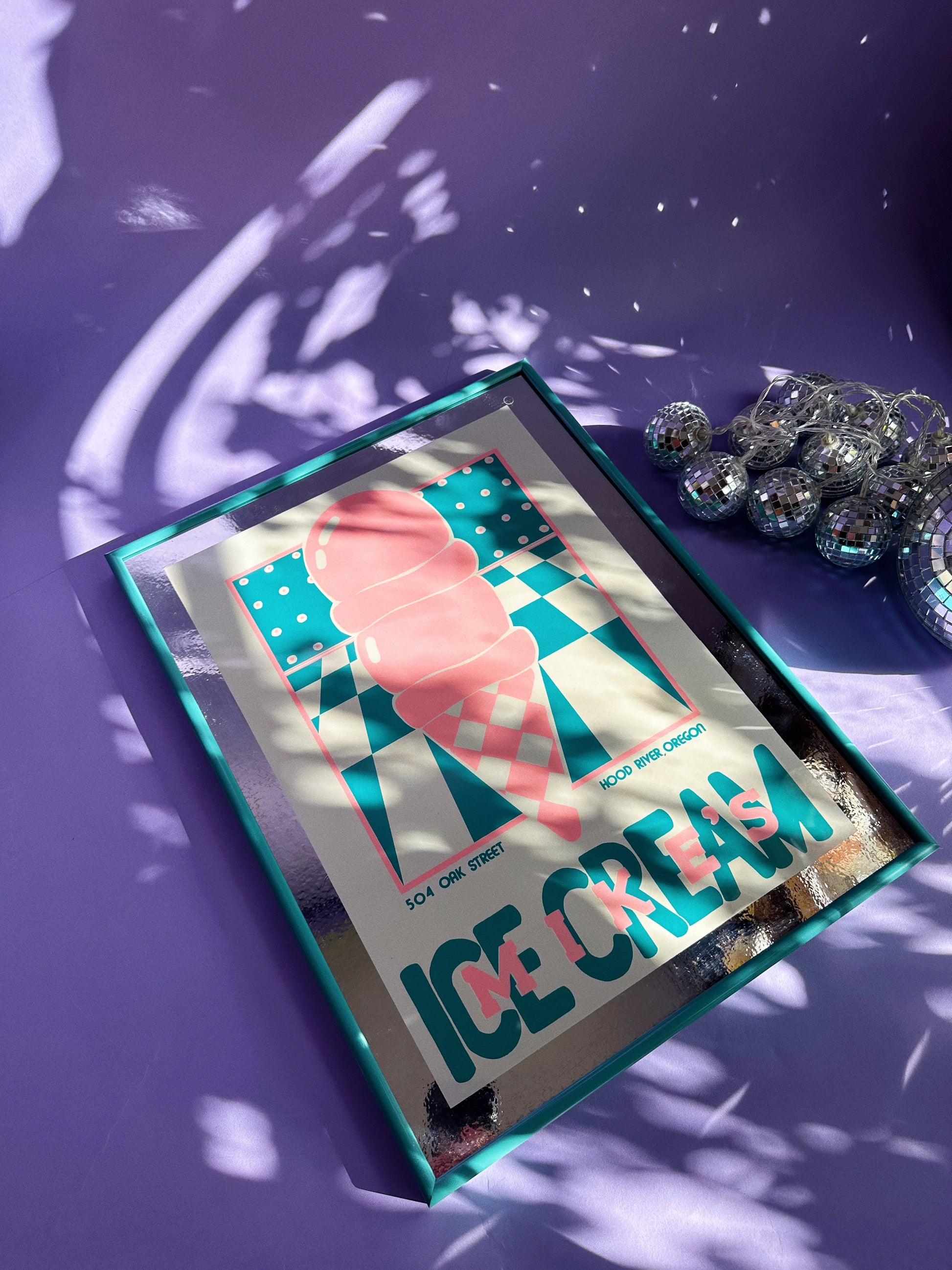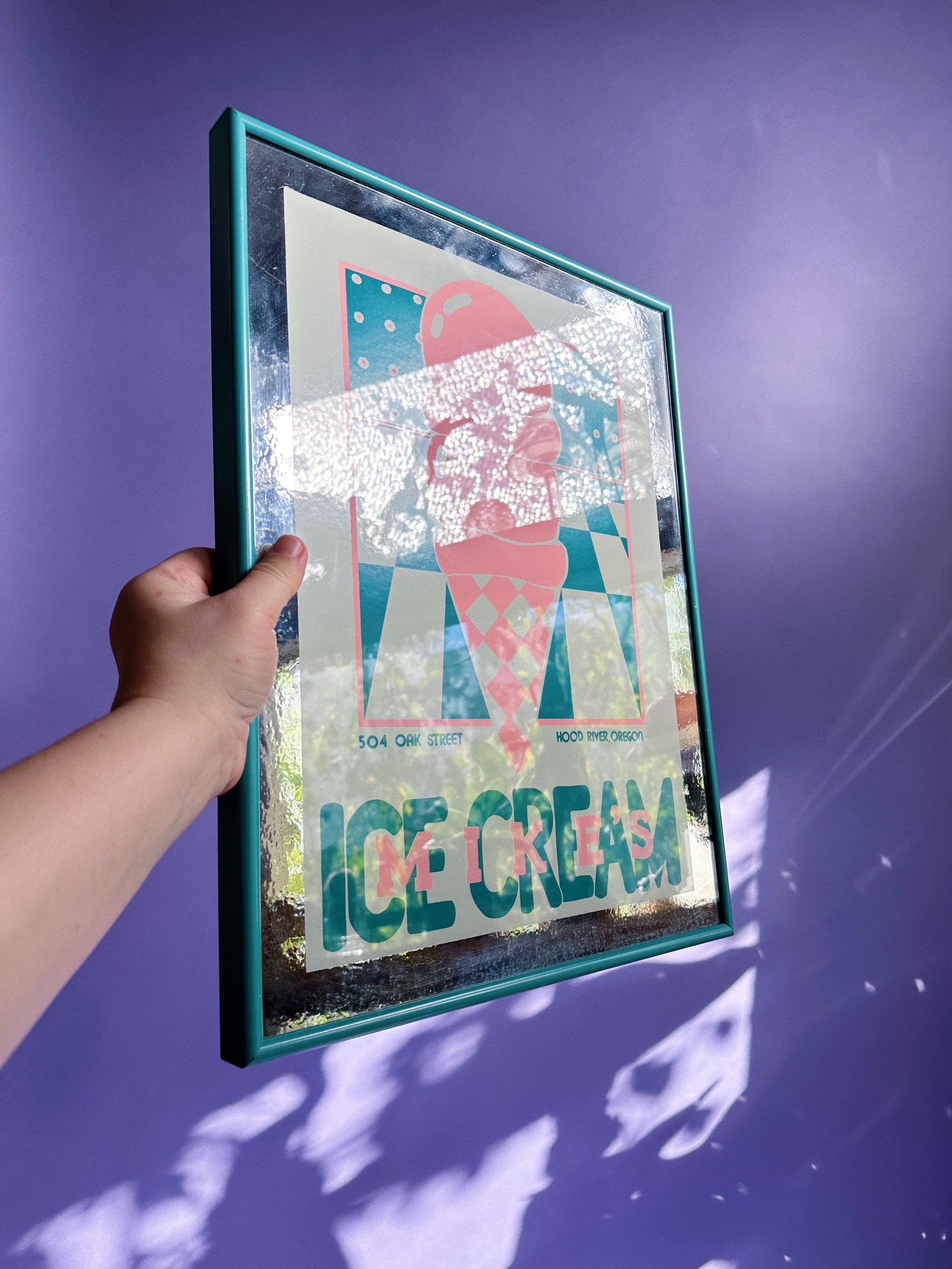 Vintage Framed Post Modern 80s Mike’s Ice Cream Mirror / Print