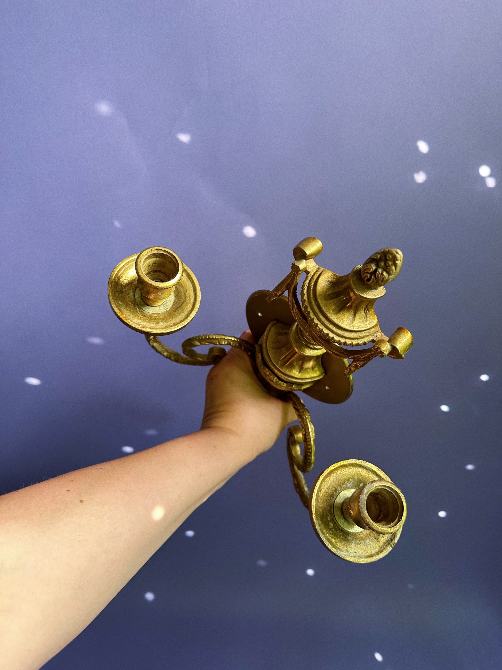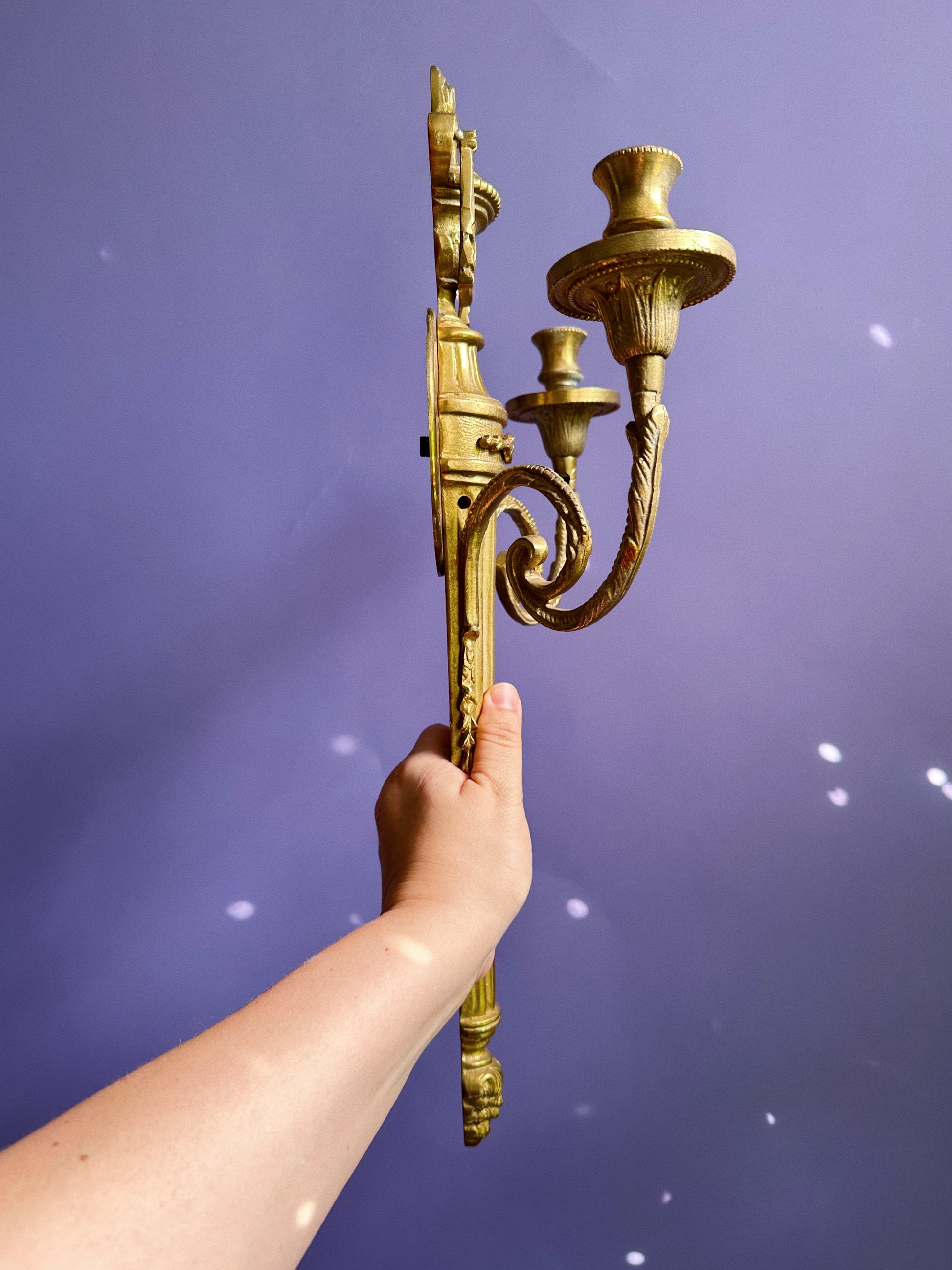 Vintage Antique Solid Brass Double Arm Wall Candle Sconce Candelabra Very Heavy