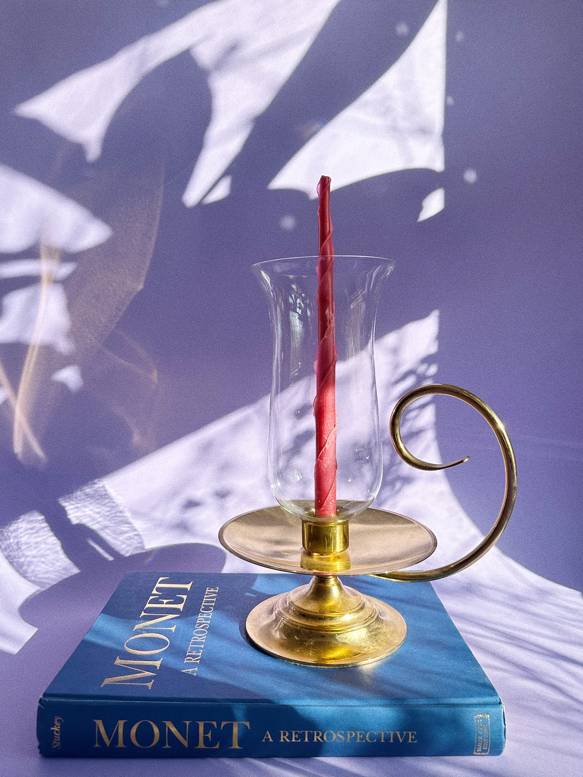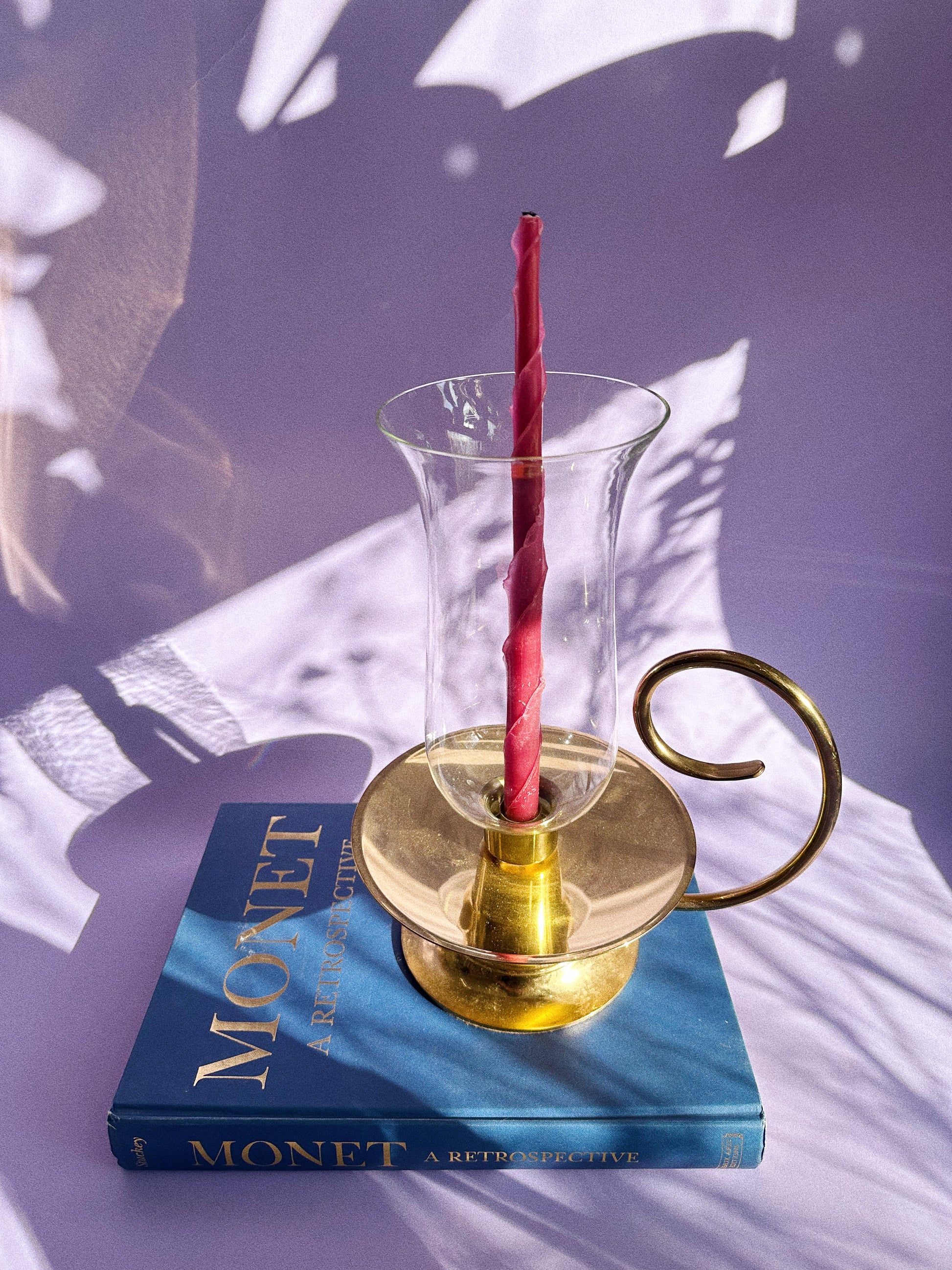 Vintage Baldwin USA Solid Brass Hurricane Candle Holder Lamp Glass