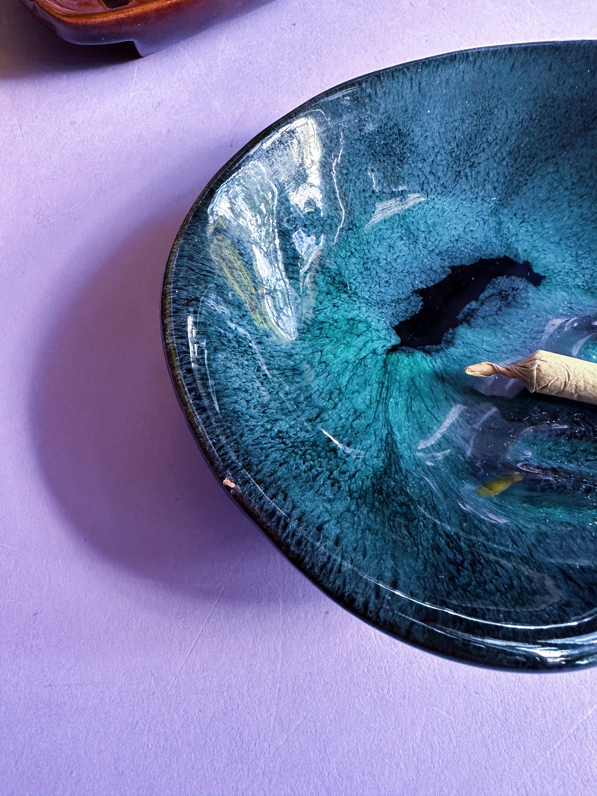 Vintage Evangeline Canada Blue Pottery Ashtray / Throw Dish