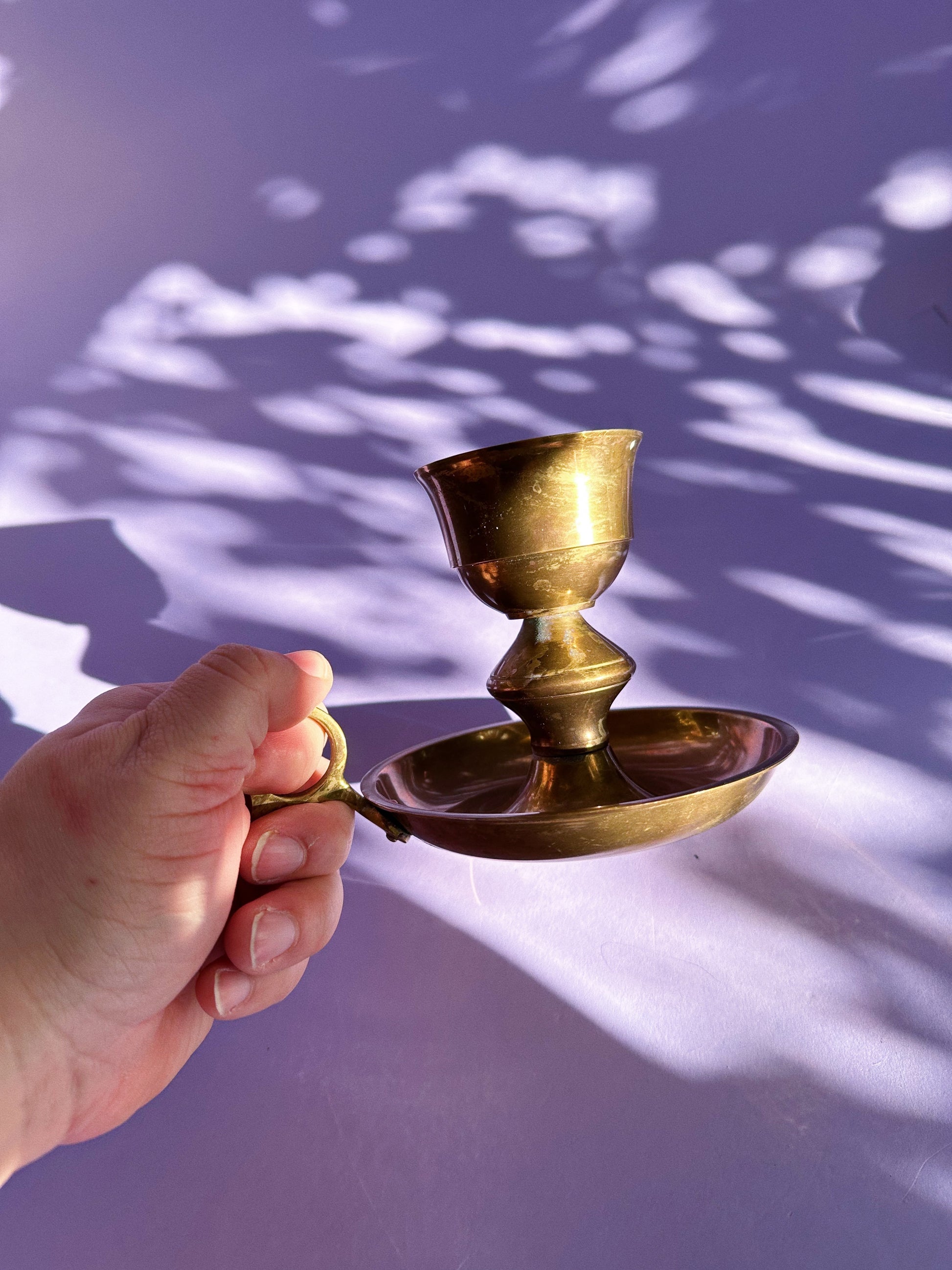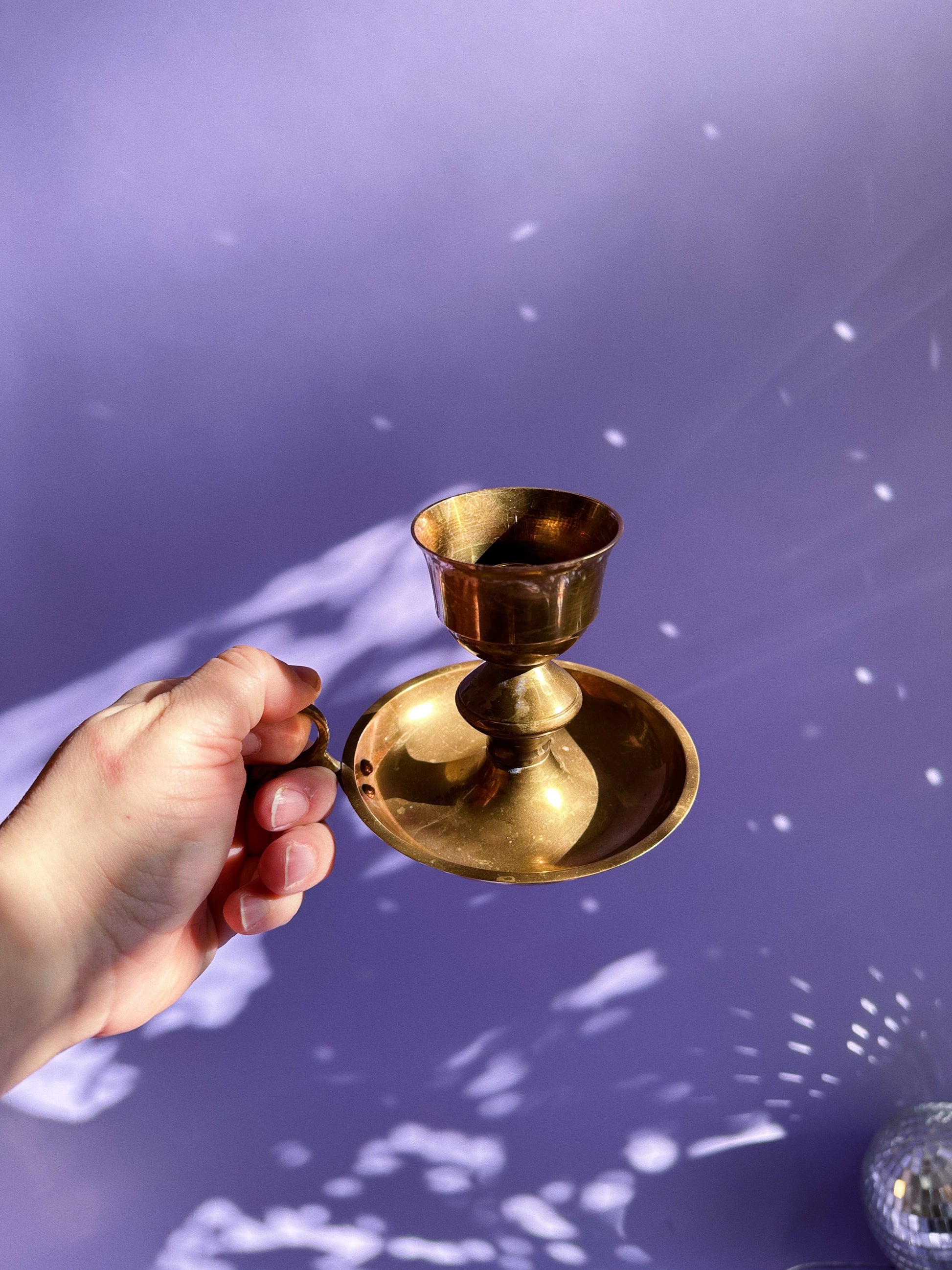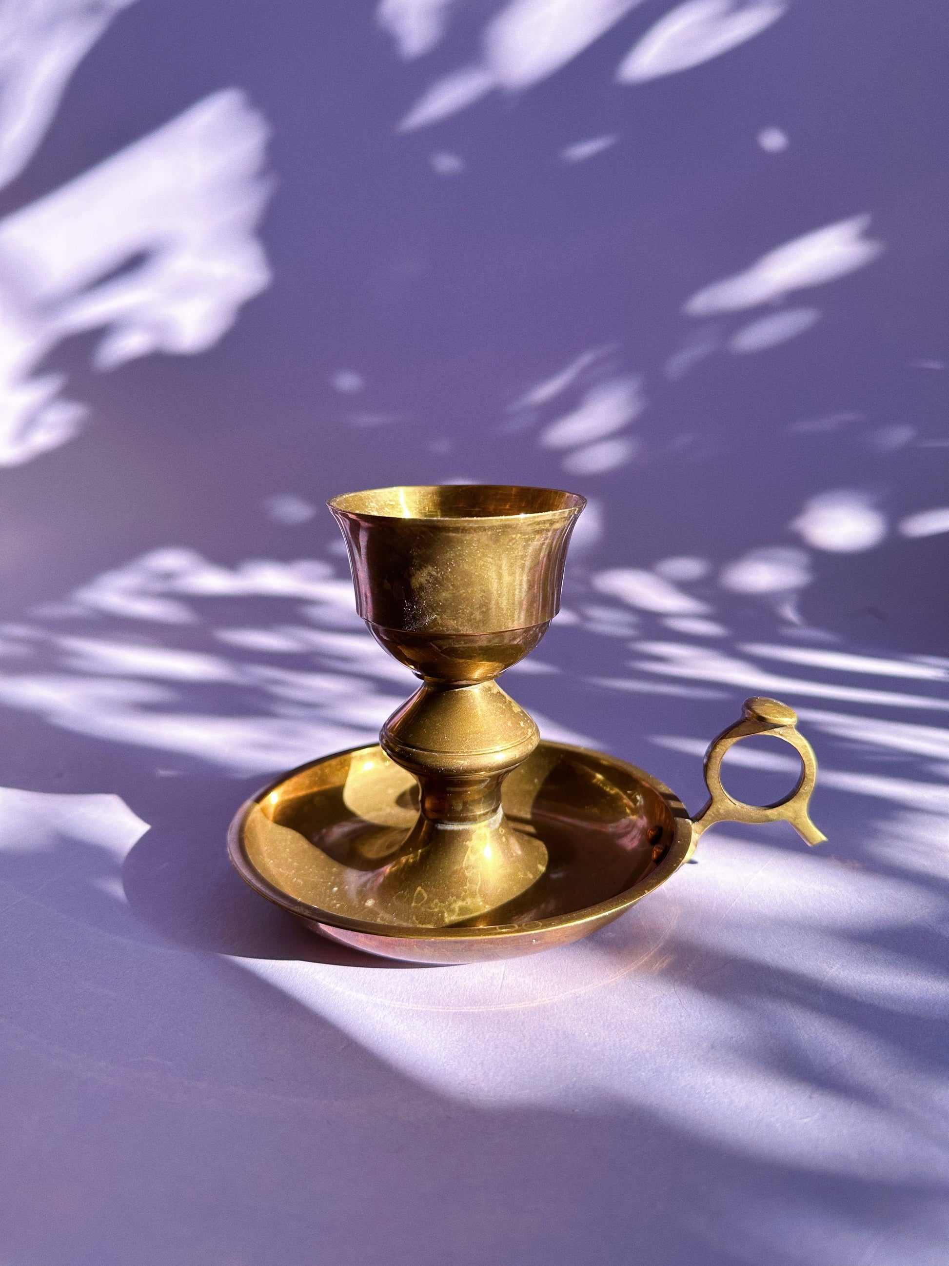 Vintage Solid Brass Chamber Candlestick for Taper Candles