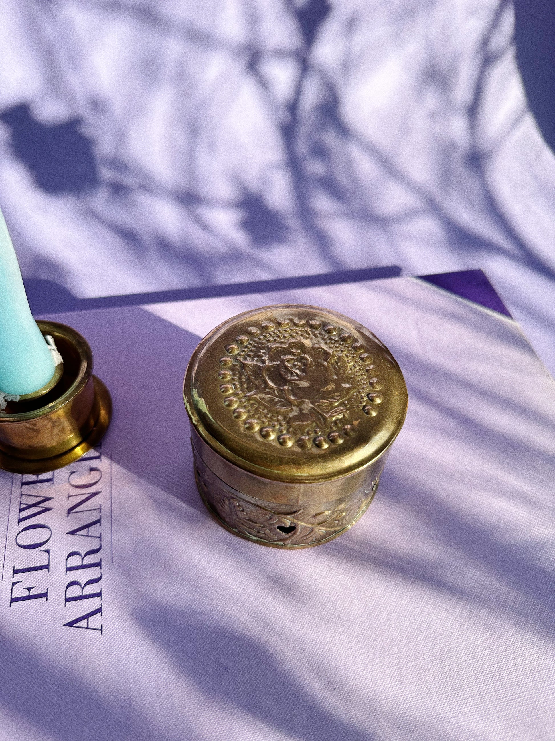 Vintage Brass Lidded Box With Heart Cut Outs