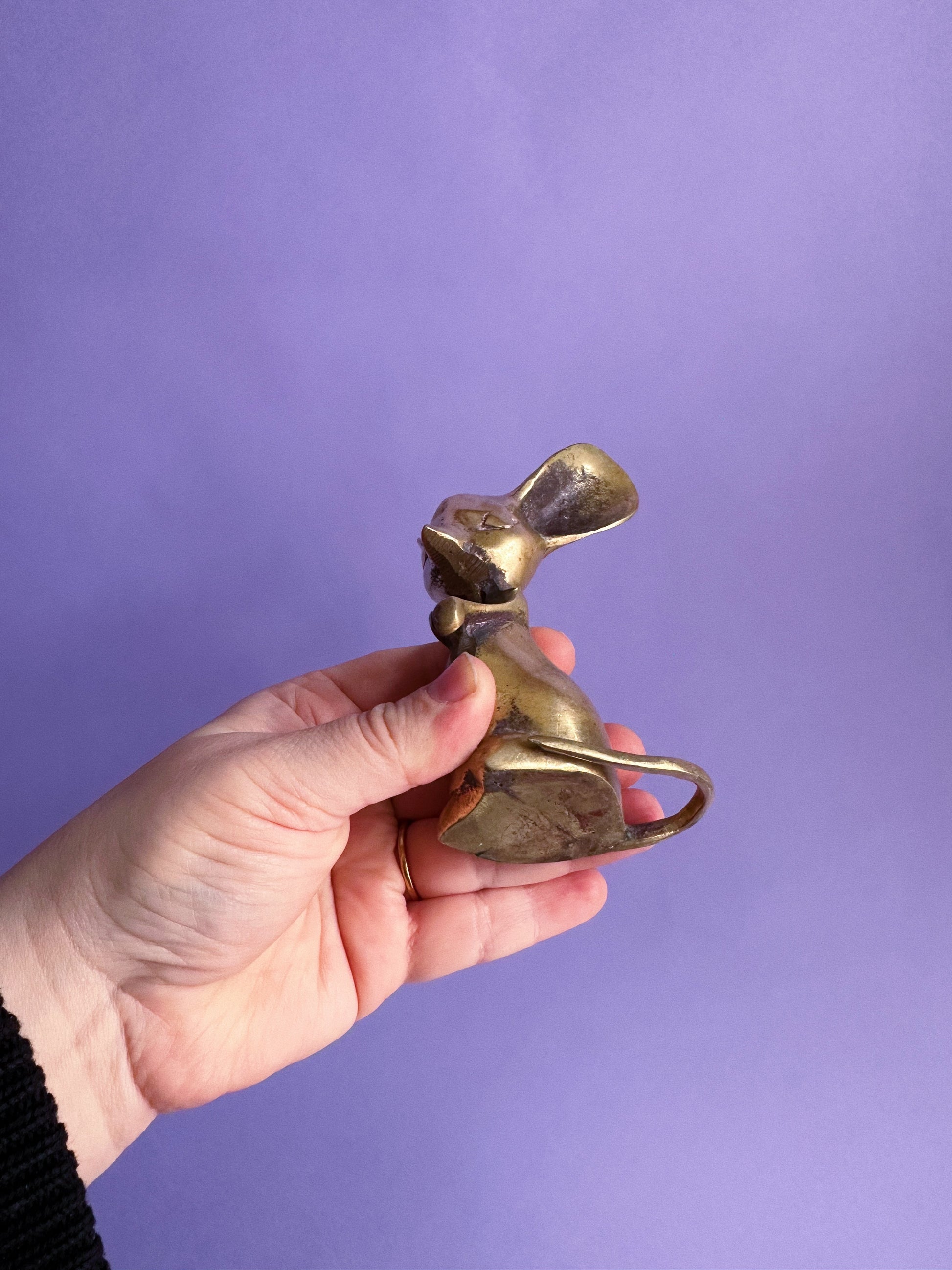 Vintage Brass Mouse With Big Ears Sculpture