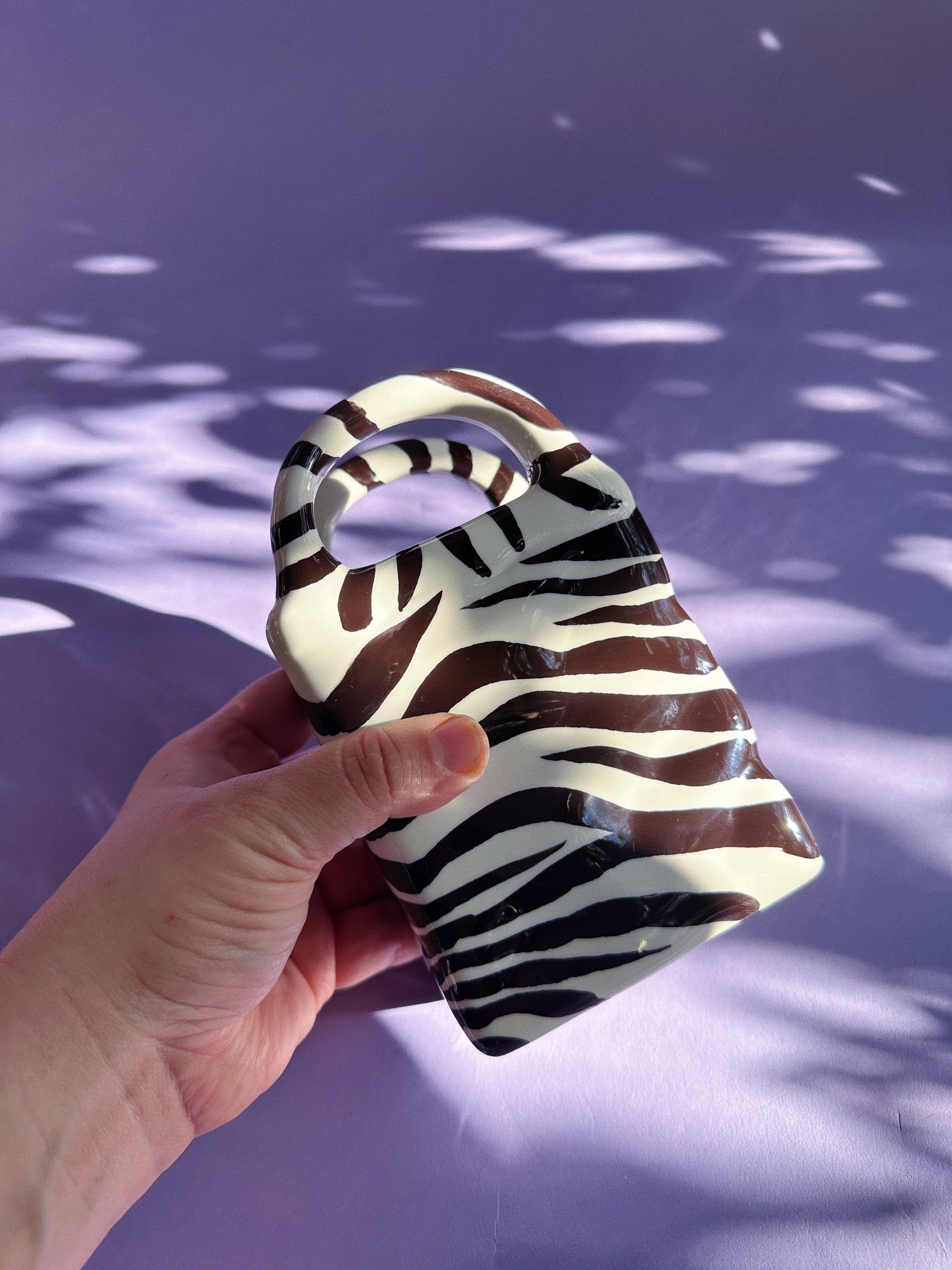 Vintage Ceramic Zebra Print Purse Vase