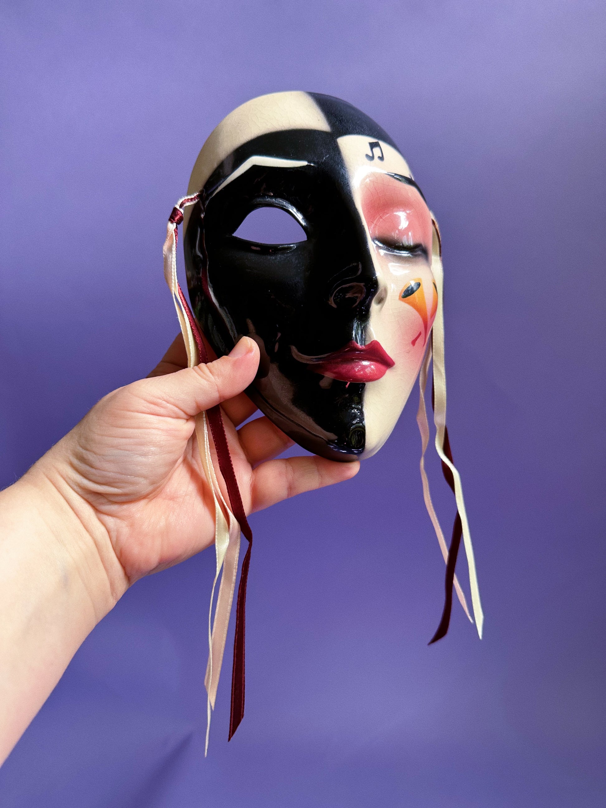 Vintage Clay Art SF Music Notes Ceramic Wall Mask 1990
