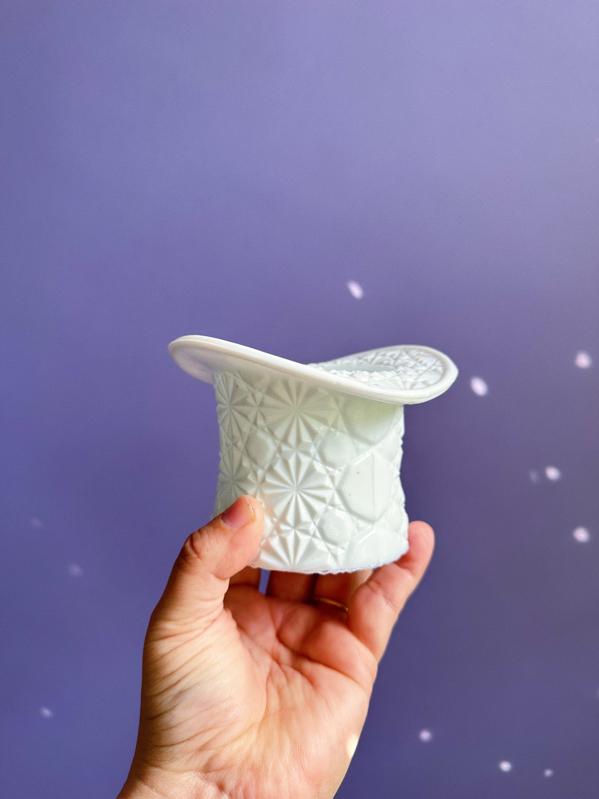 Vintage Fenton Large White Milk Glass Daisy and Button Top Hat Vase Match Holder