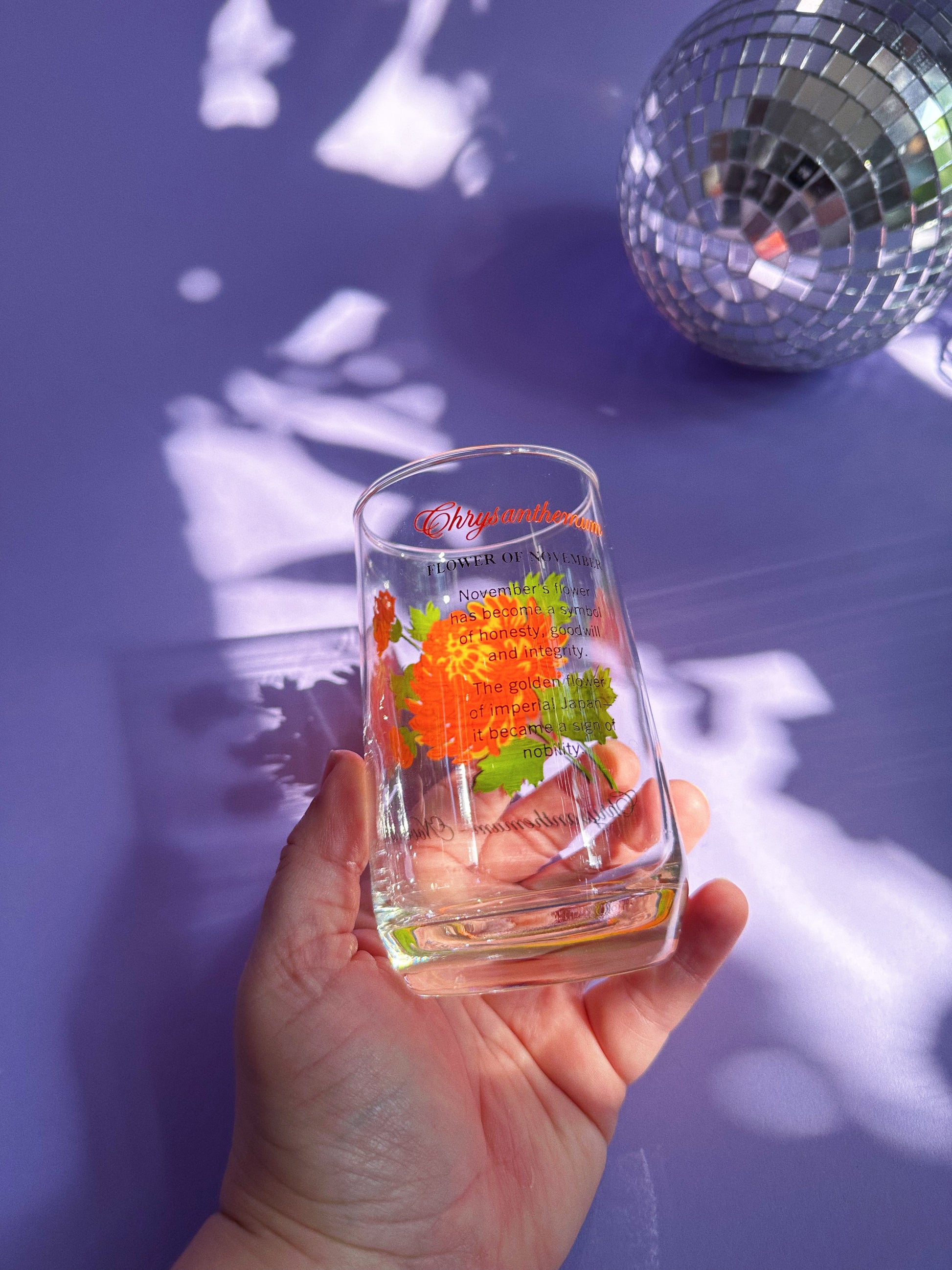 Vintage Floral Brockway Chrysanthemum November Medium Glass Tumbler
