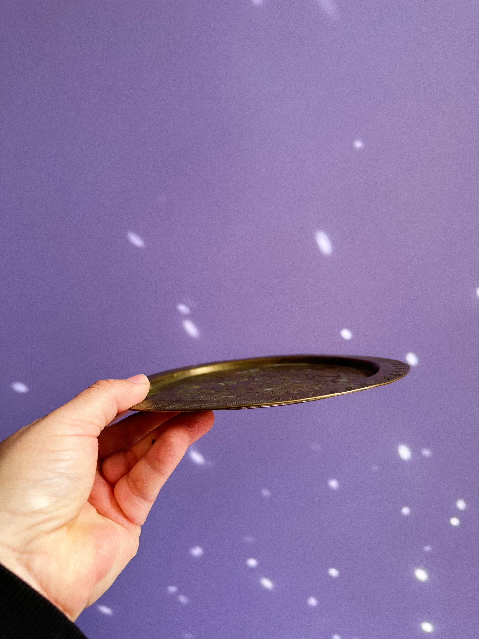 Vintage Floral Etched Brass Tray
