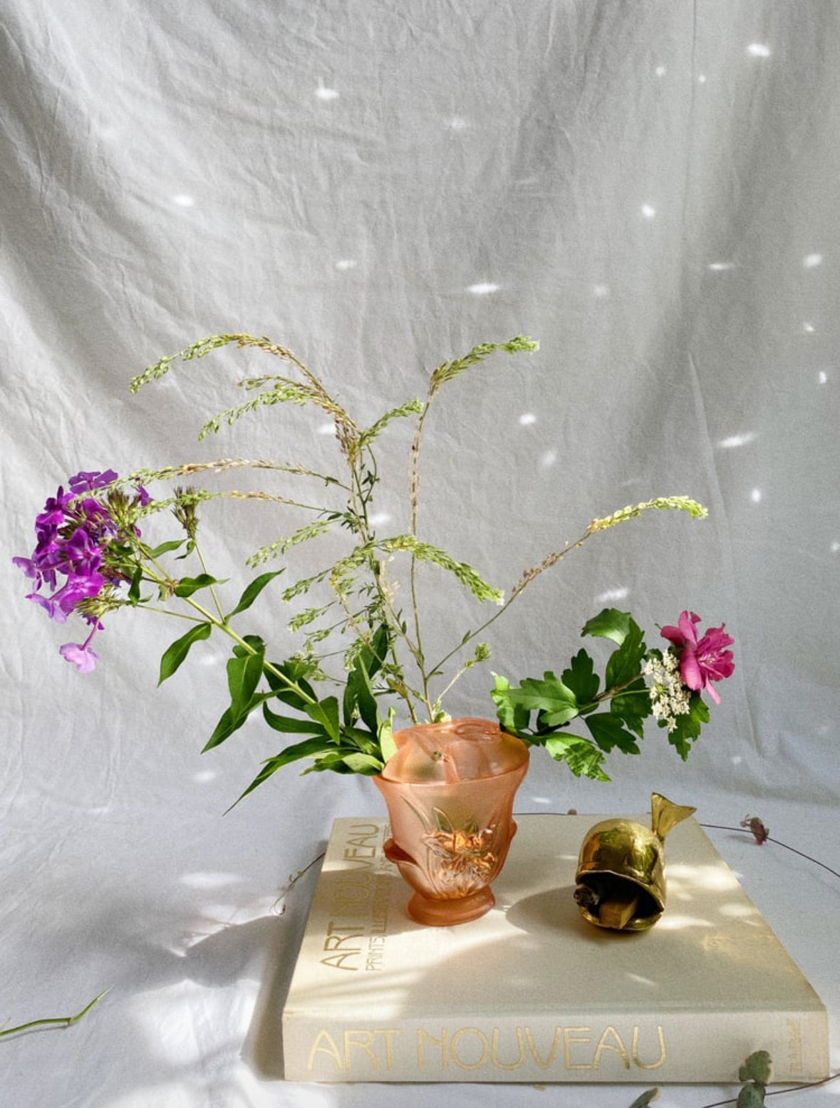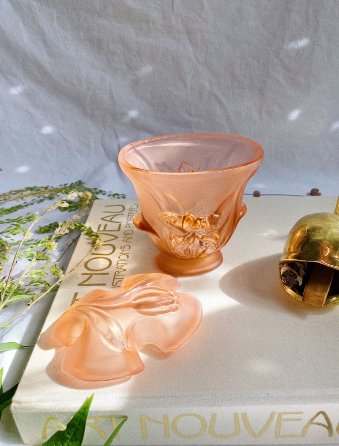 Vintage Frosted Pink Depression Glass Flower Frog Vase