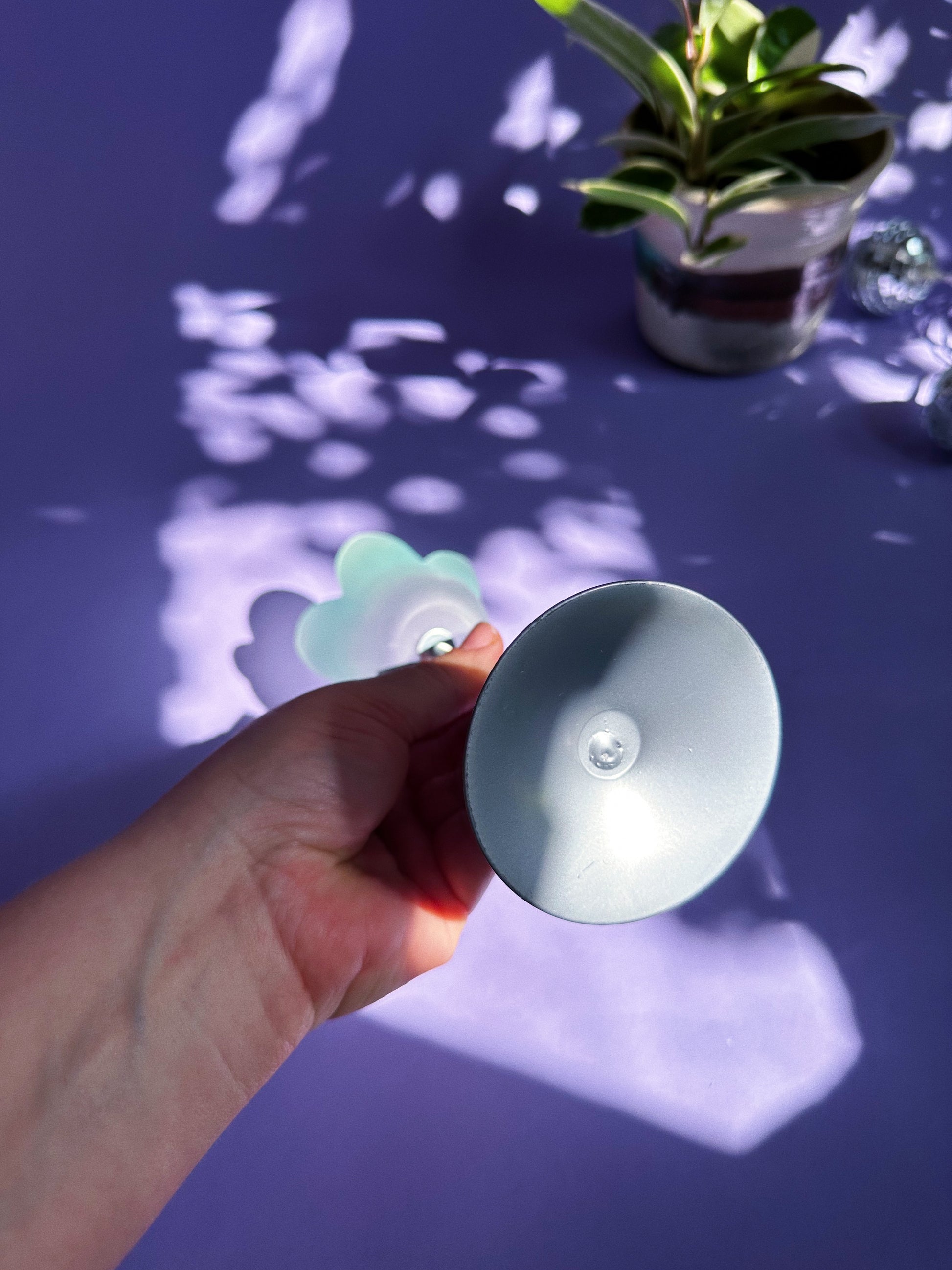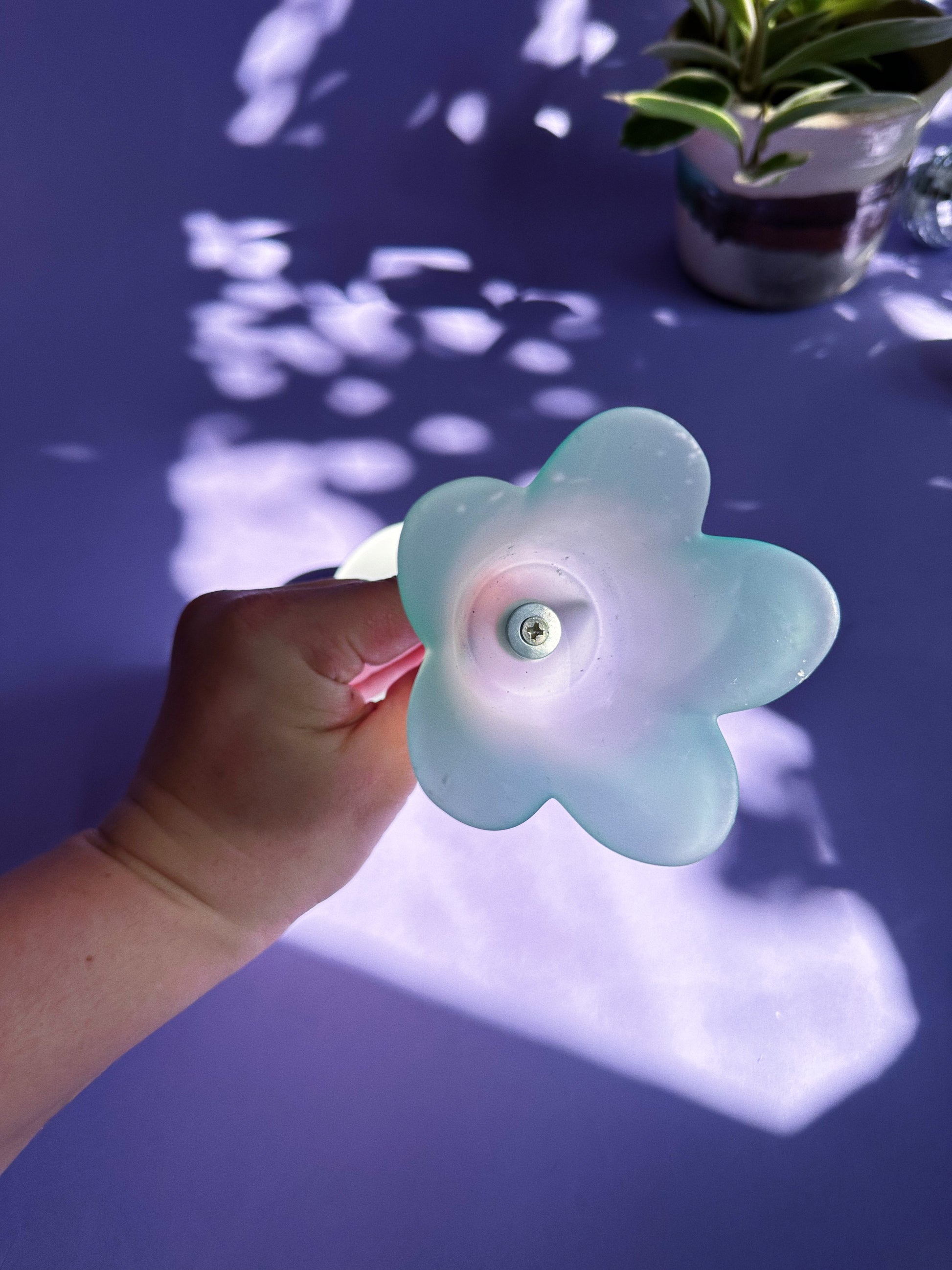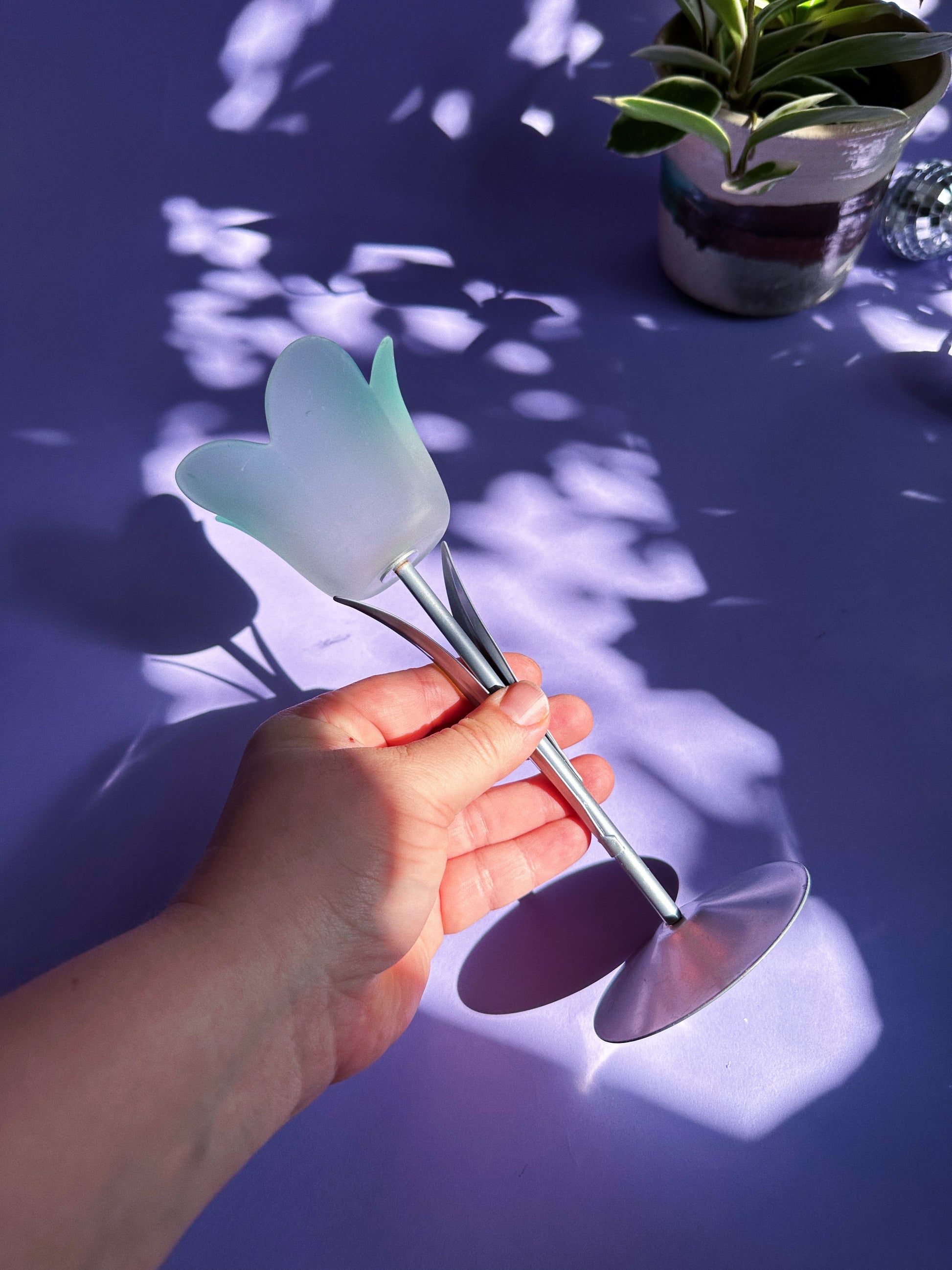 Vintage Glass & Metal Blue Frosted Tulip Tealight Candle Holder
