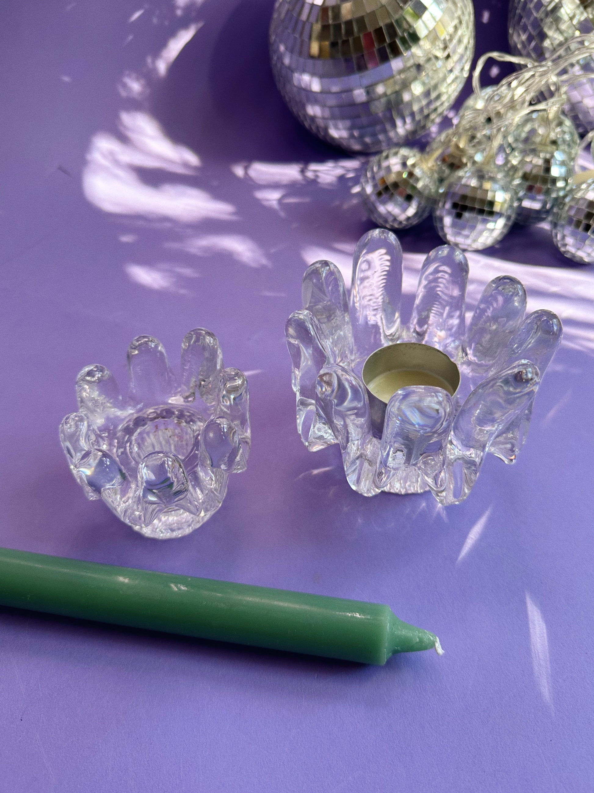 Vintage Goran Warff Kosta Boda Sunflower Glass Tea Light / Taper Holders