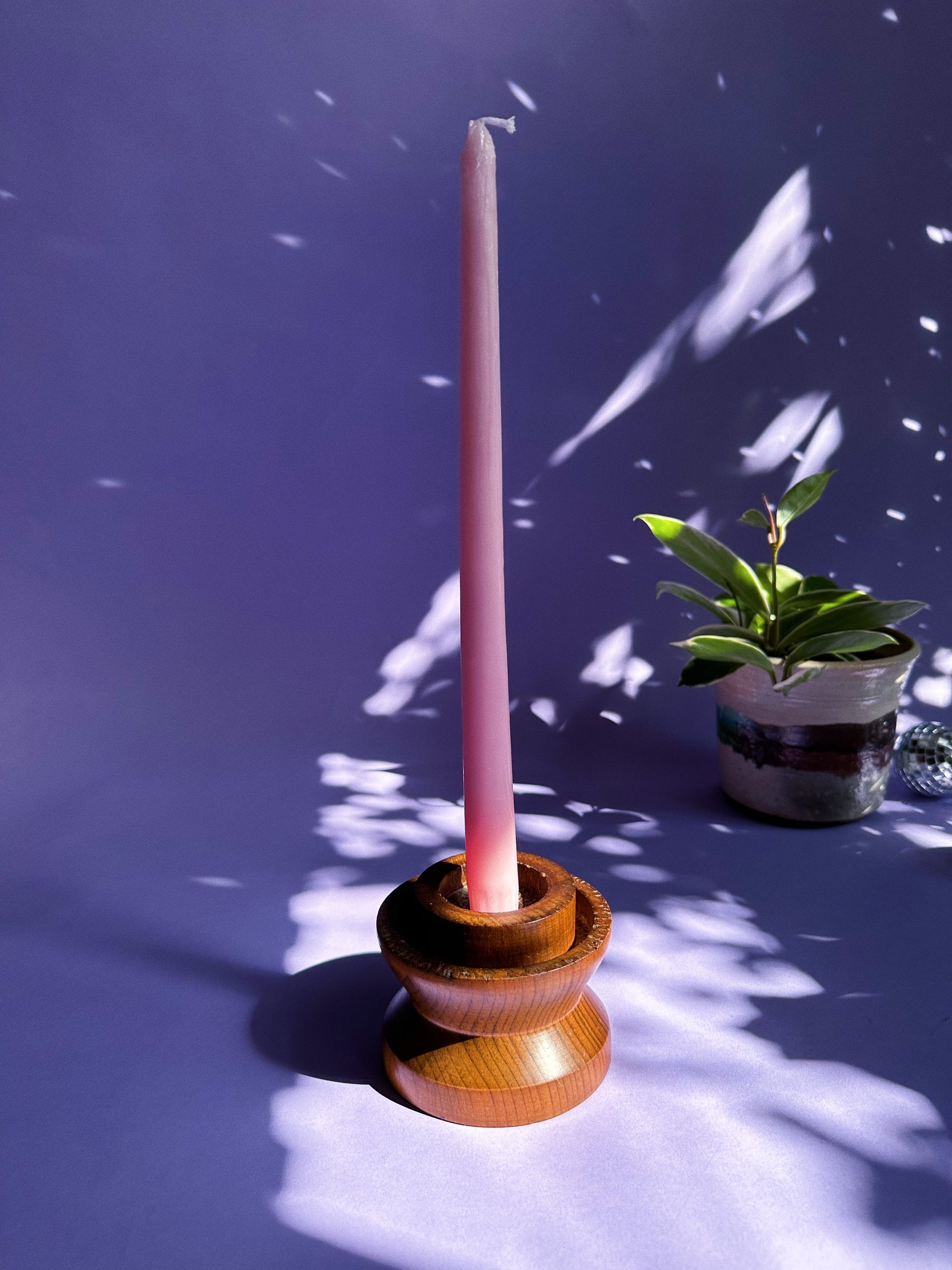 Vintage Handcrafted Wooden Candlestick Taper Candle Holder