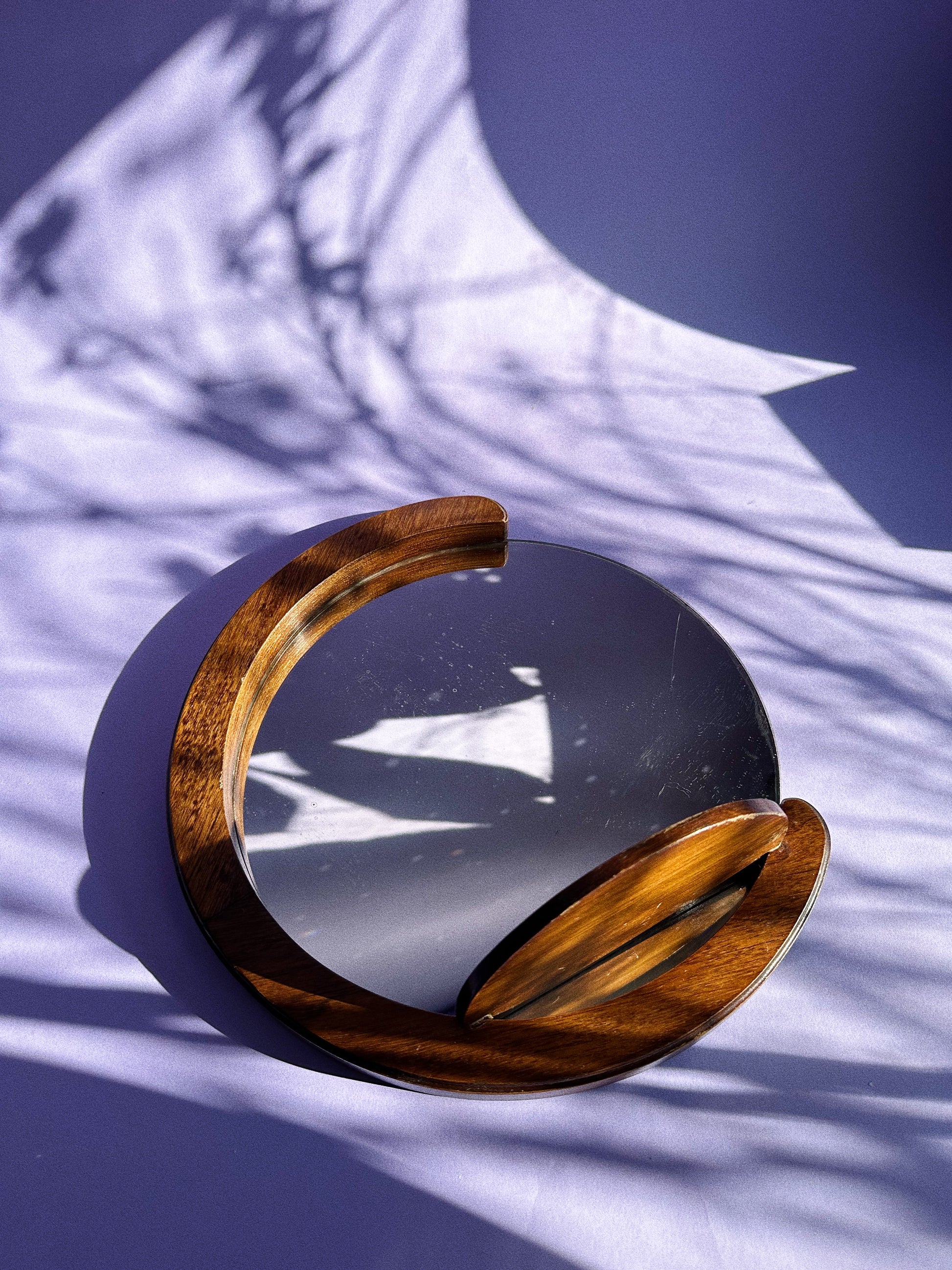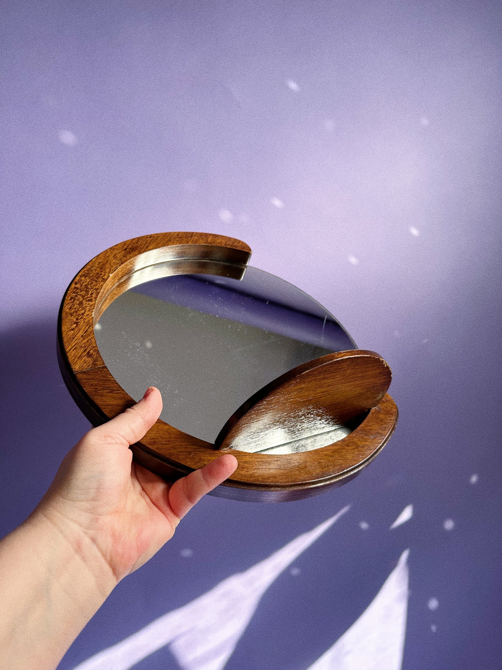 Vintage Handmade Dark Brown Wood Mirror & Shelf