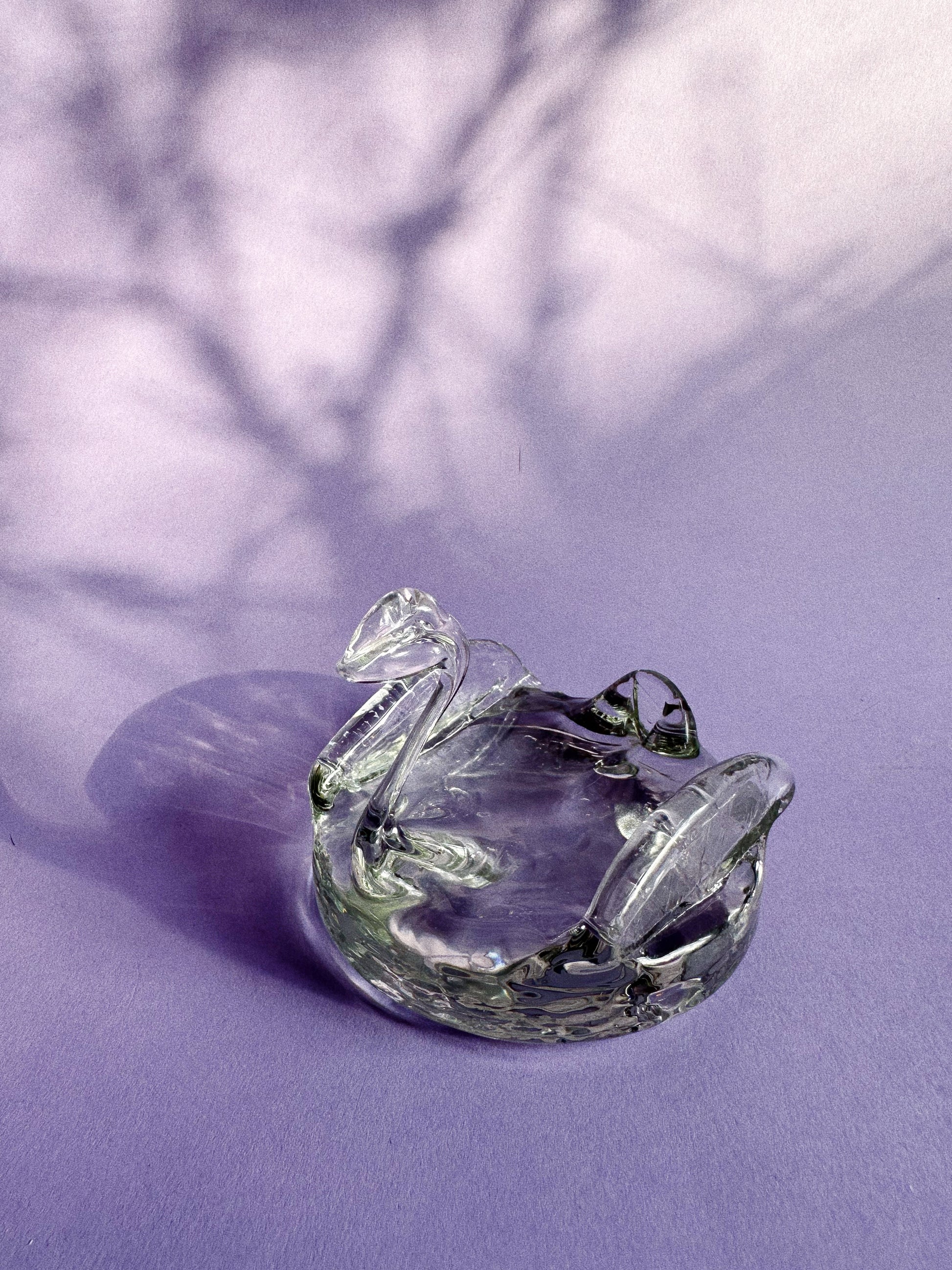 Vintage Heavy Glass Swan Ring Dish