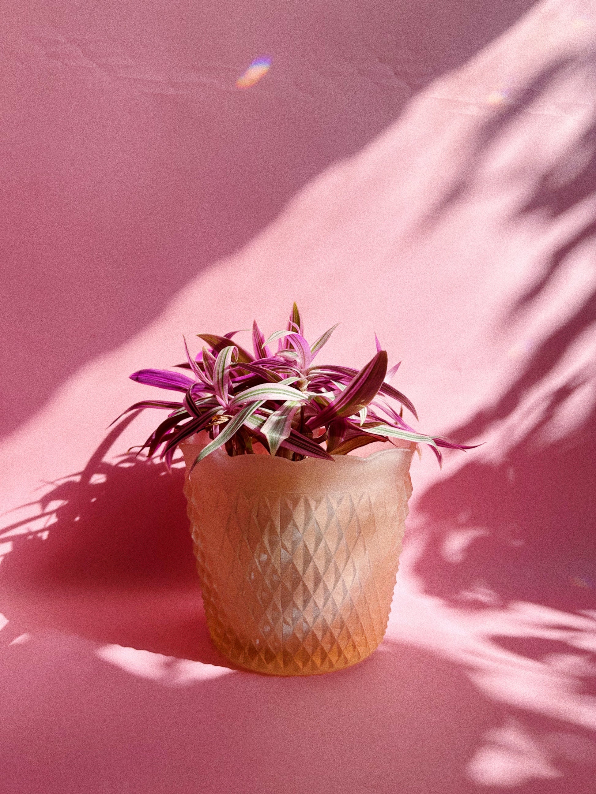 Vintage Heavy Indiana Glass Frosted Pink Diamond Point Planter / Cache Pot
