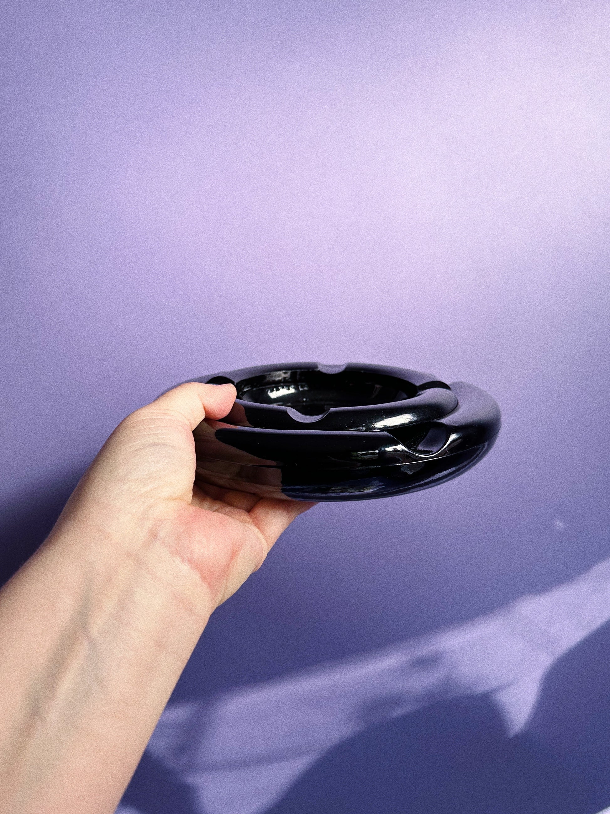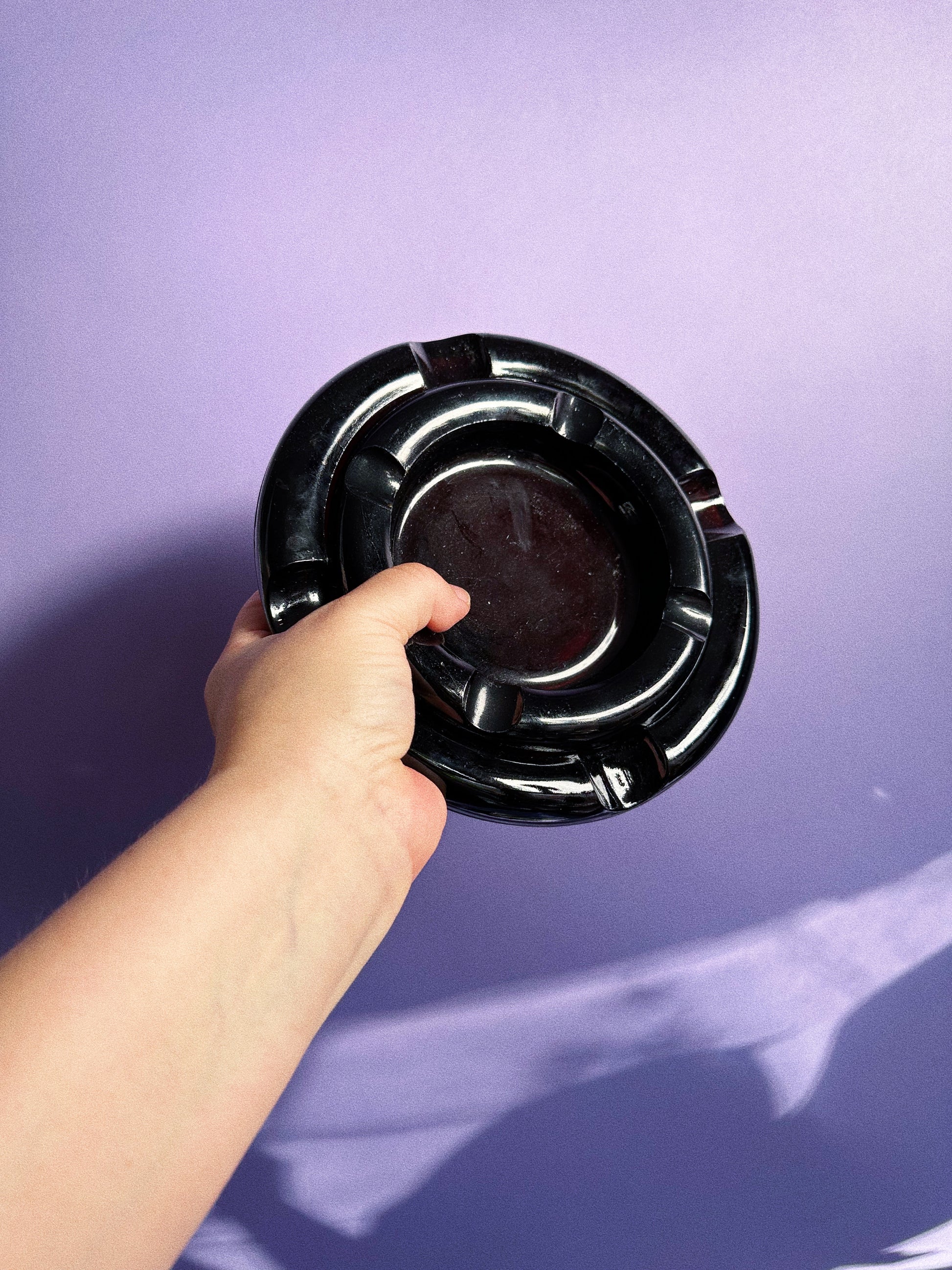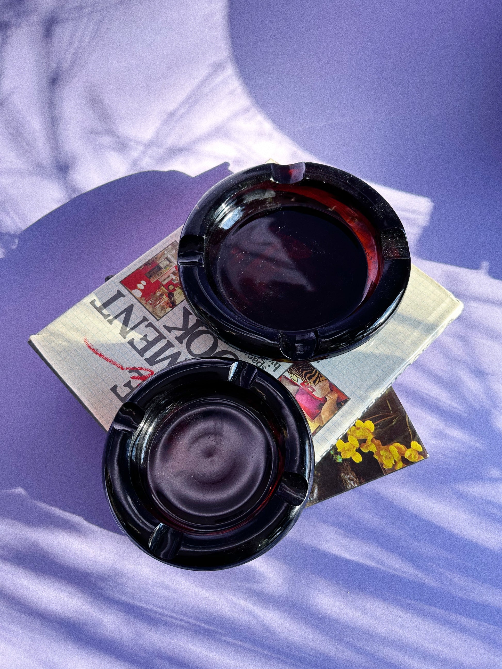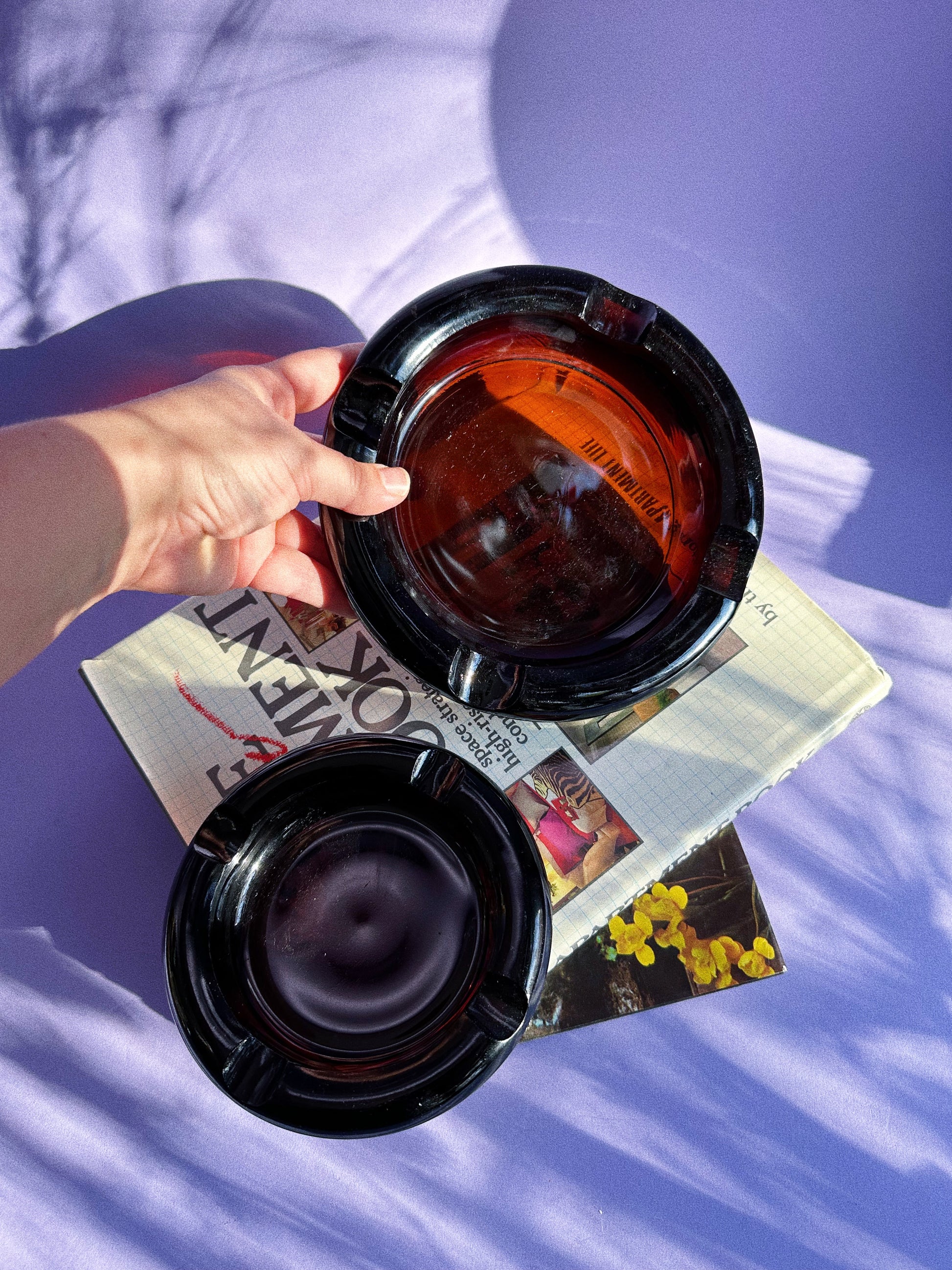 Vintage heavy nesting pair of Mid Century Modern dark amber glass ashtrays.