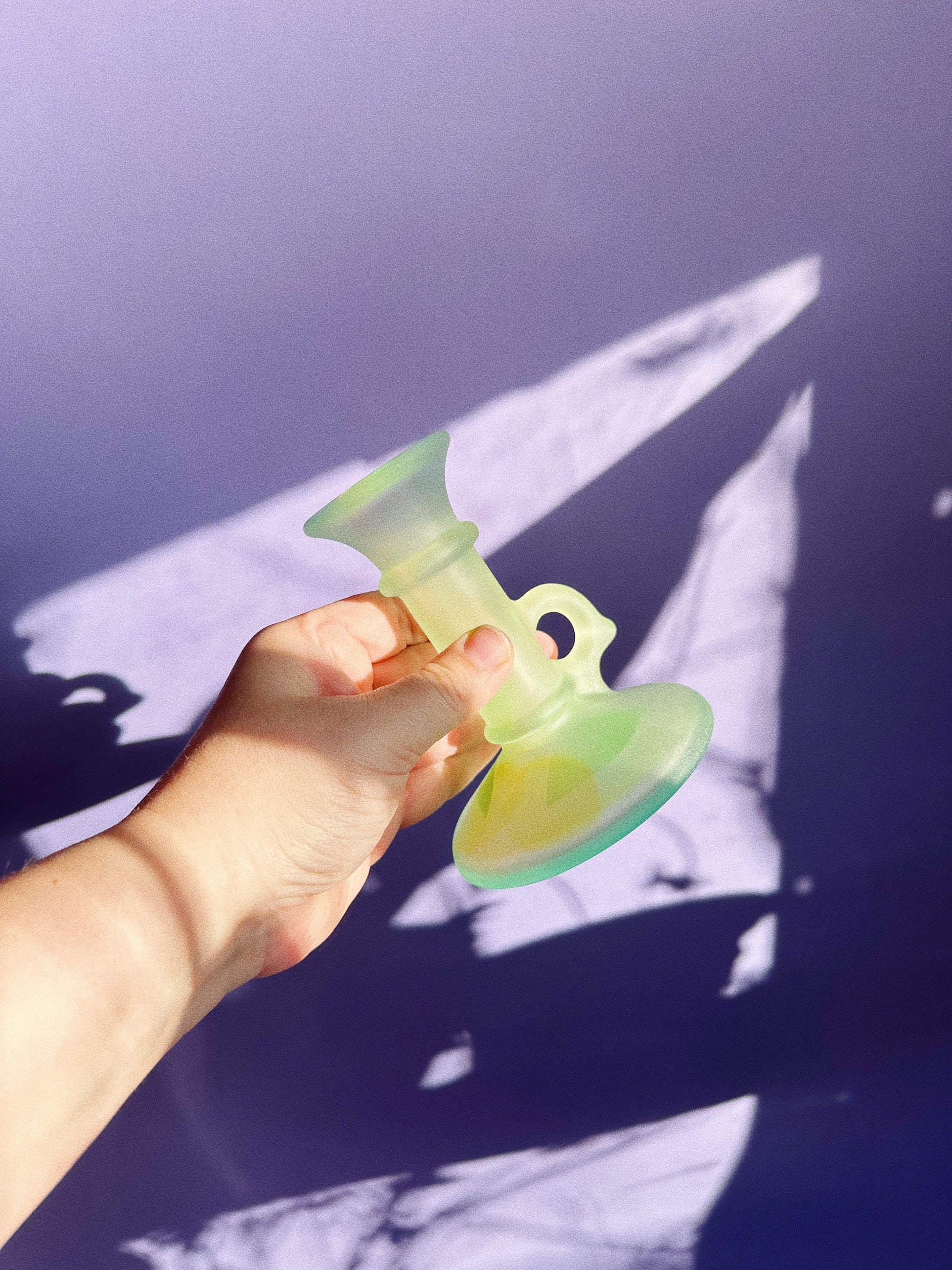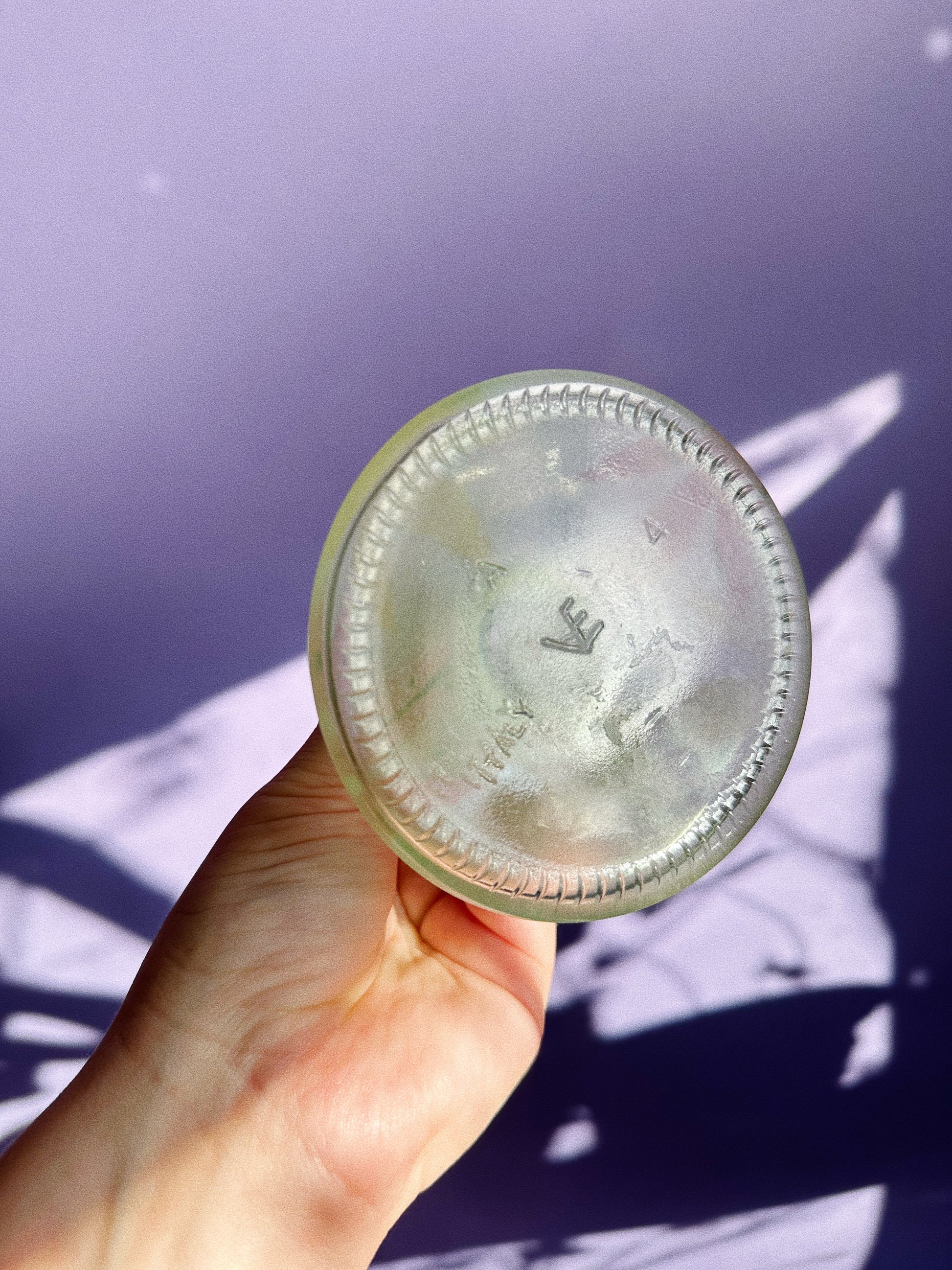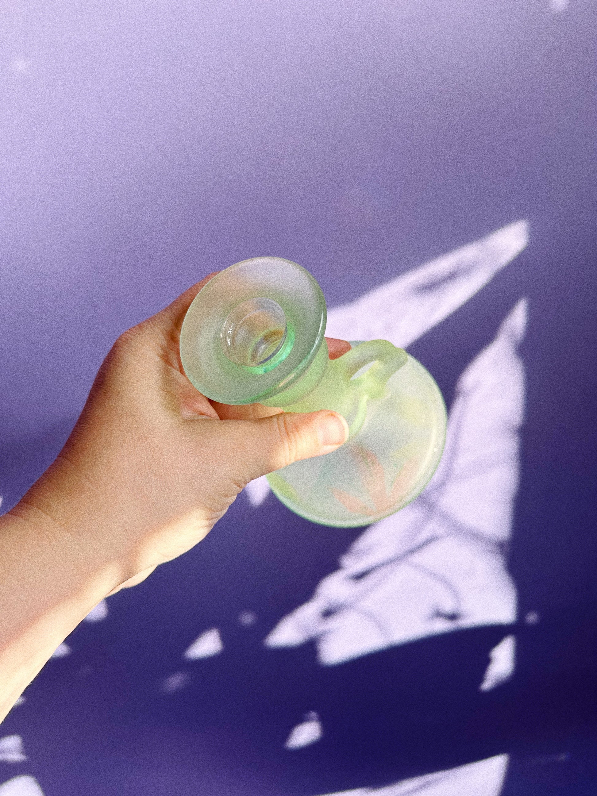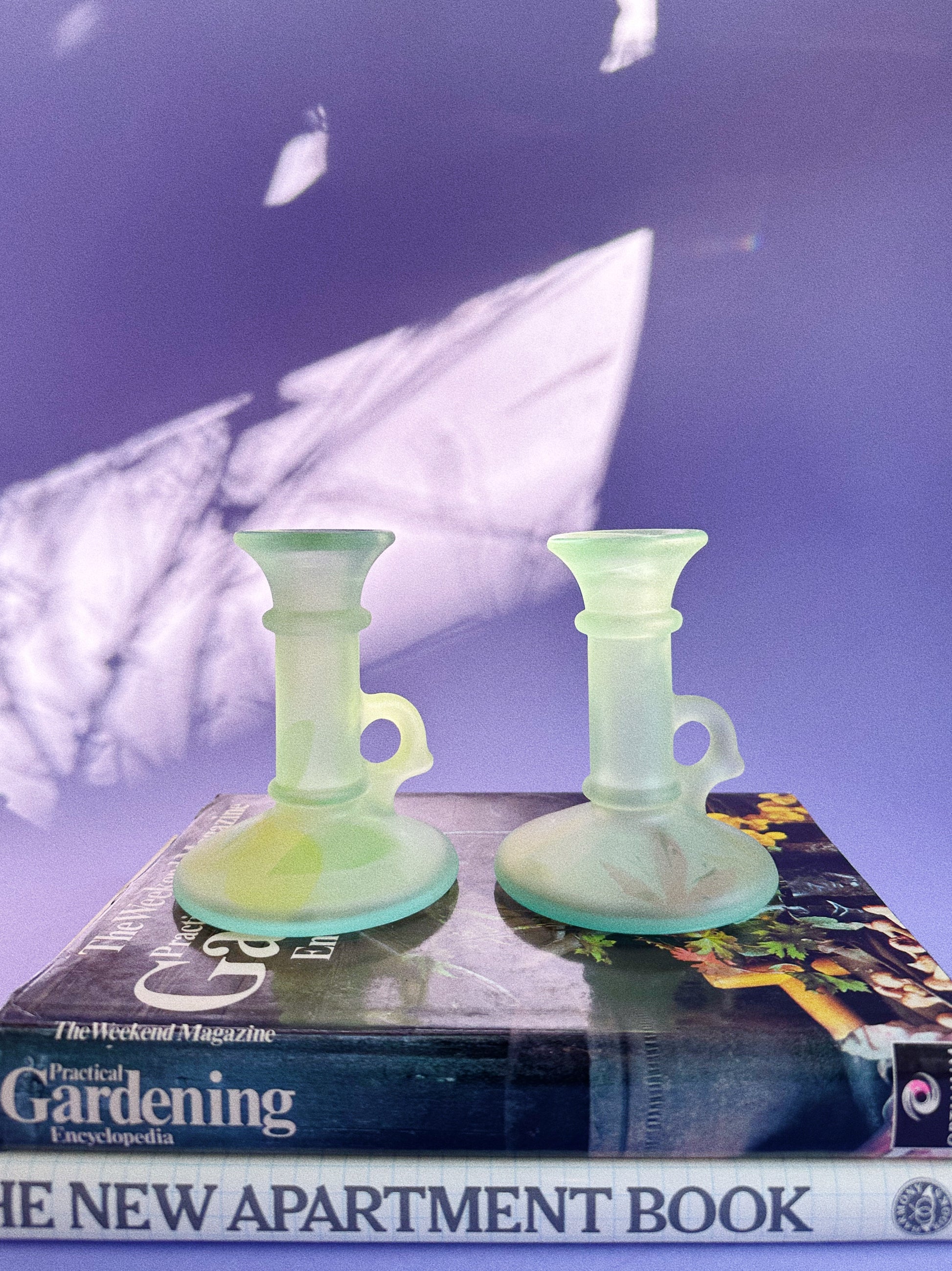 Beautiful bright frosted green glass candlesticks made in Italy.