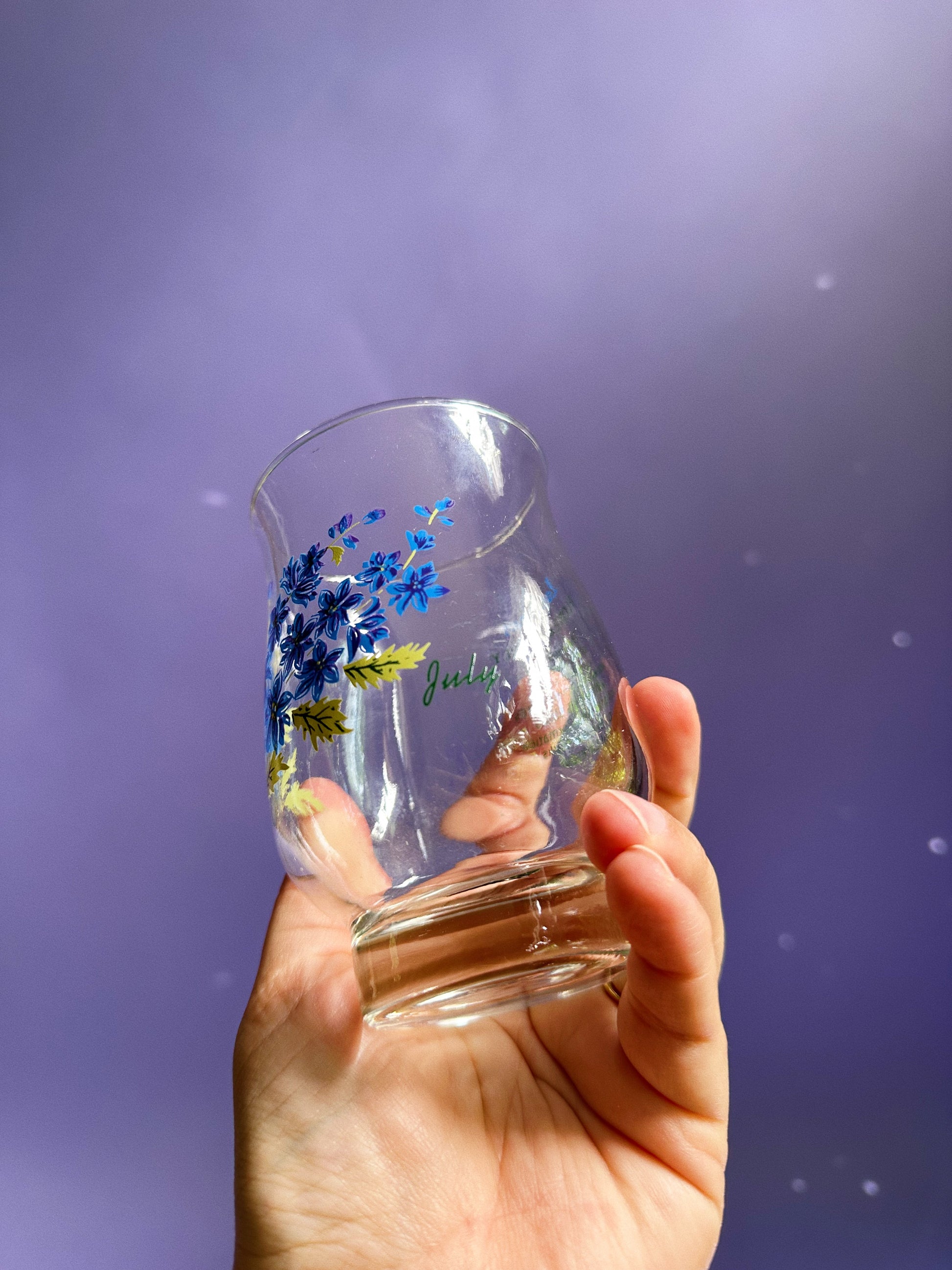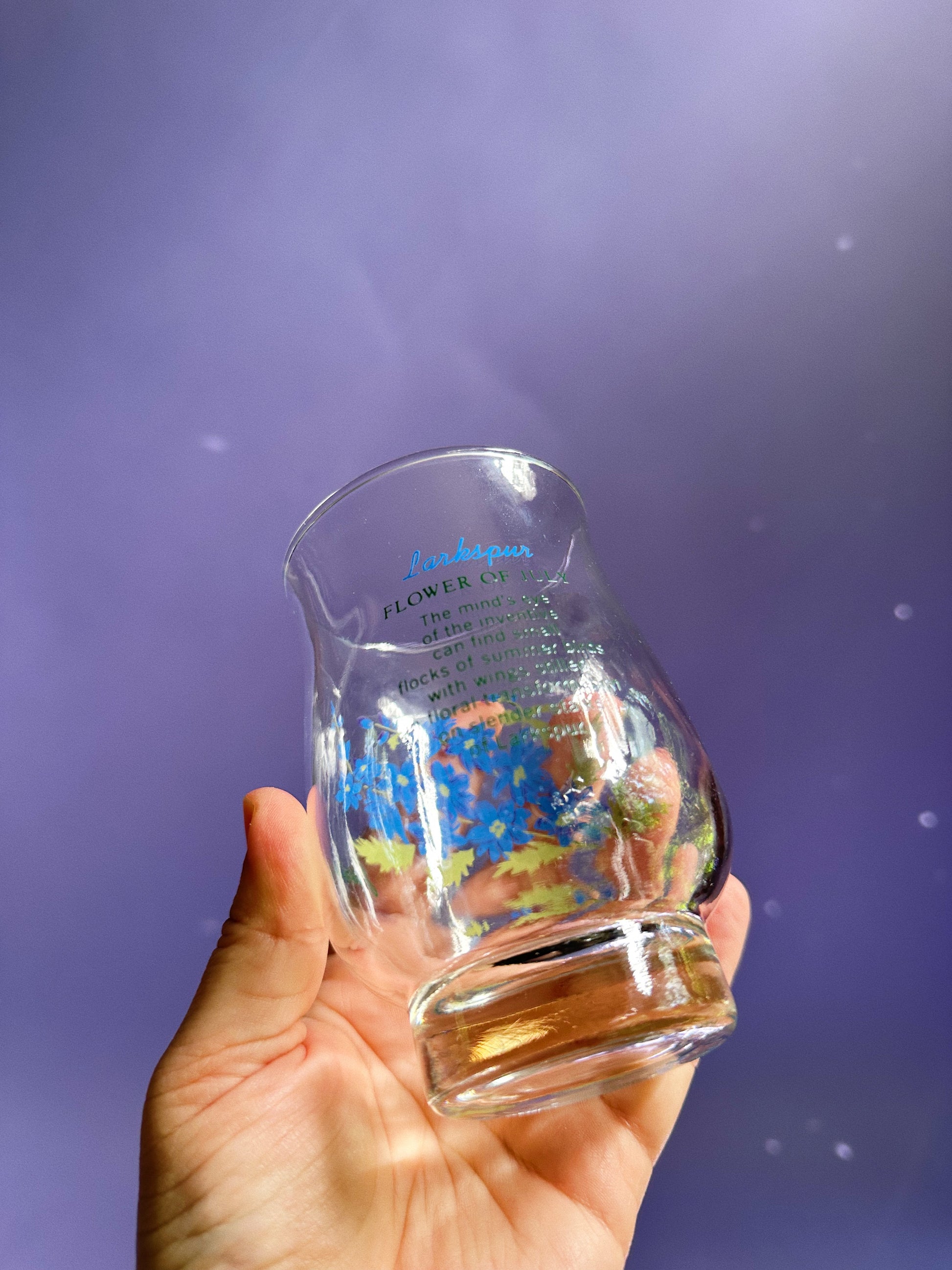 Vintage July Larkspur Flower Of The Month Glasz