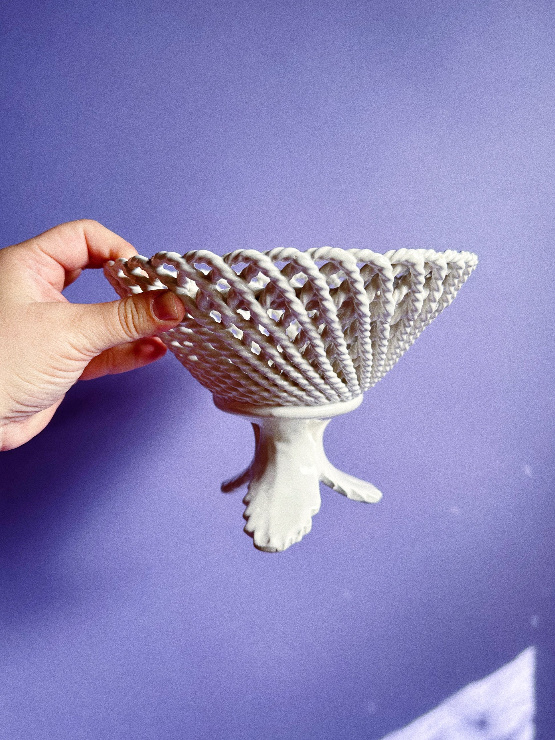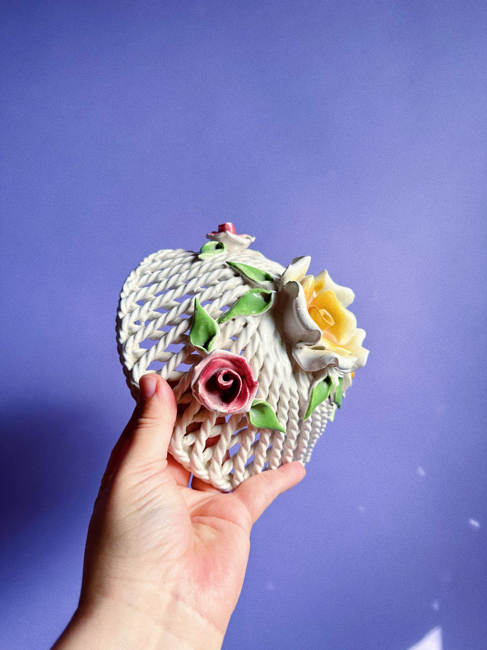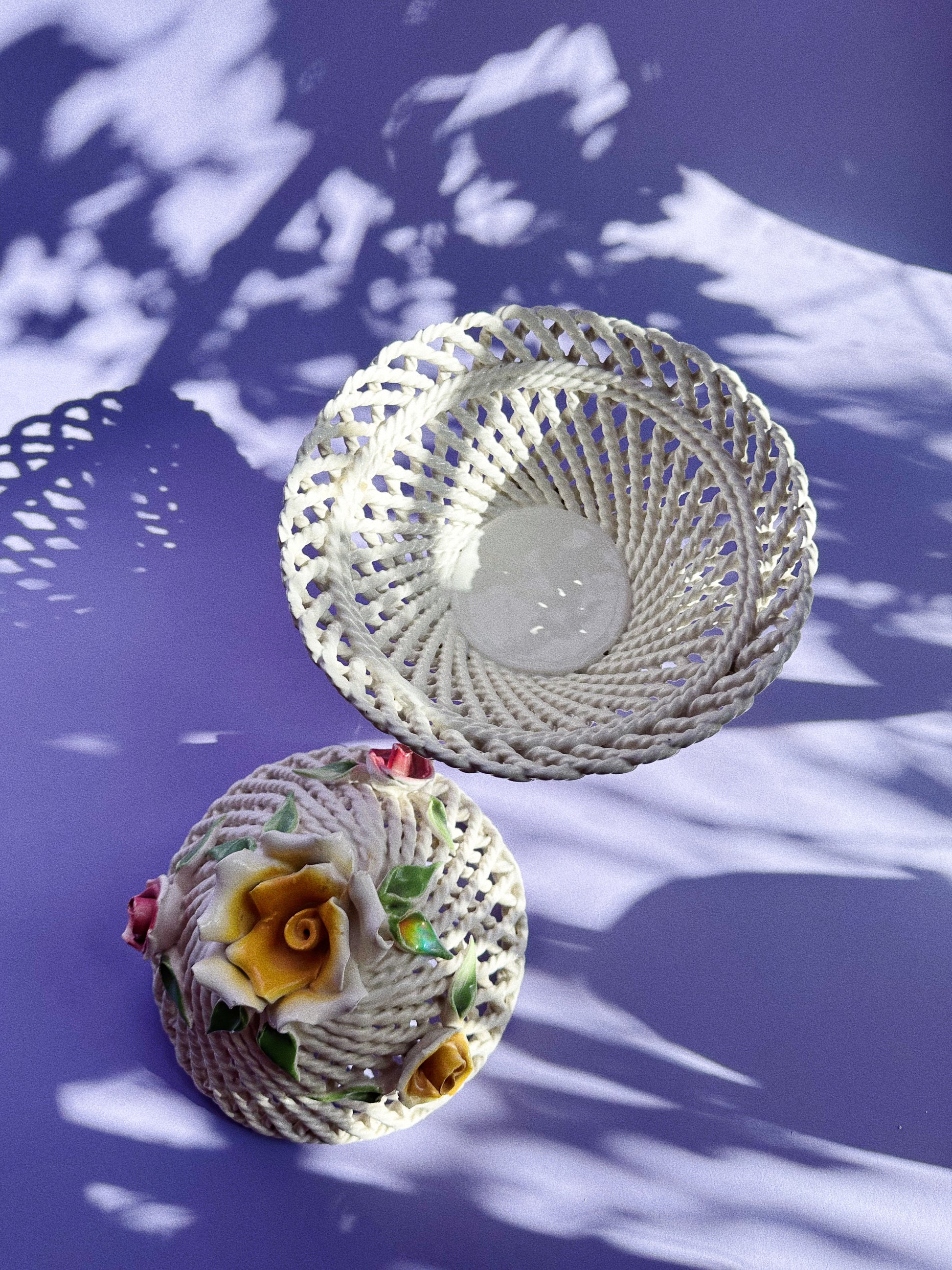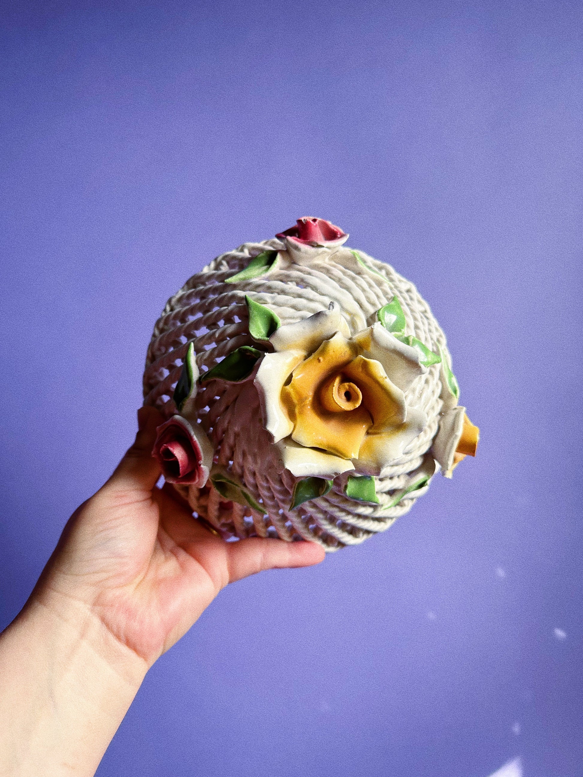 Vintage Lidded Capodimonte Weaved Basket Dish