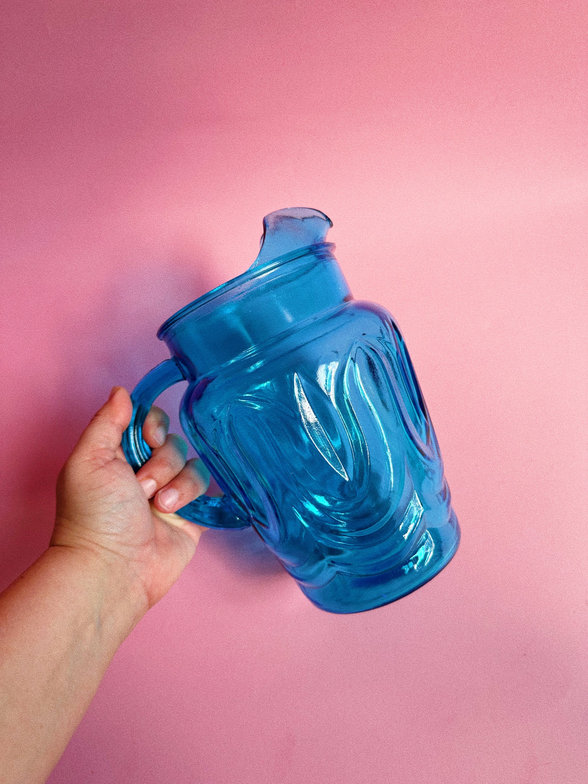 Beautiful blue anchor hocking 1960s tulip glass pitcher.