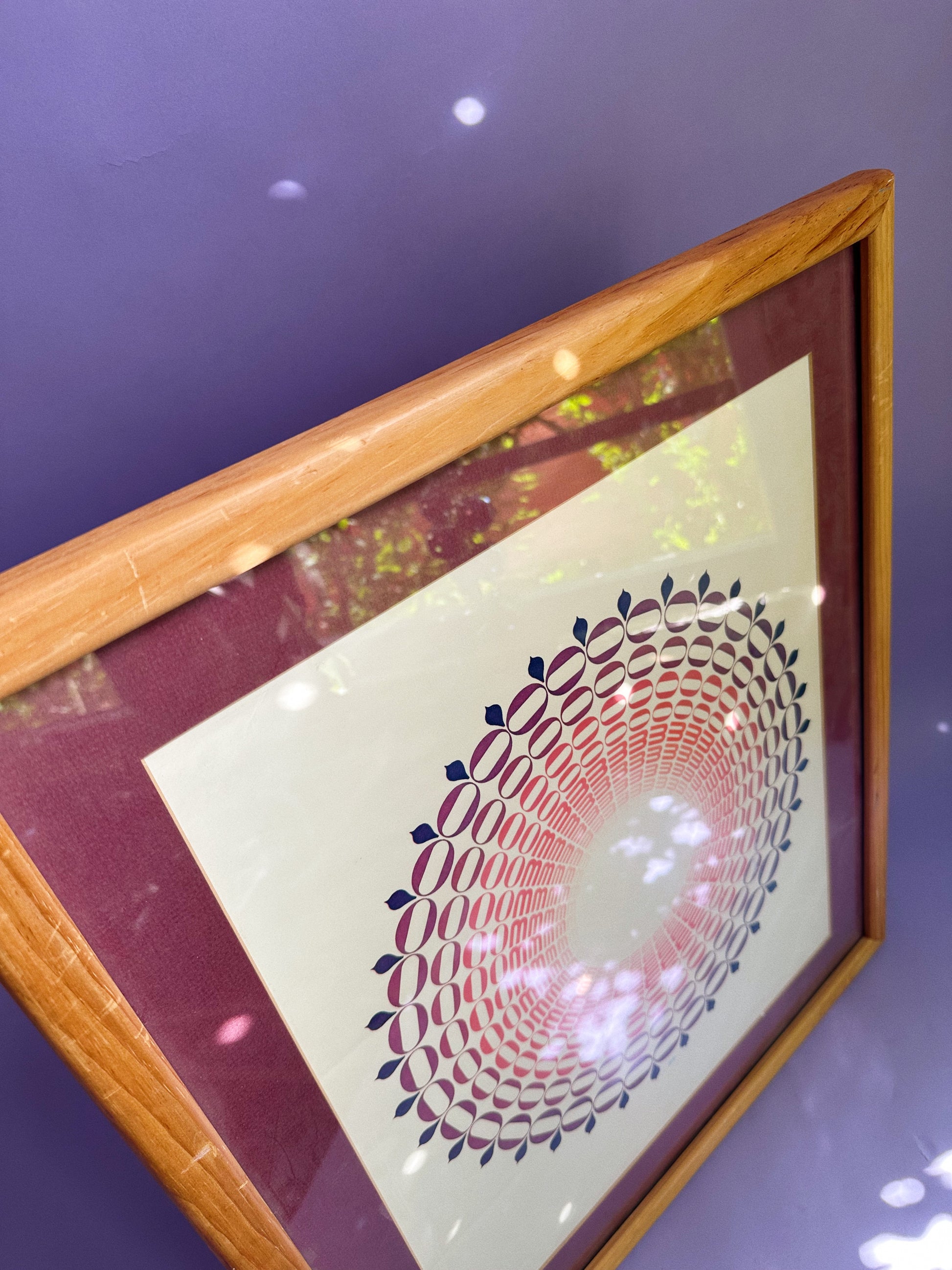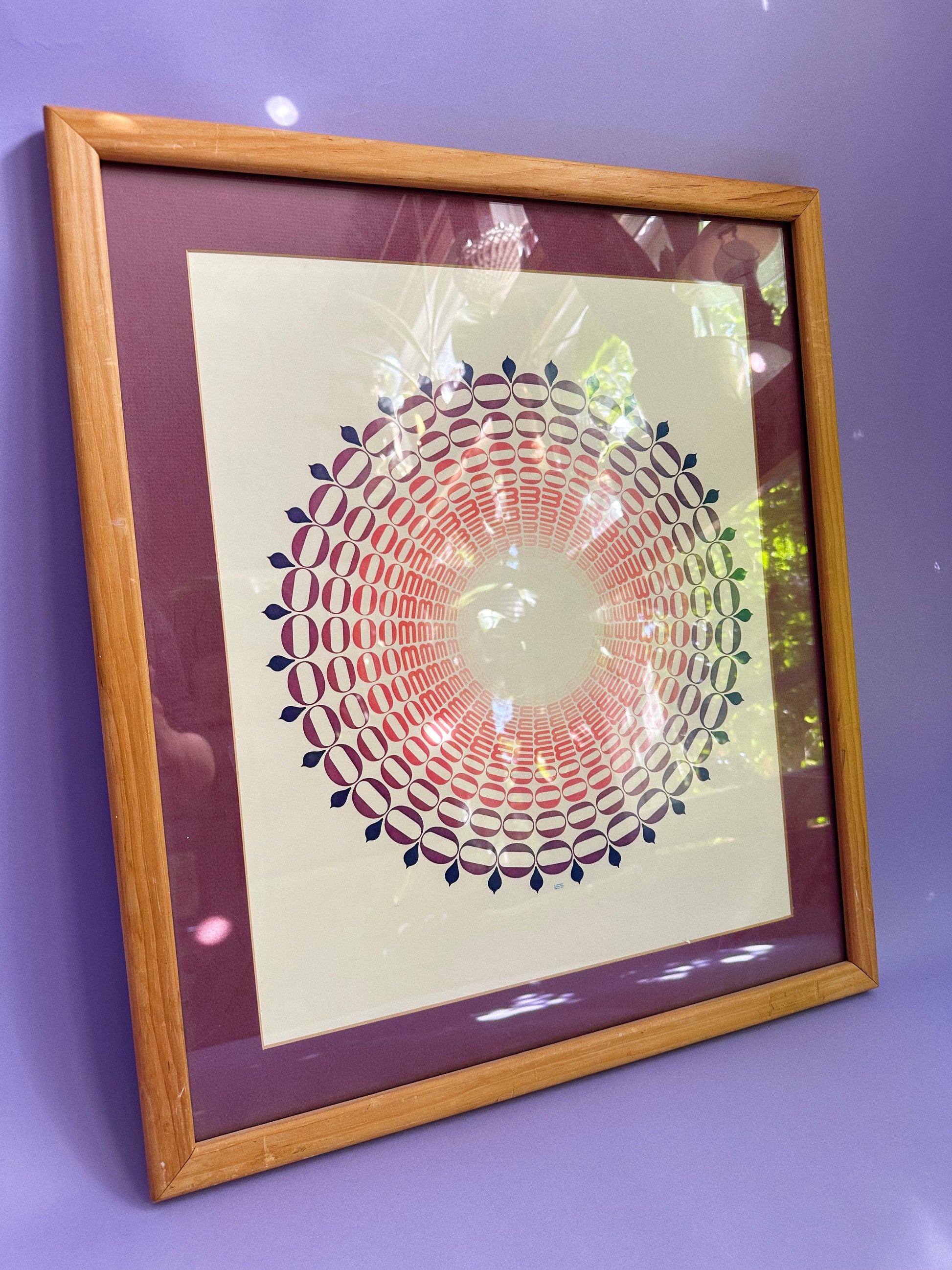 Vintage MCM 1970s Wood Framed Mandala Art Print